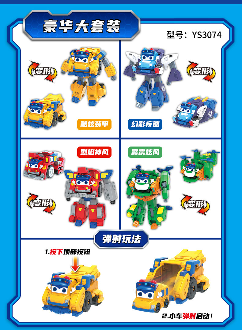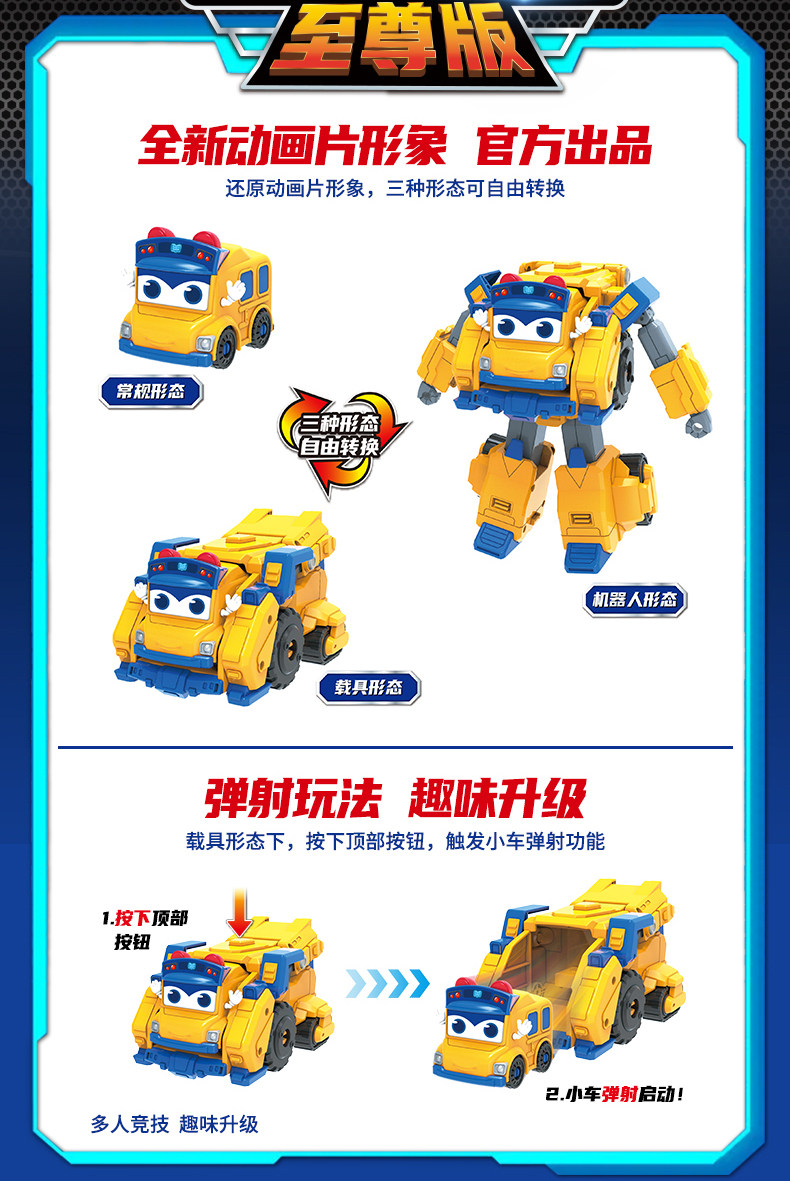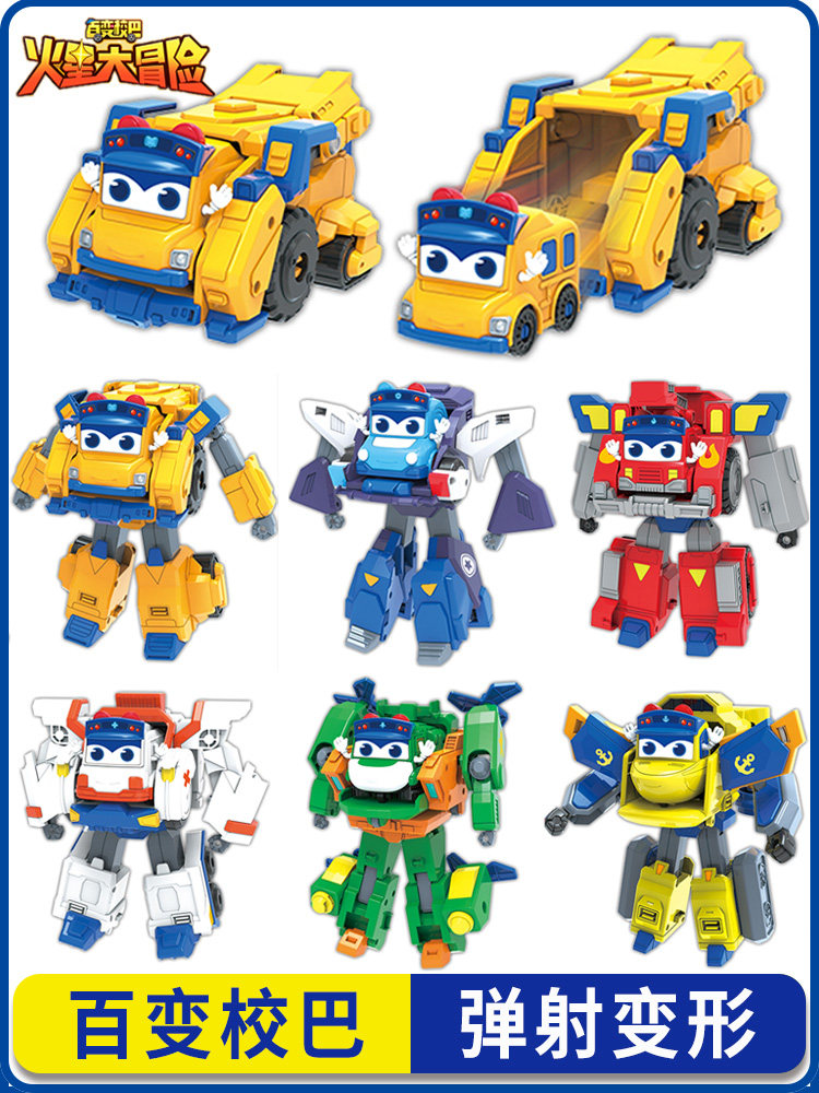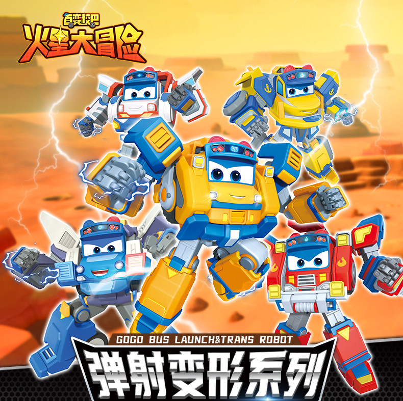 新款正版百变校巴火星大冒险弹射变形机器人儿童玩具车男孩歌德