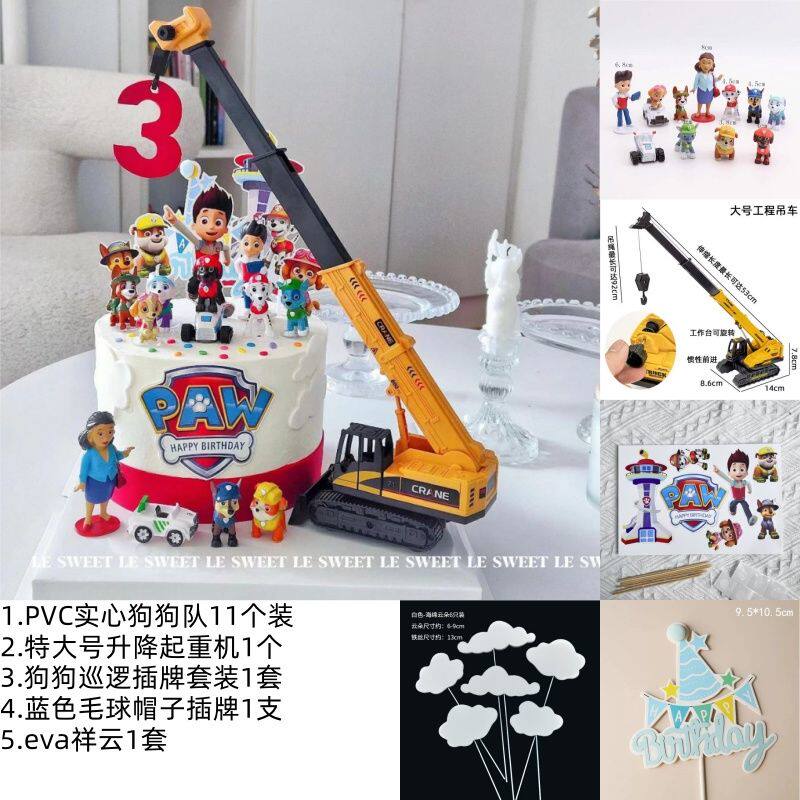 狗狗队长网红蛋糕装饰摆件卡通可爱儿童男孩狗狗生日烘焙装扮插件