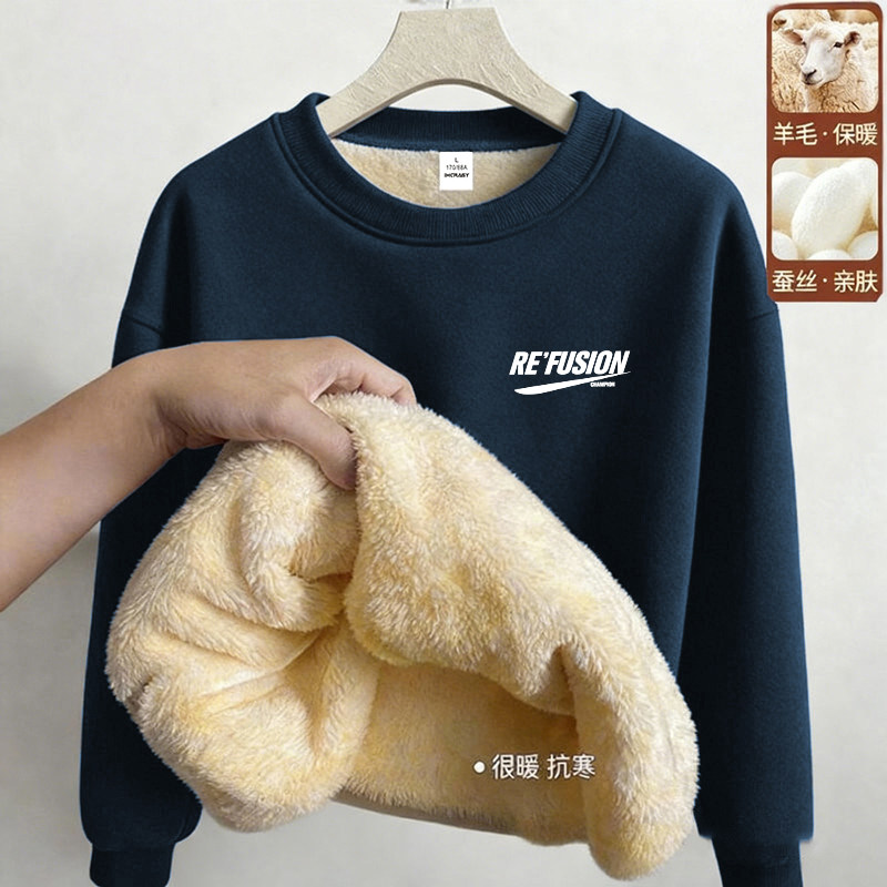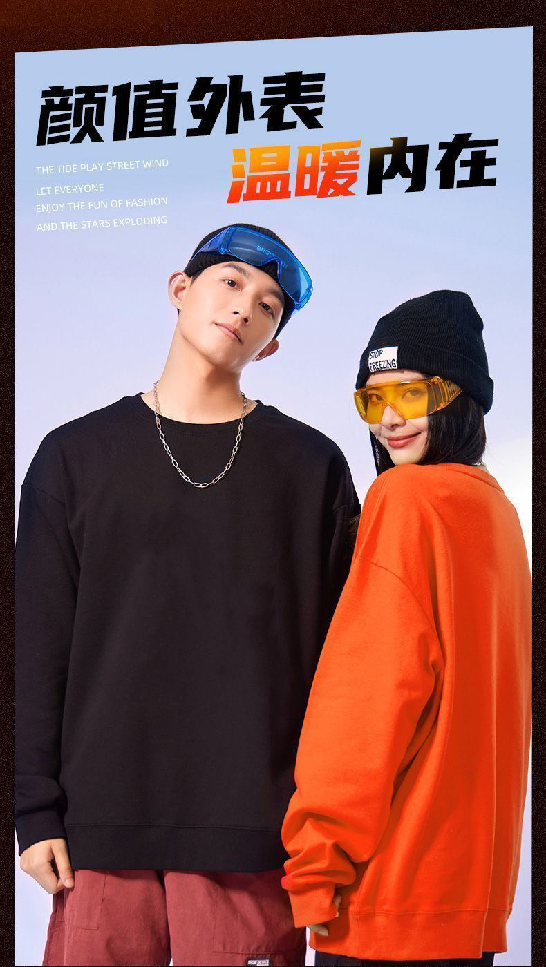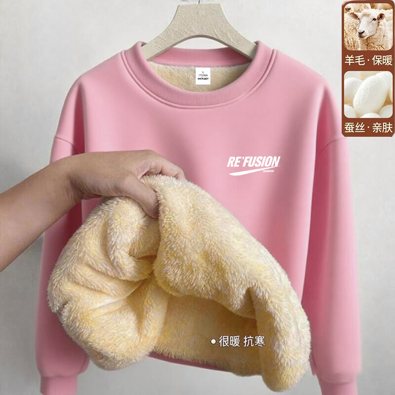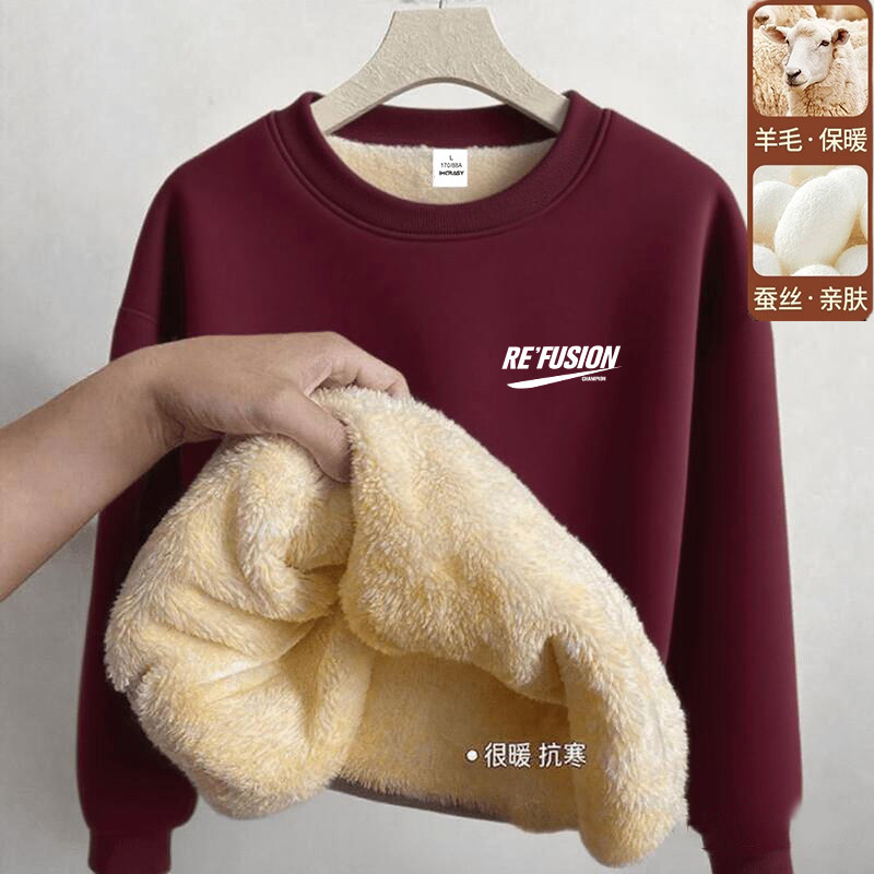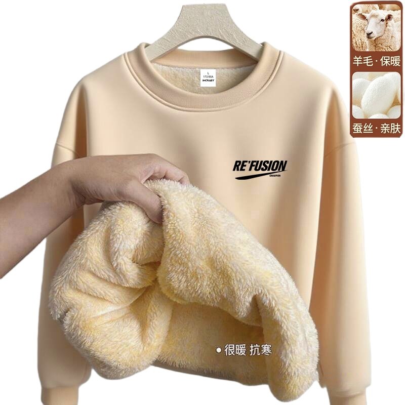 加绒加厚潮流卫衣冬季圆领套头羊毛蚕丝男女外套高级宽松保暖上衣