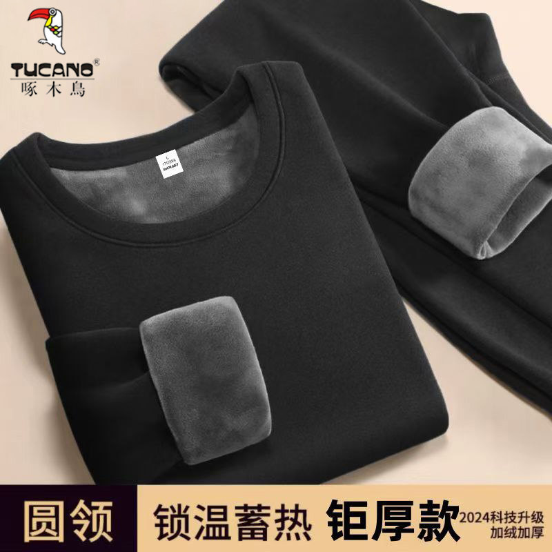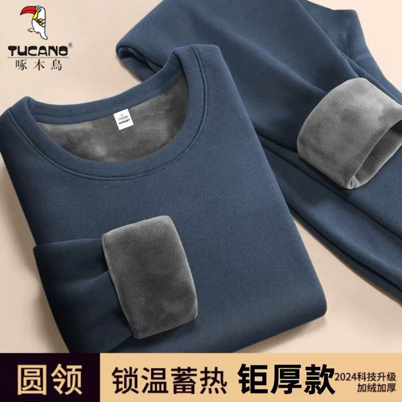 啄木鸟暖内衣套装男女士绒德发热加绒加厚冬季防寒打底秋衣秋裤