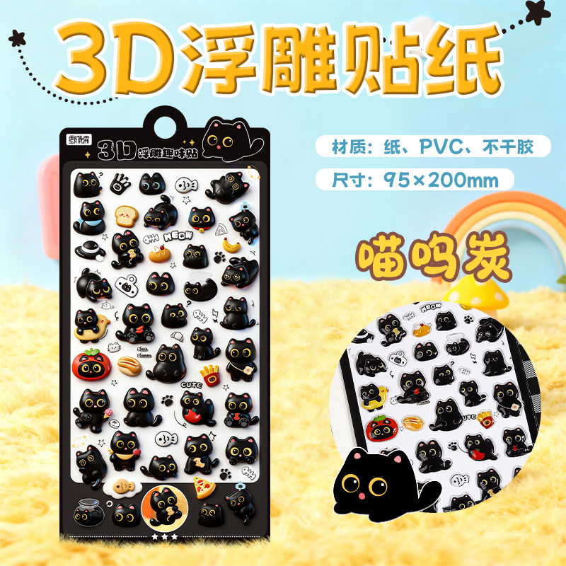 儿童3d立体浮雕贴纸2025新款卡通贴画小女孩奖励贴六一礼物可爱