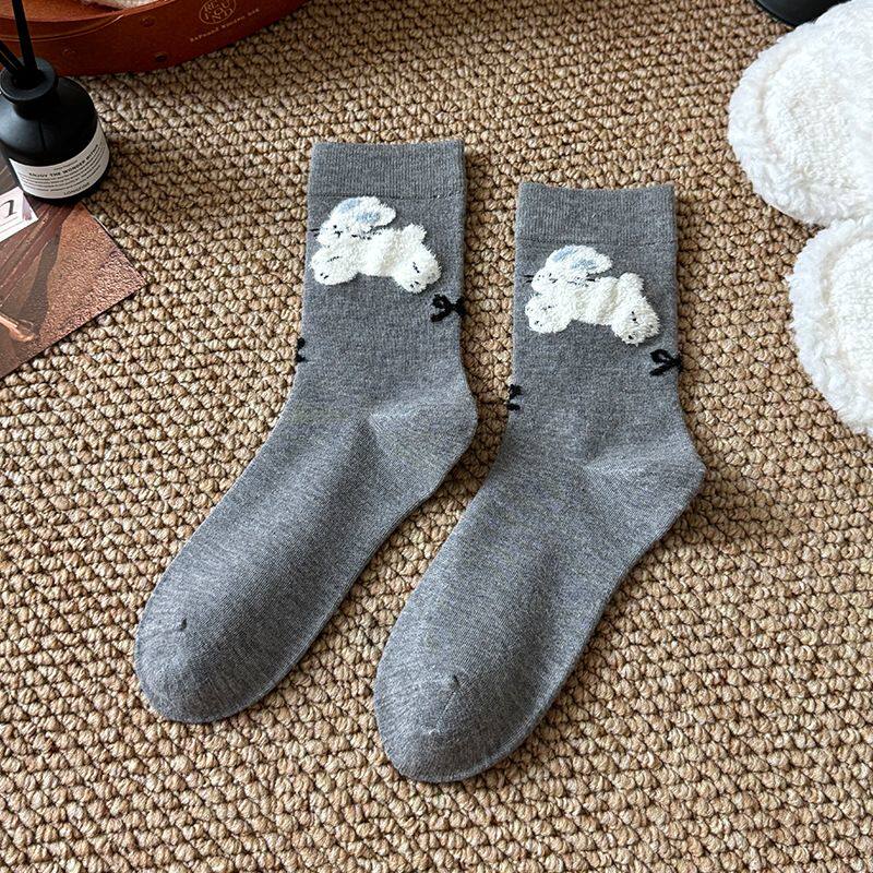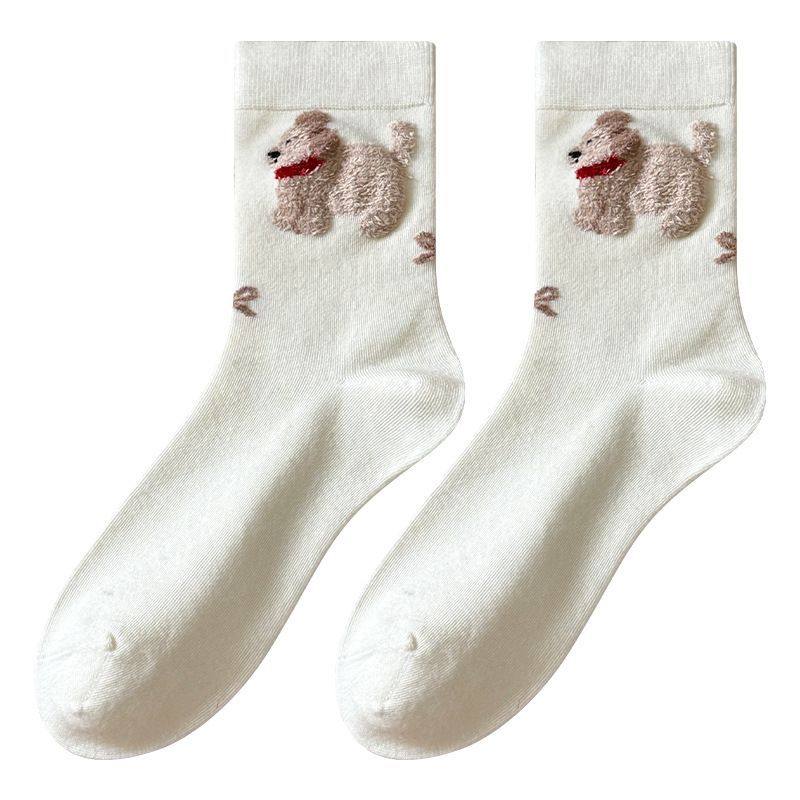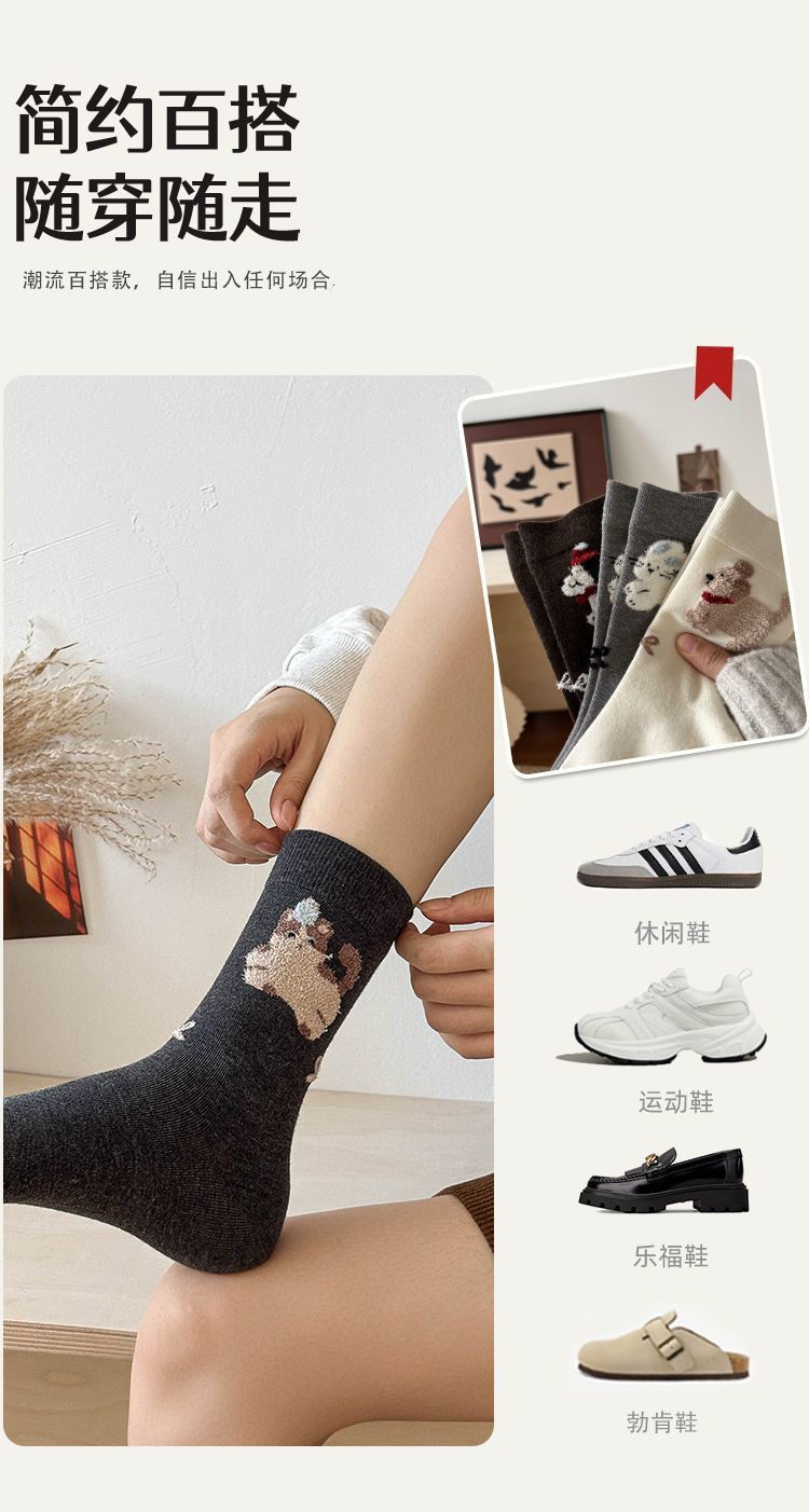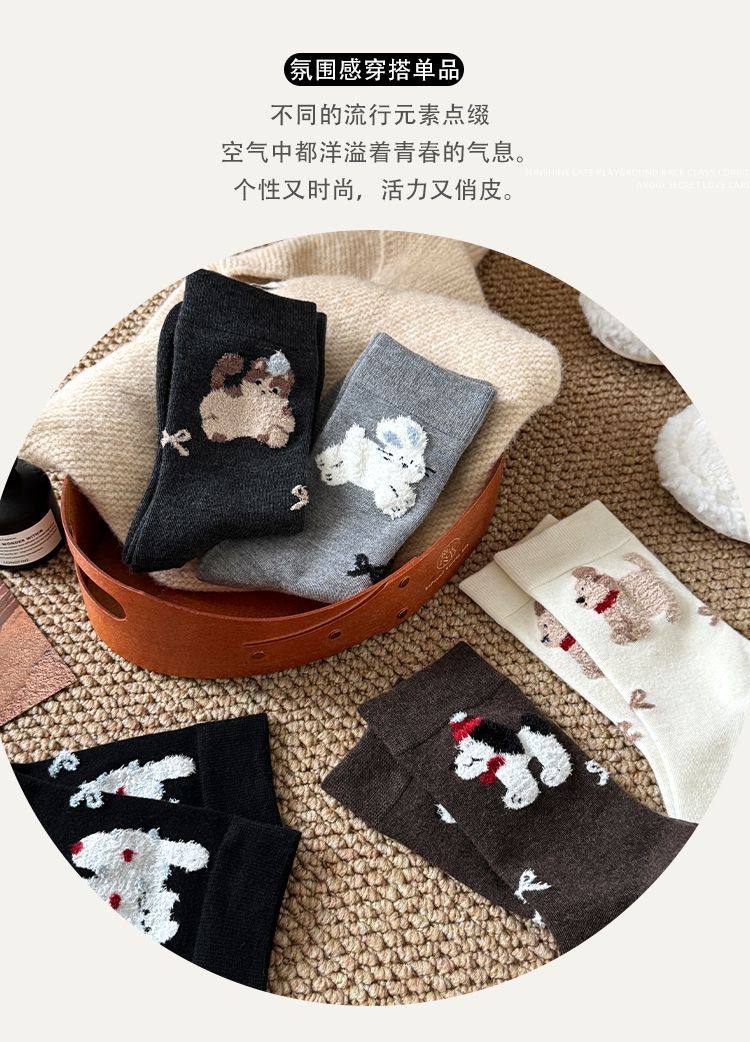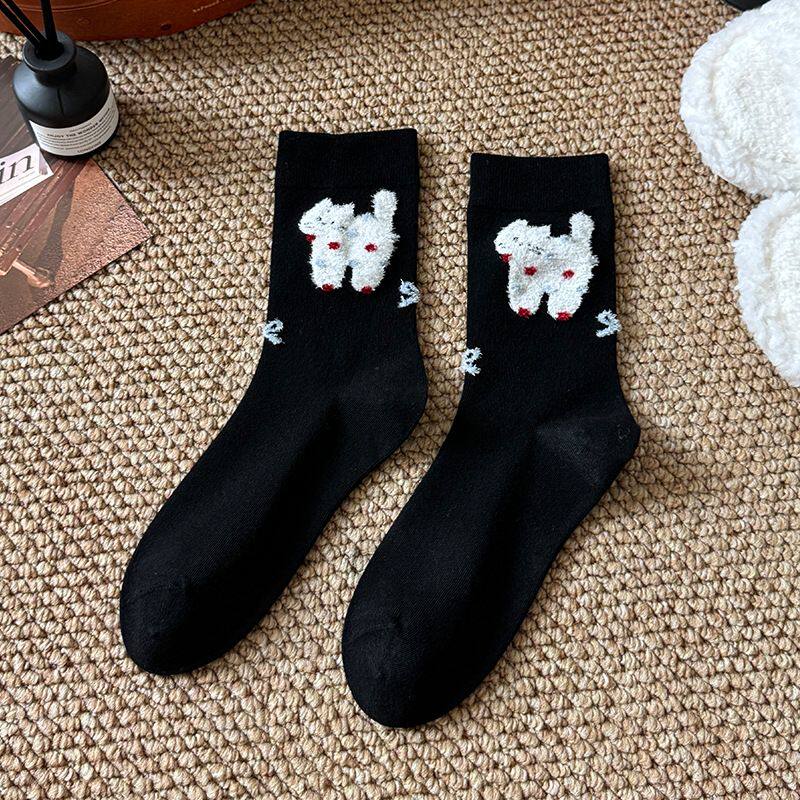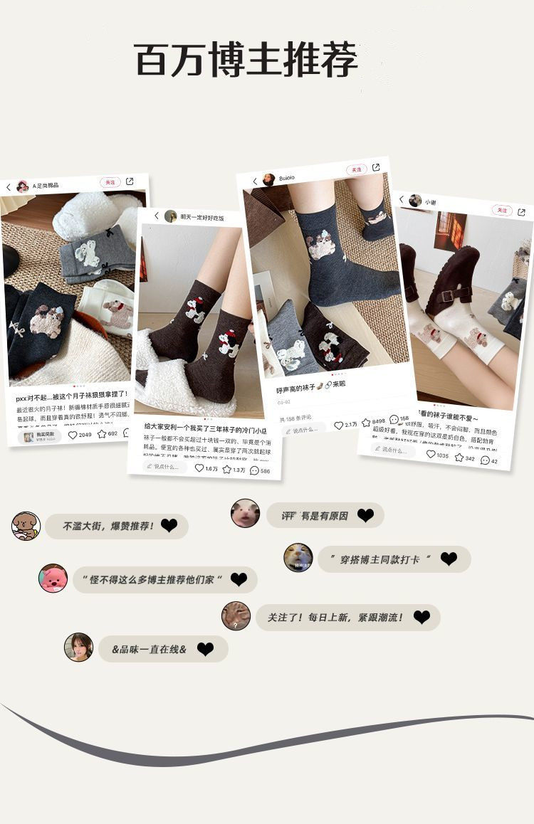 秋冬袜女可爱卡通小猫小狗中筒袜日韩时尚百搭加厚保暖无骨月子袜