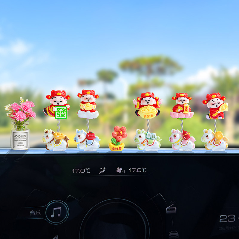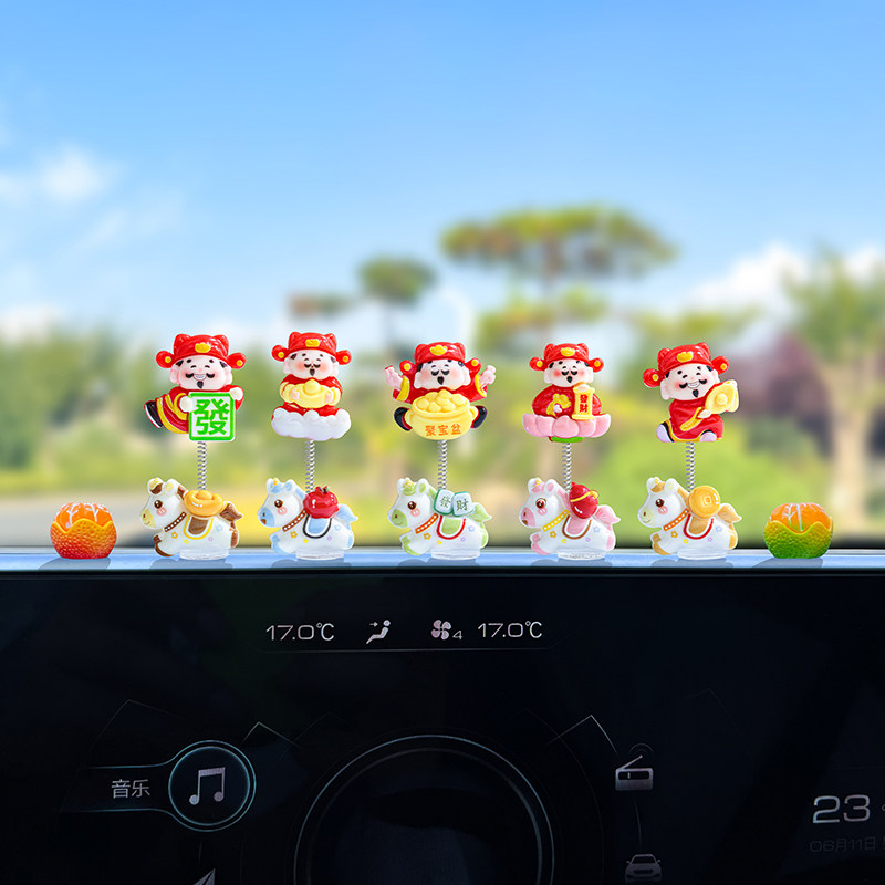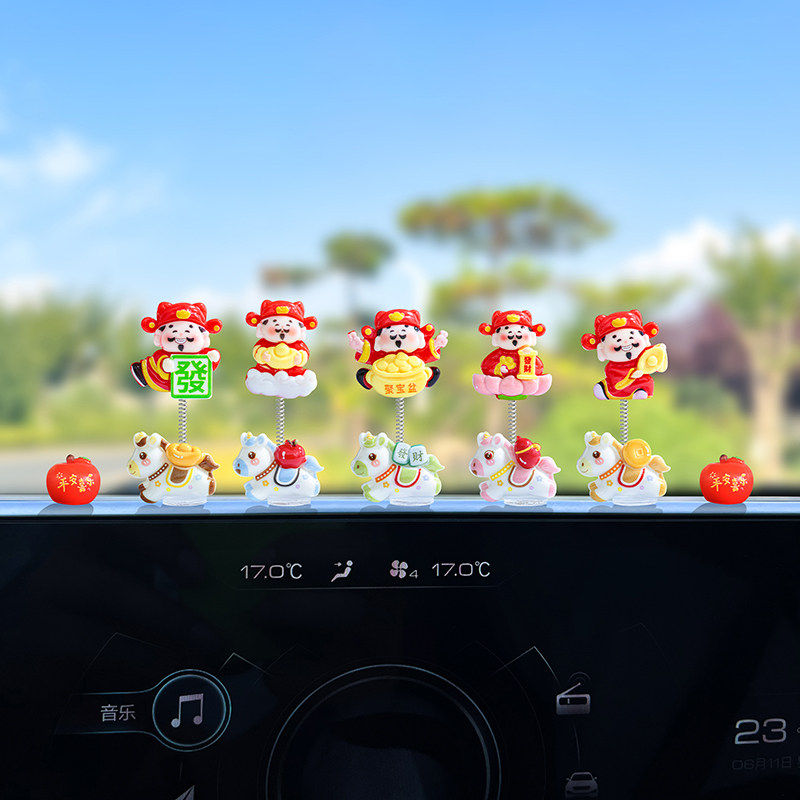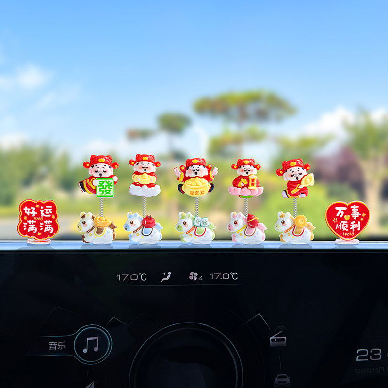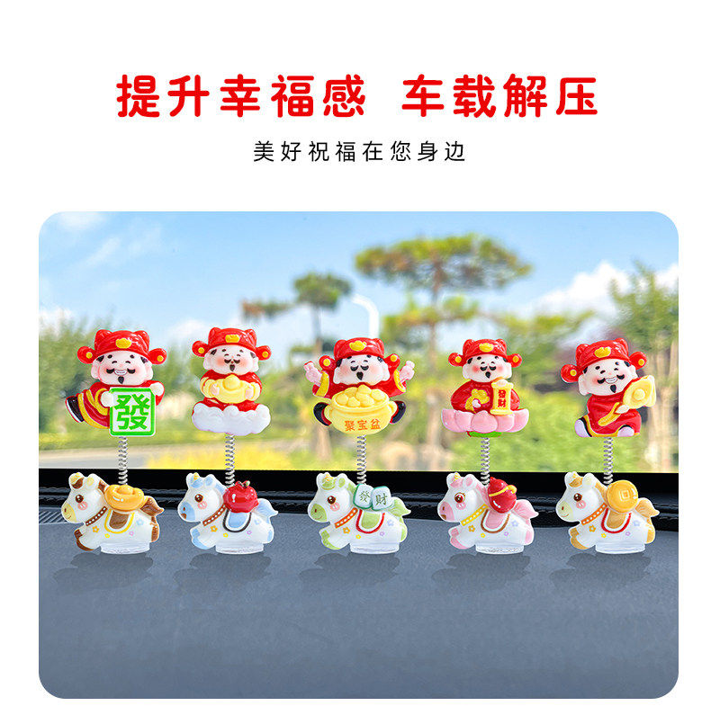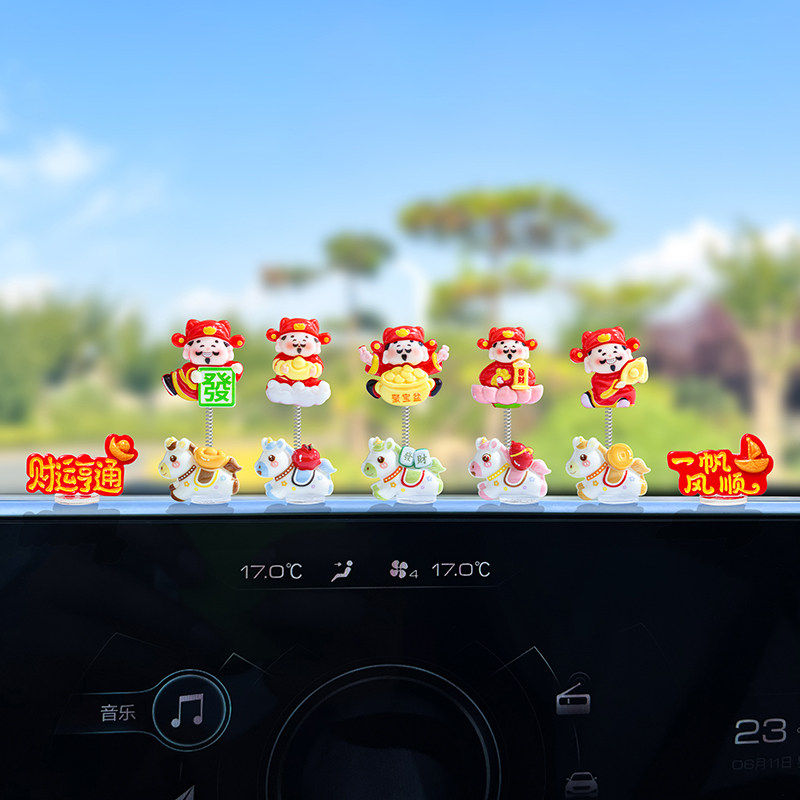 生肖马年新款摇摆财神爷汽车摆件电动车内中控台屏幕办公桌装饰品