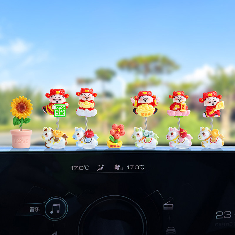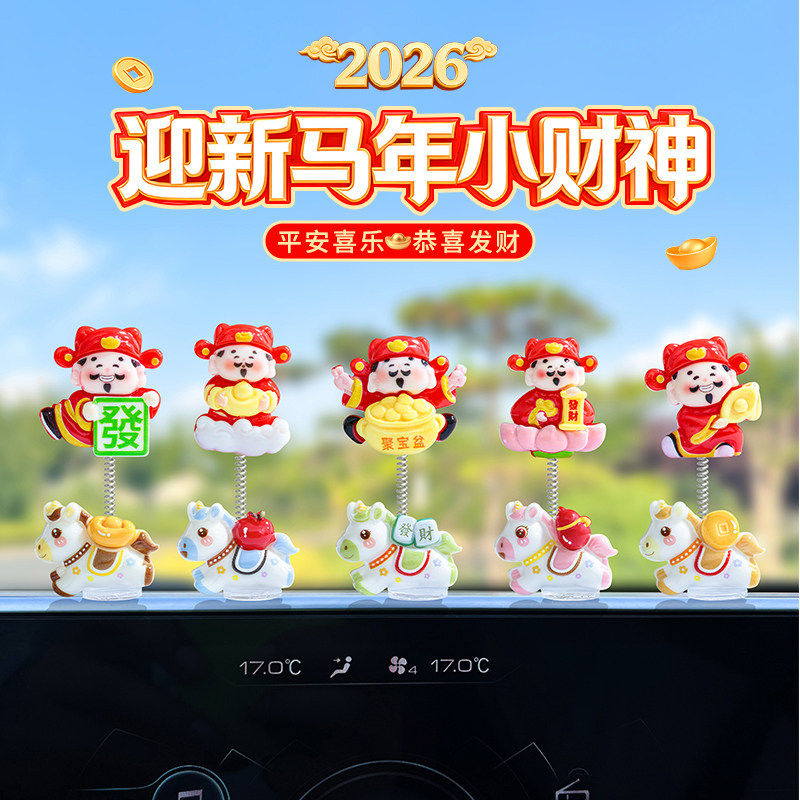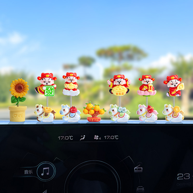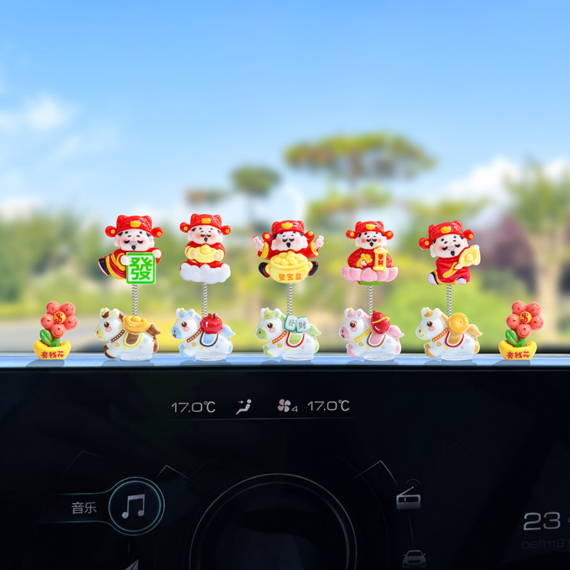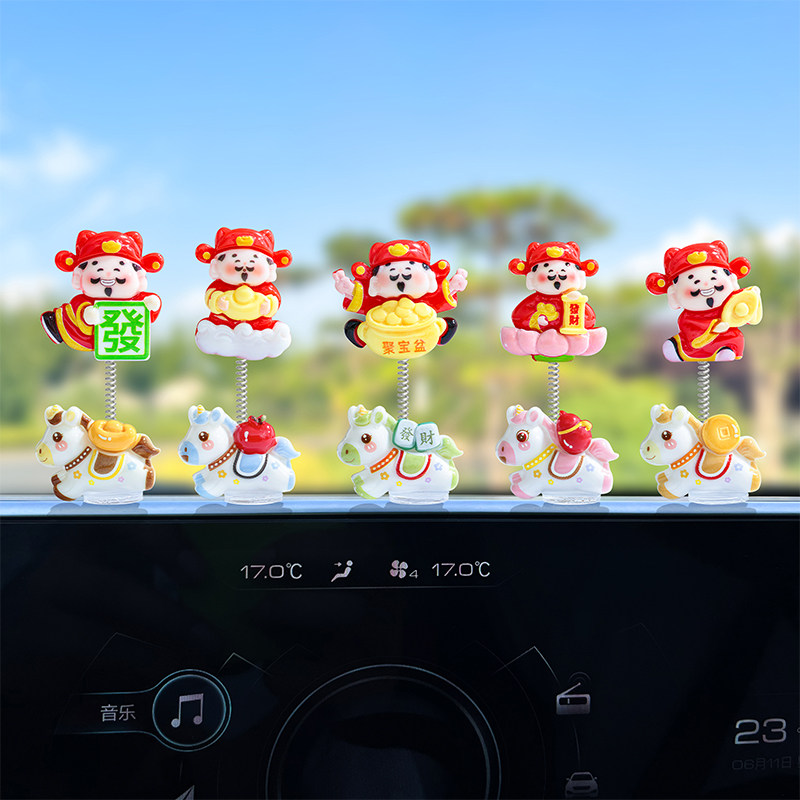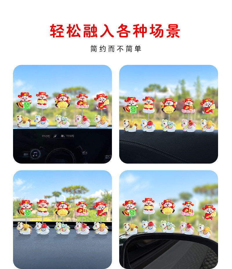 生肖马年新款摇摆财神爷汽车摆件电动车内中控台屏幕办公桌装饰品