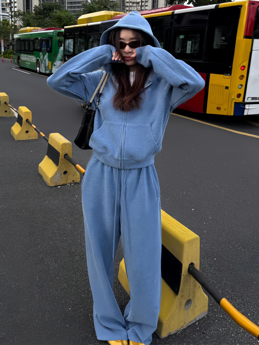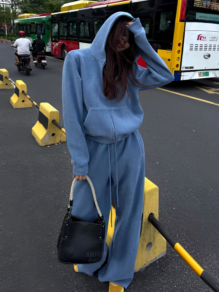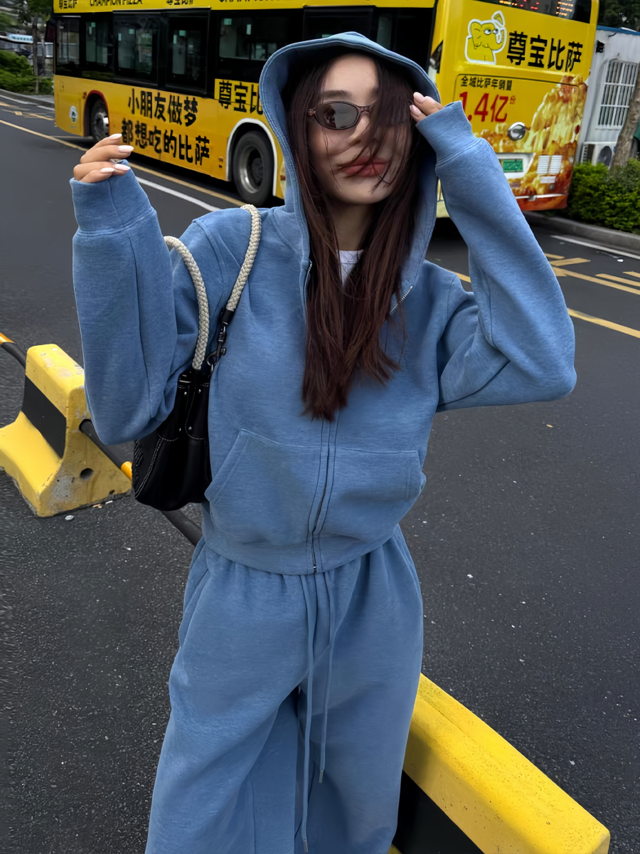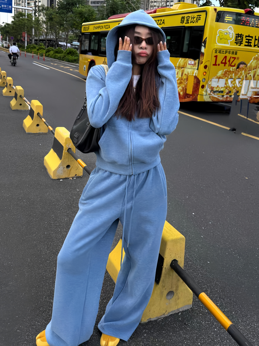 美式炸街运动服套装女秋冬加绒加厚宽松时尚卫衣休闲两件套跑步潮
