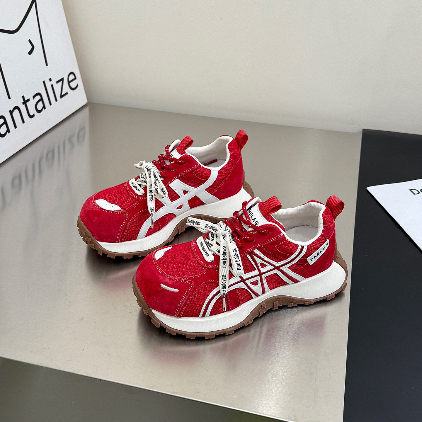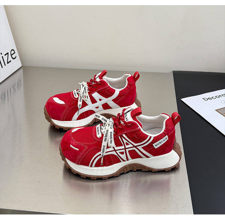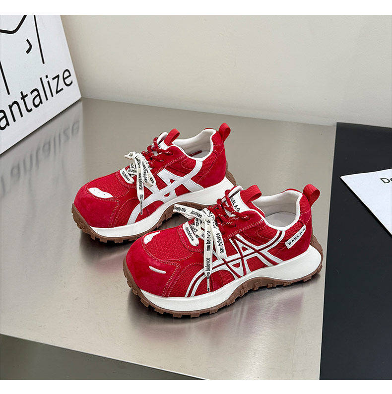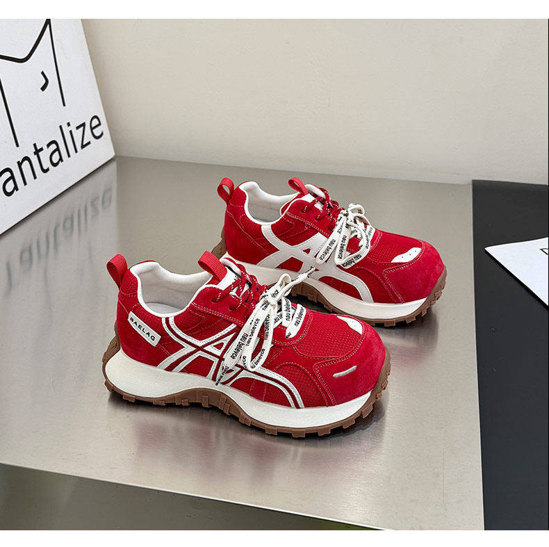 小蛮腰老爹鞋女2026春季新款红色厚底运动休闲鞋女增高小众德训鞋