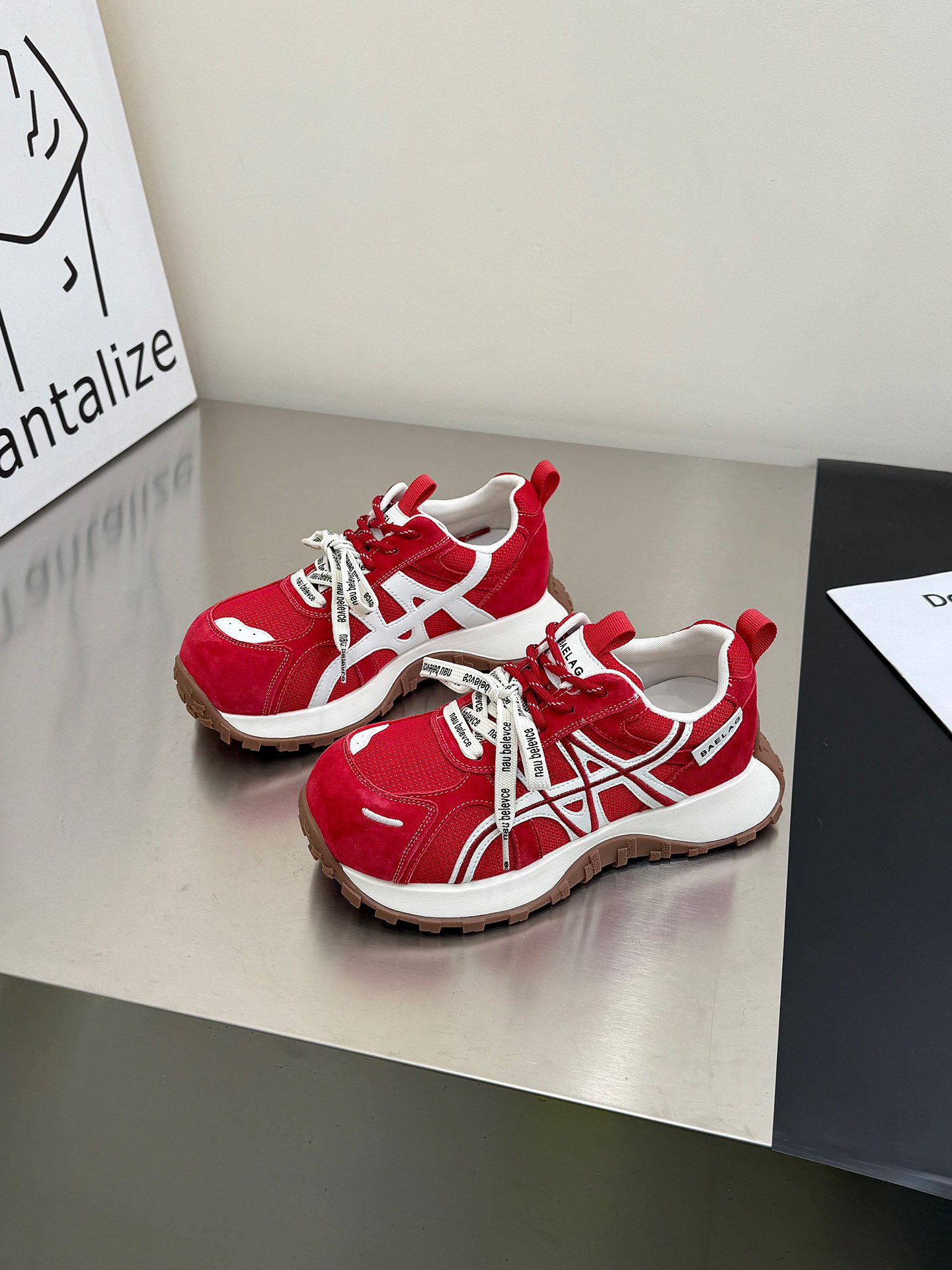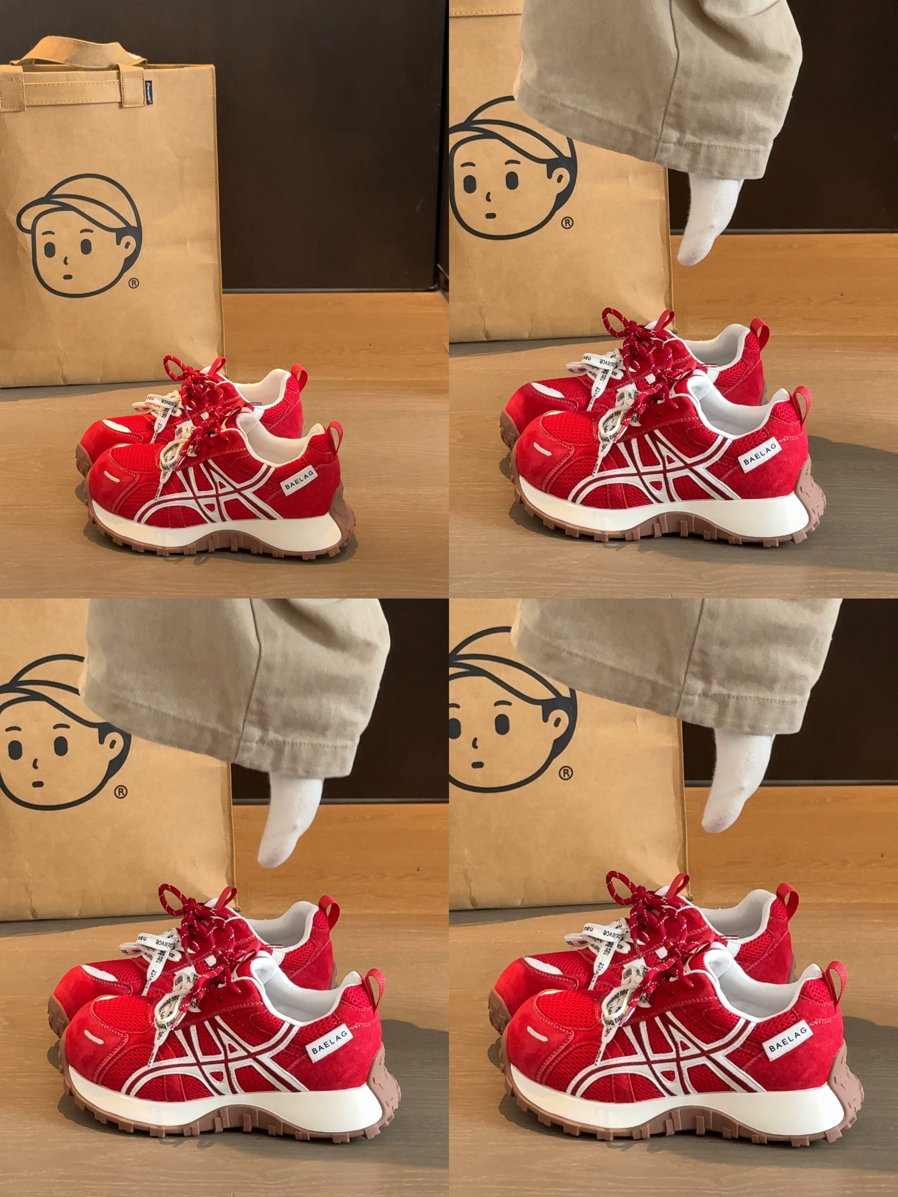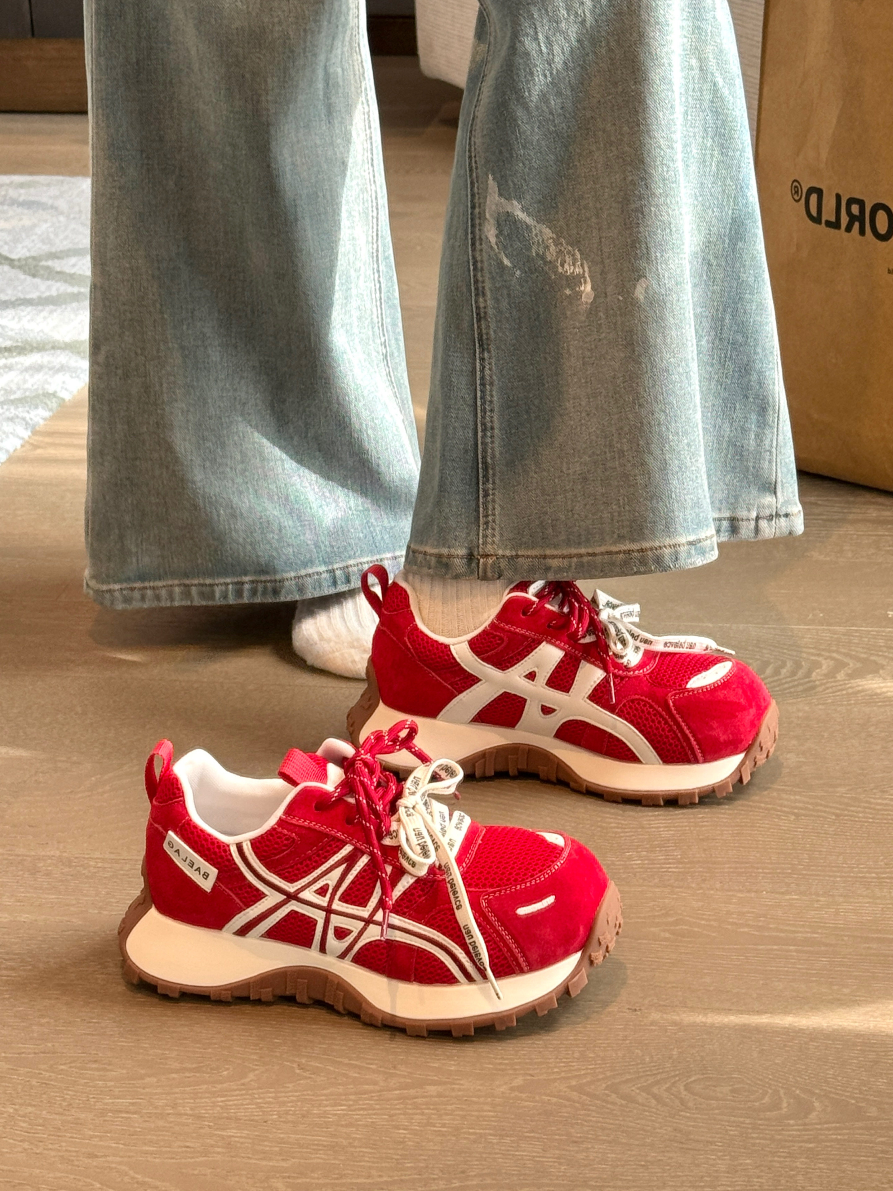 小蛮腰老爹鞋女2026春季新款红色厚底运动休闲鞋女增高小众德训鞋