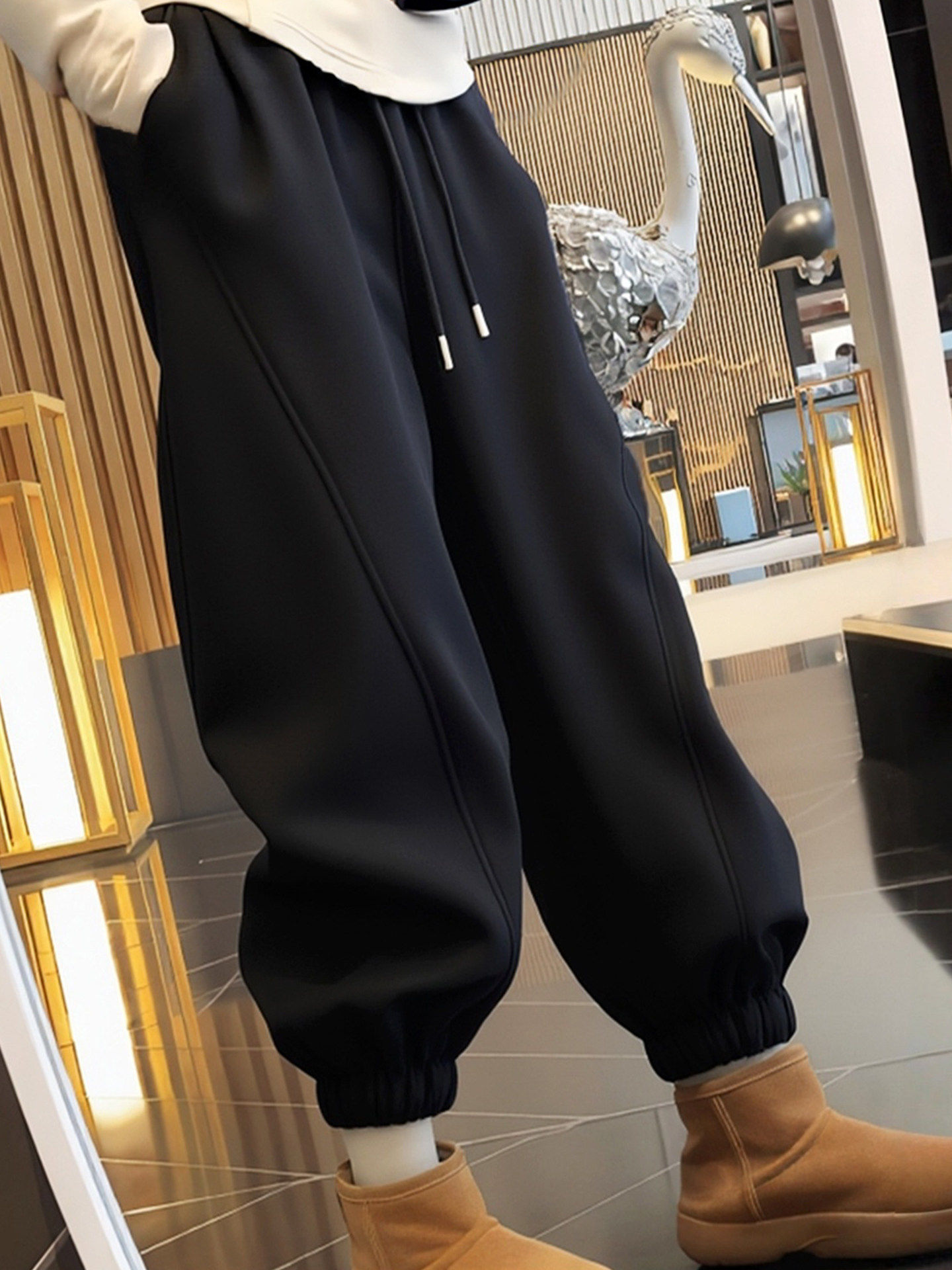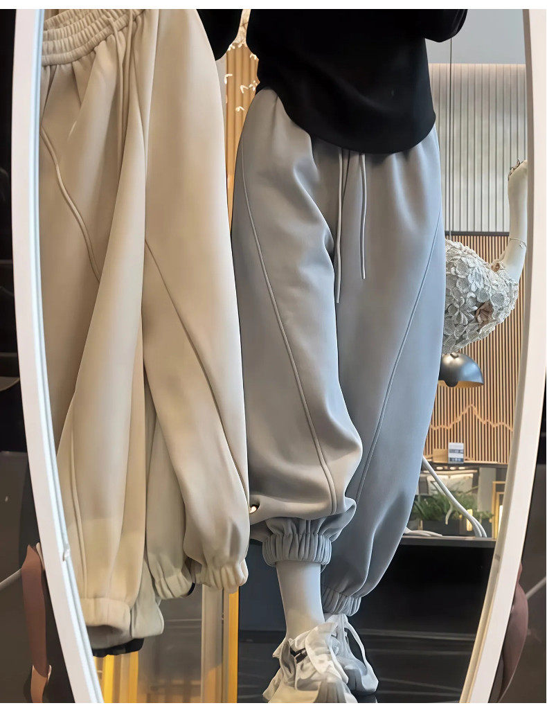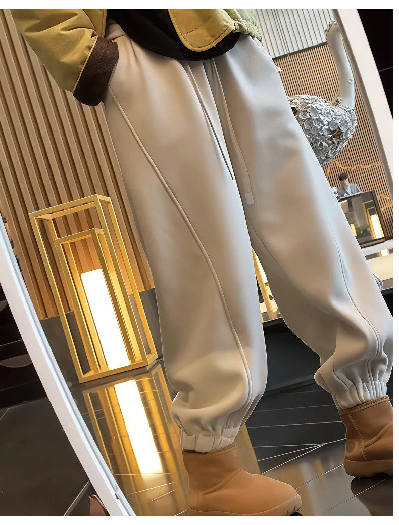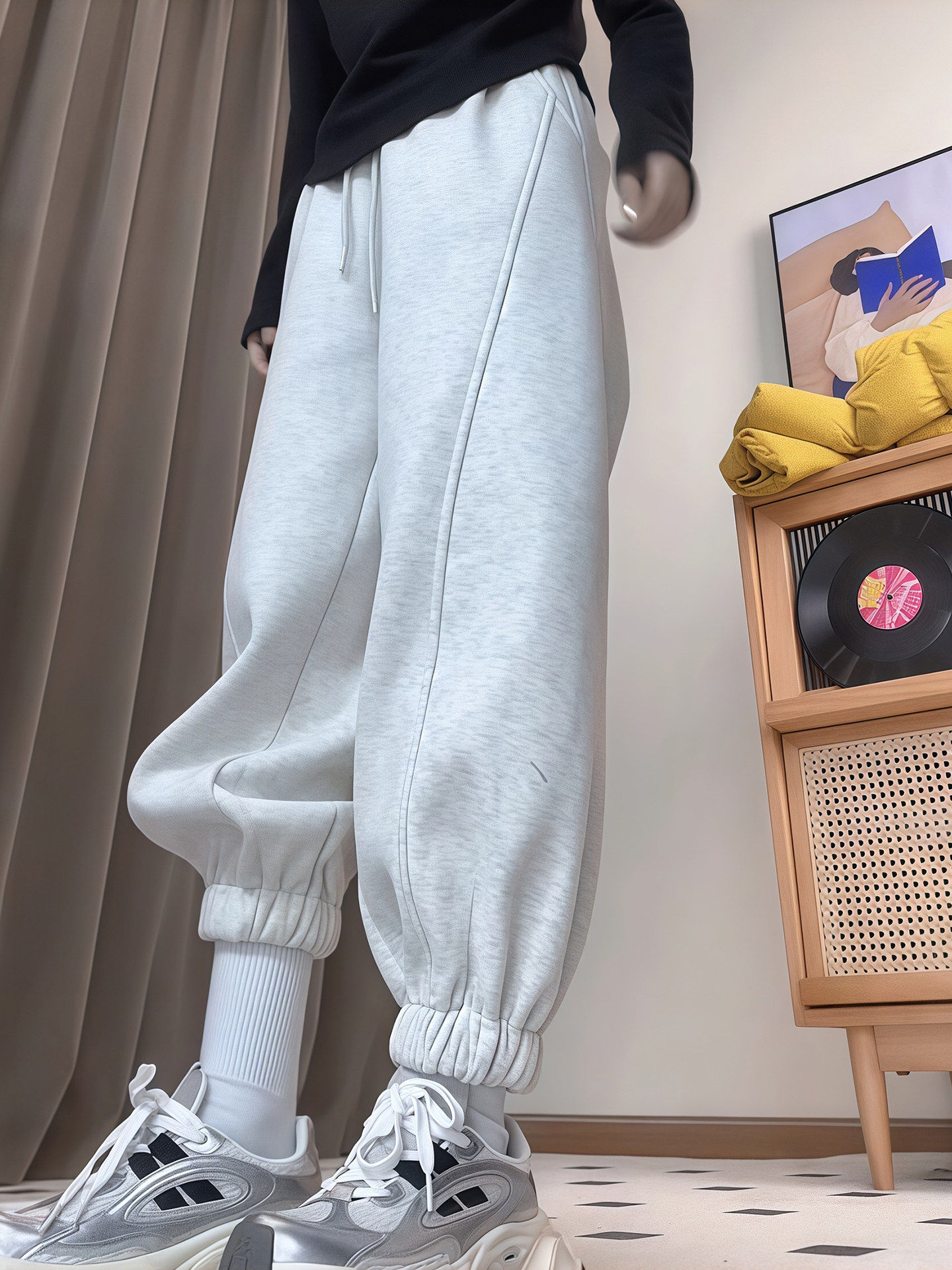 2025超火的加绒裤子女冬季加厚休闲裤高腰阔腿束脚外穿运动哈伦裤