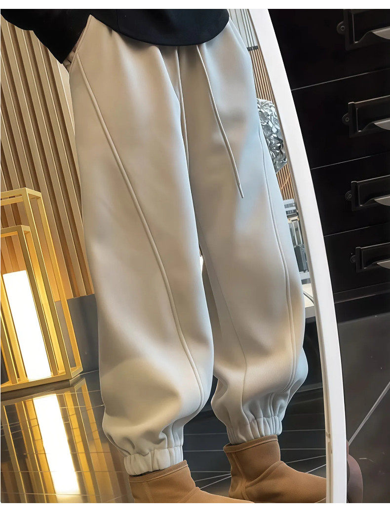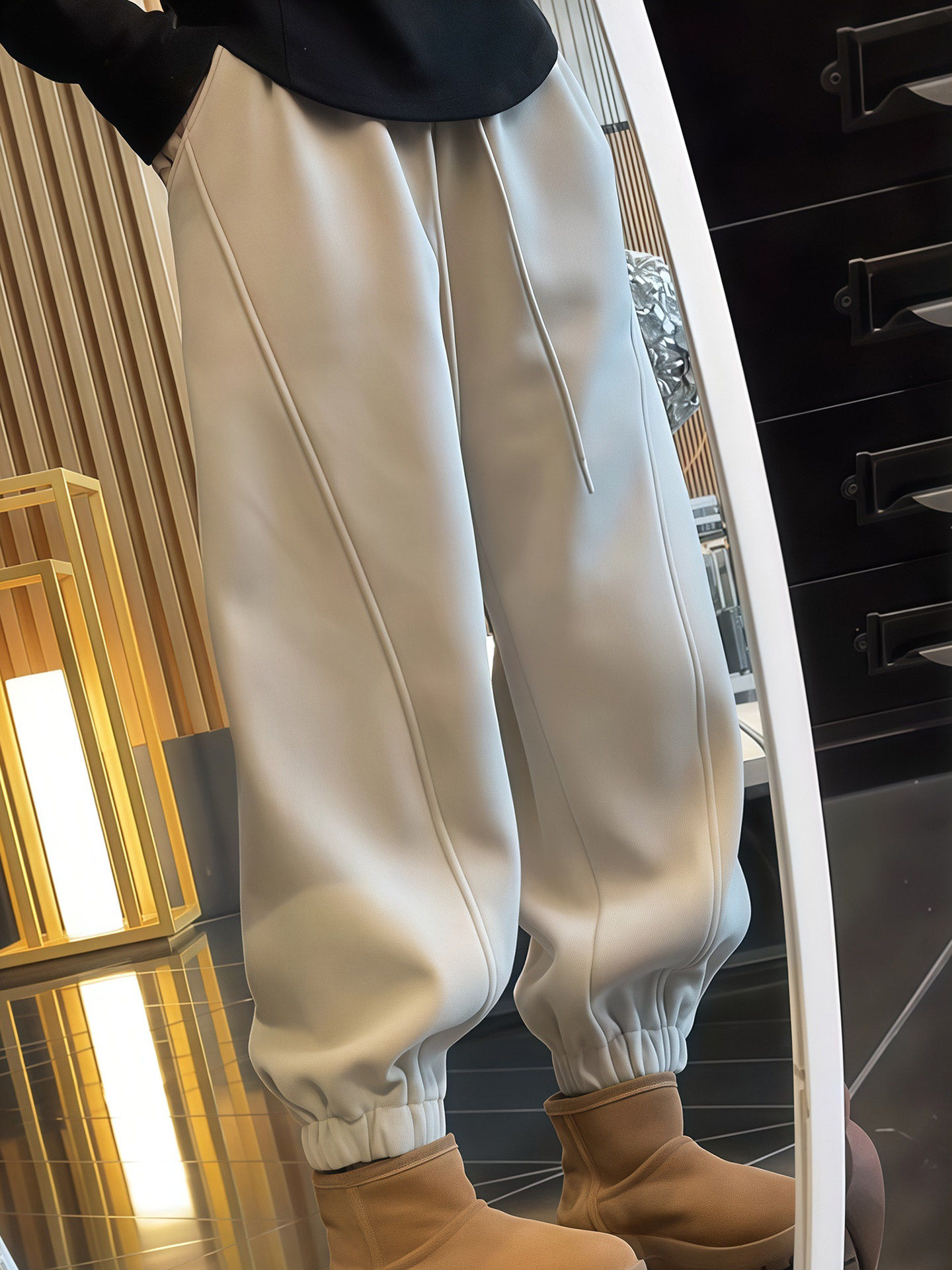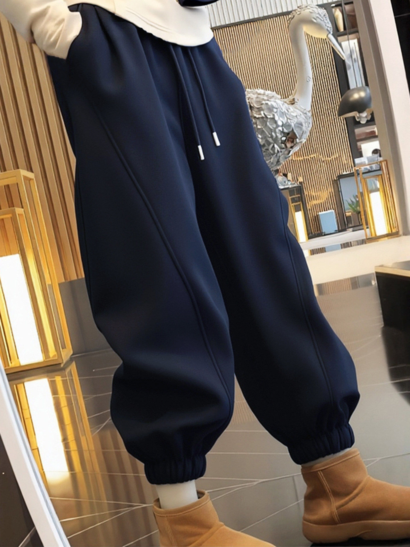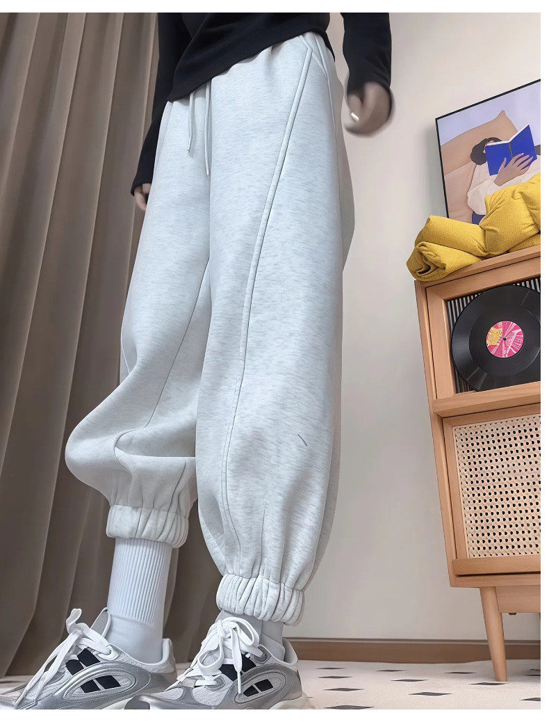2025超火的加绒裤子女冬季加厚休闲裤高腰阔腿束脚外穿运动哈伦裤