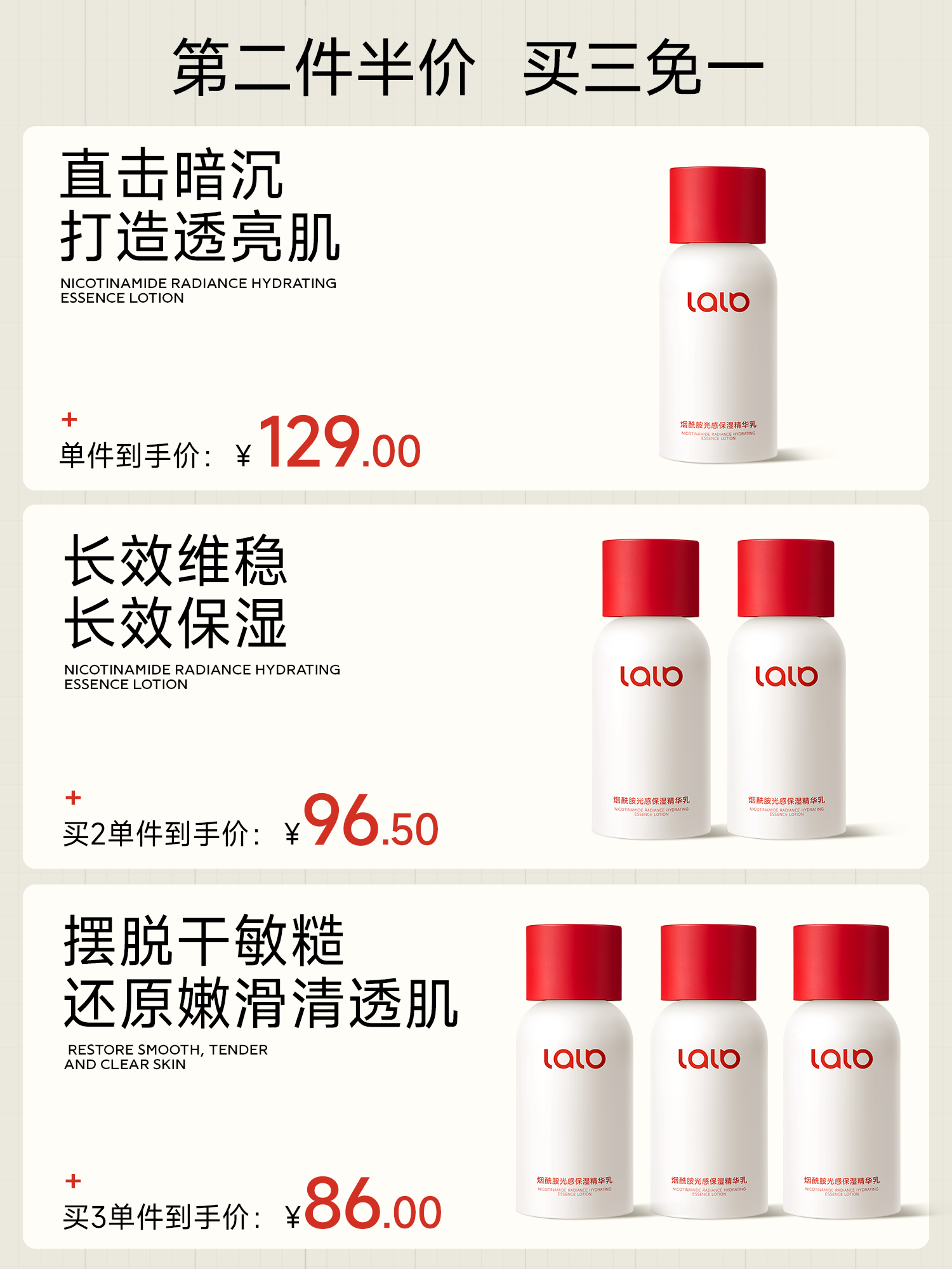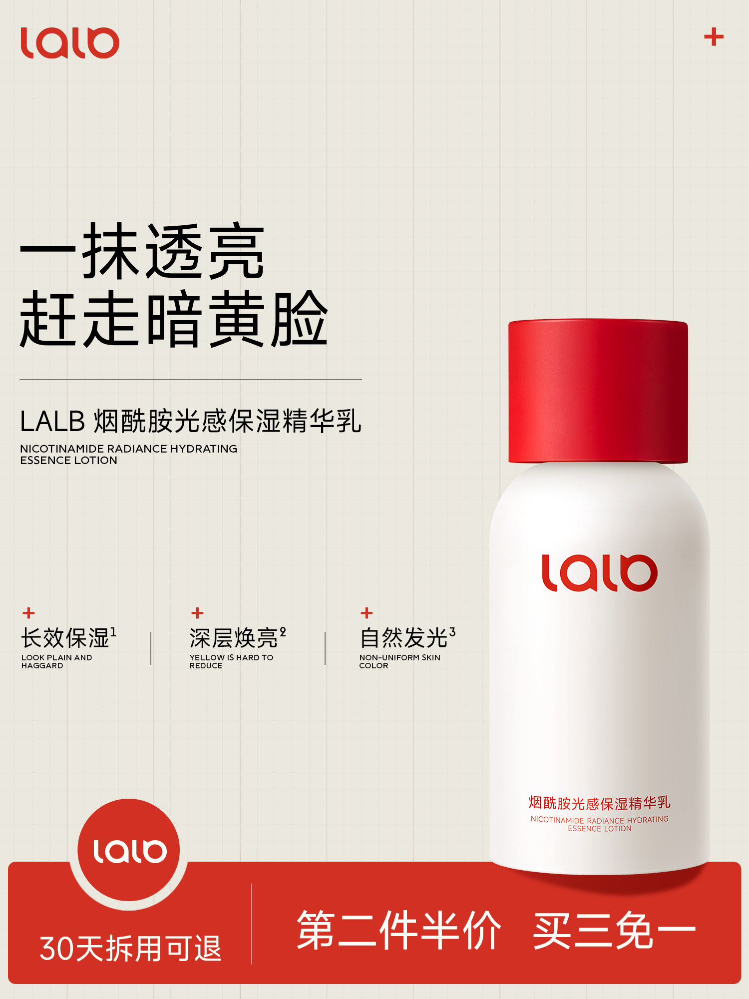 LALB大白瓶减黄焕亮补水保湿紧致淡纹保湿乳LALB保湿精华乳