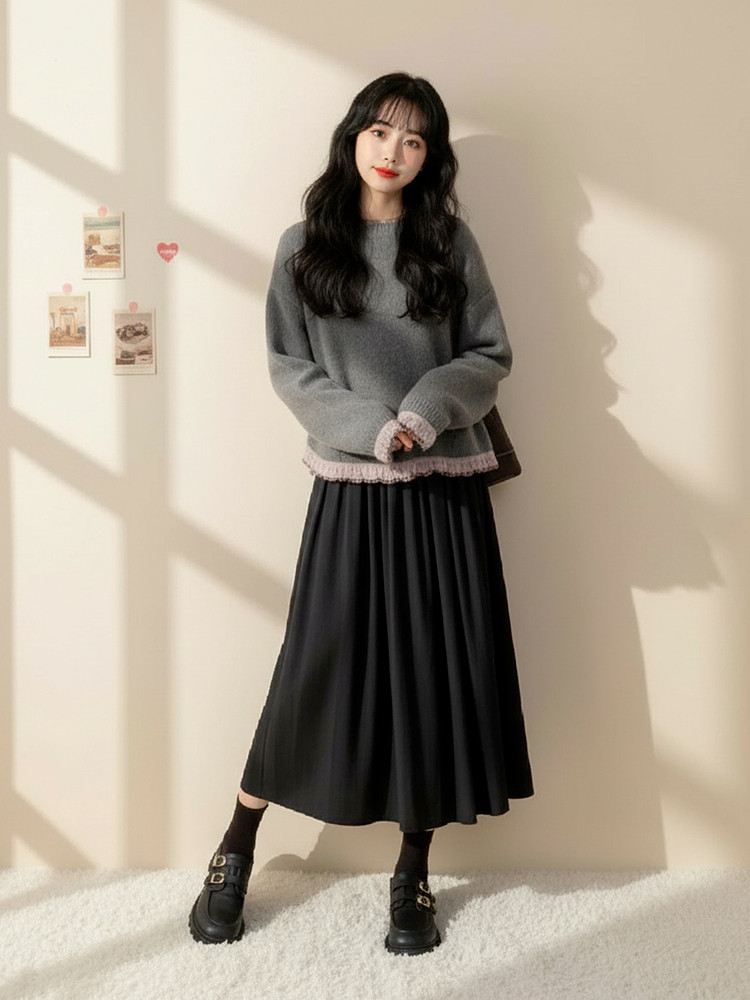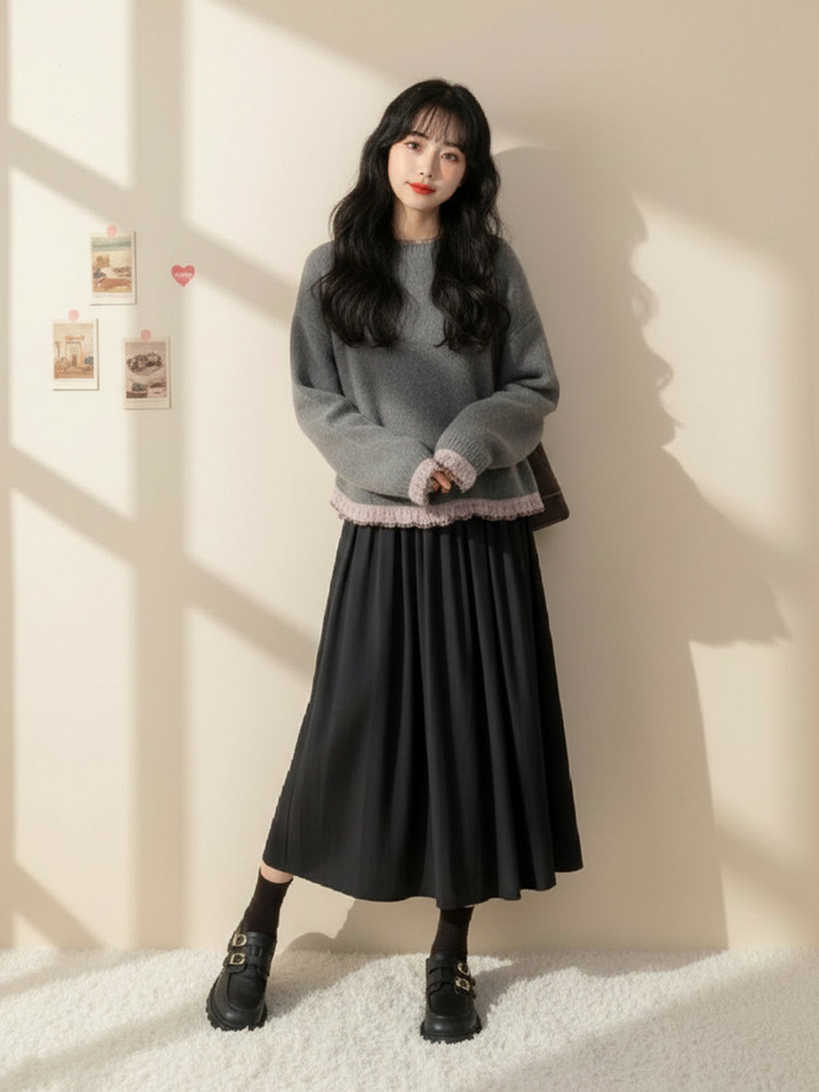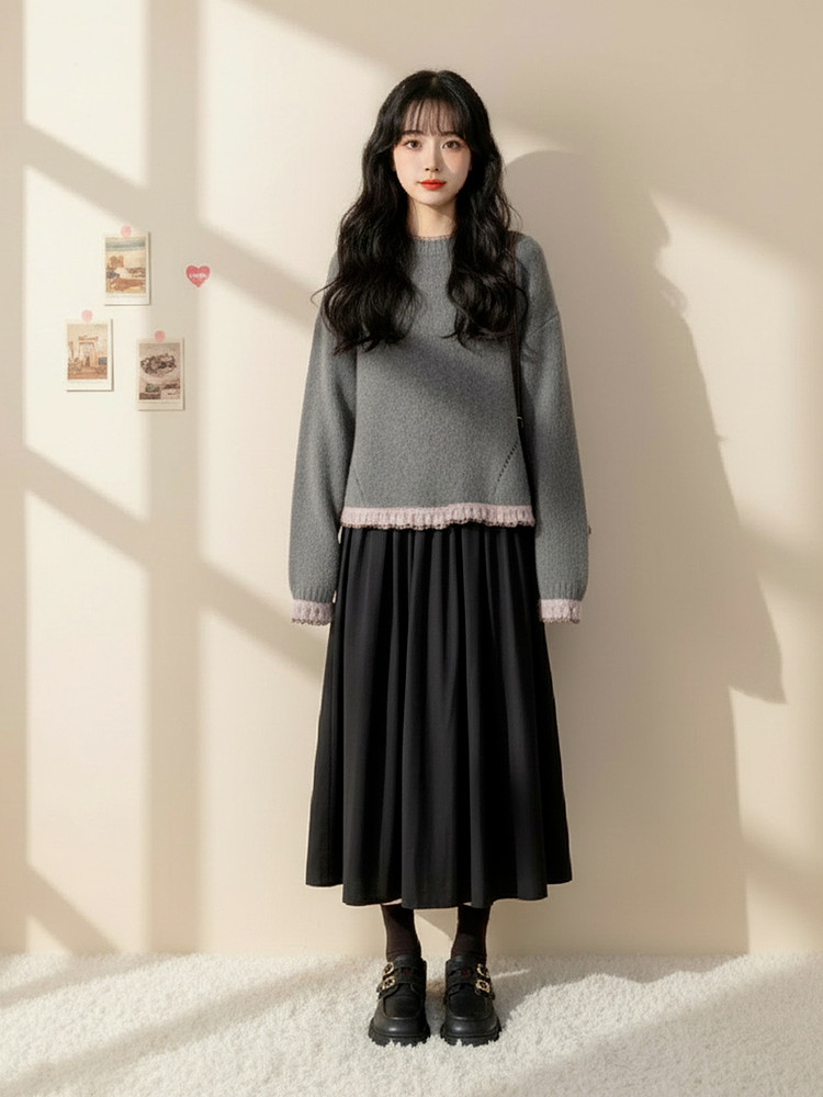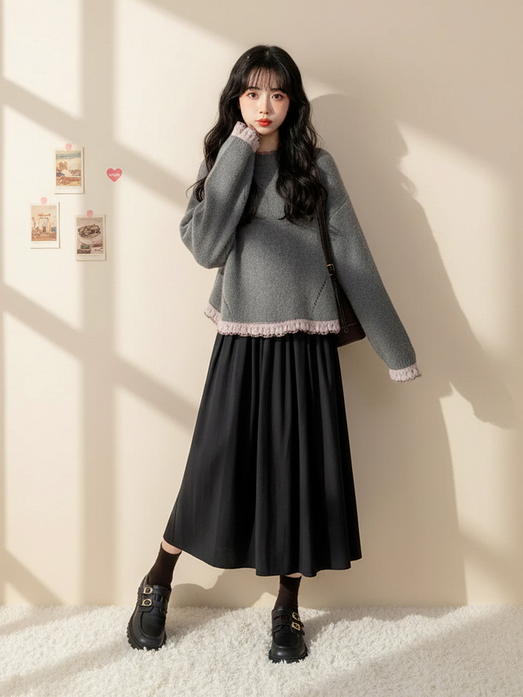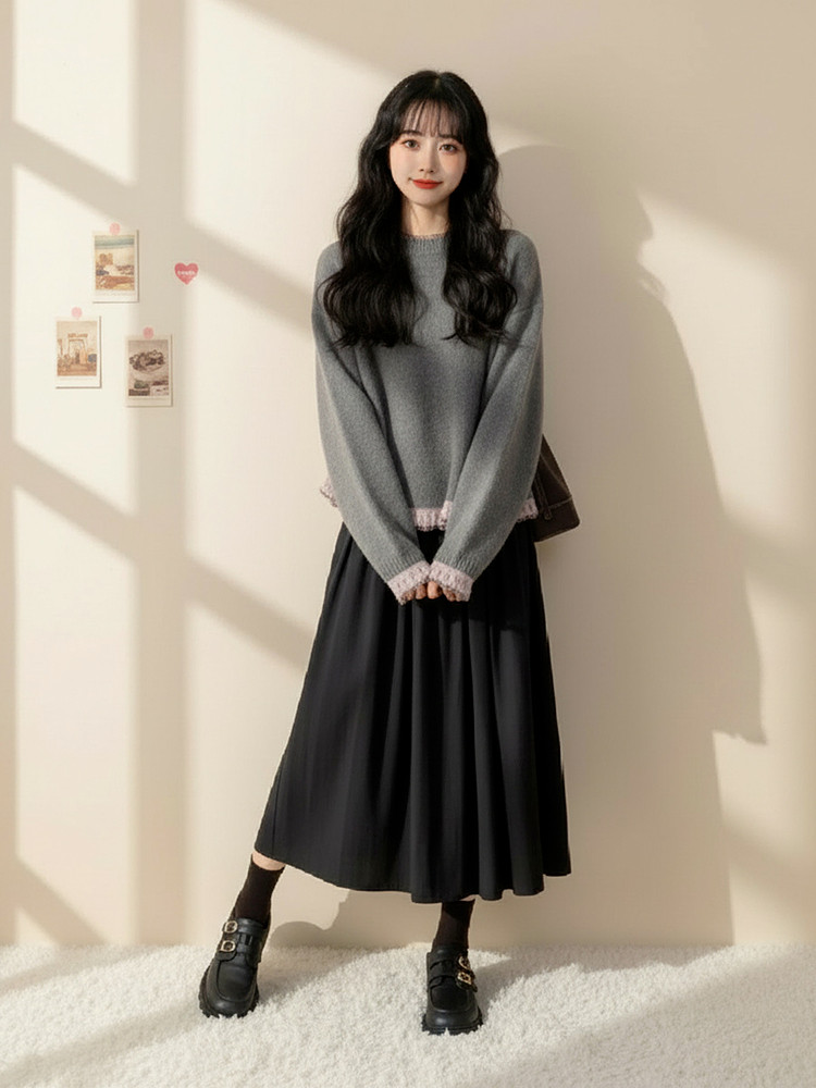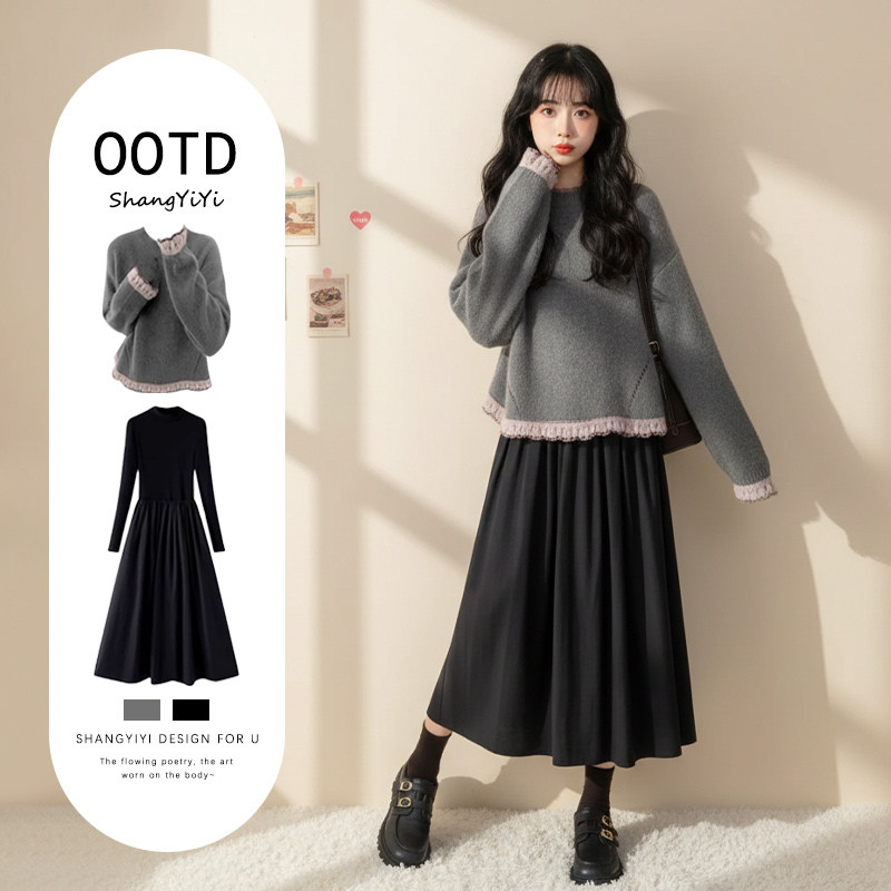 初冬巨好看的连衣裙女款2026超火冬装一整套韩系chic高级感套装裙
