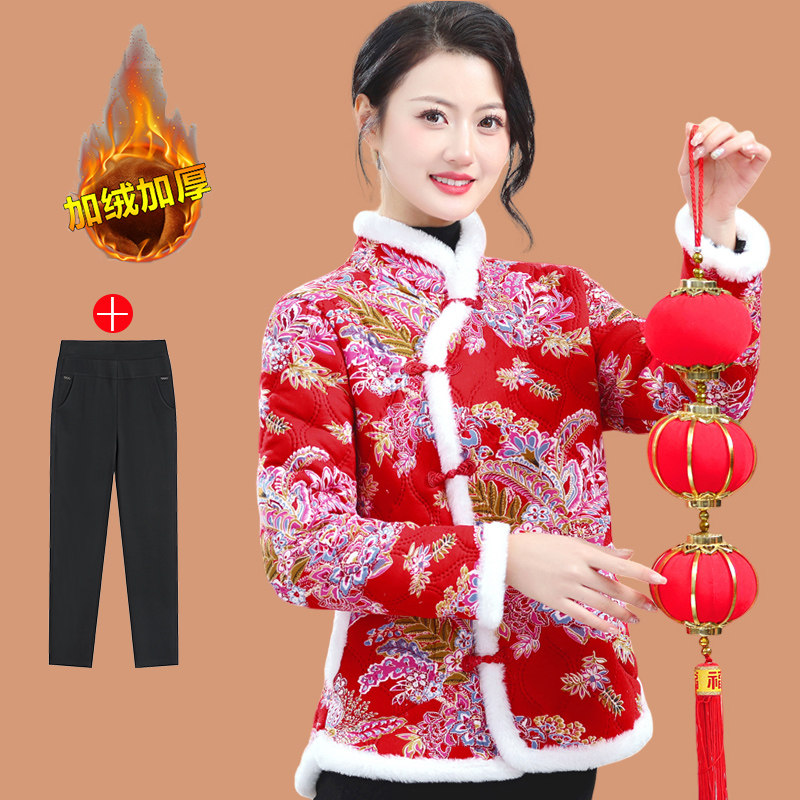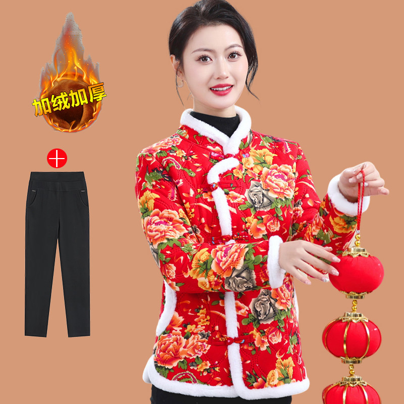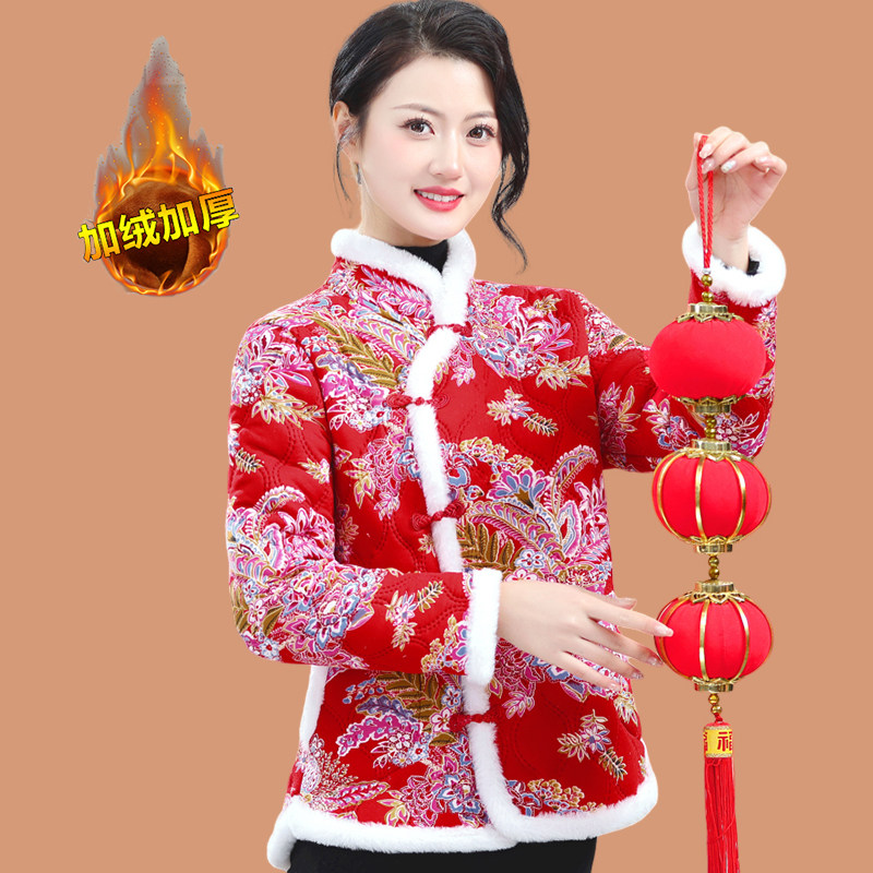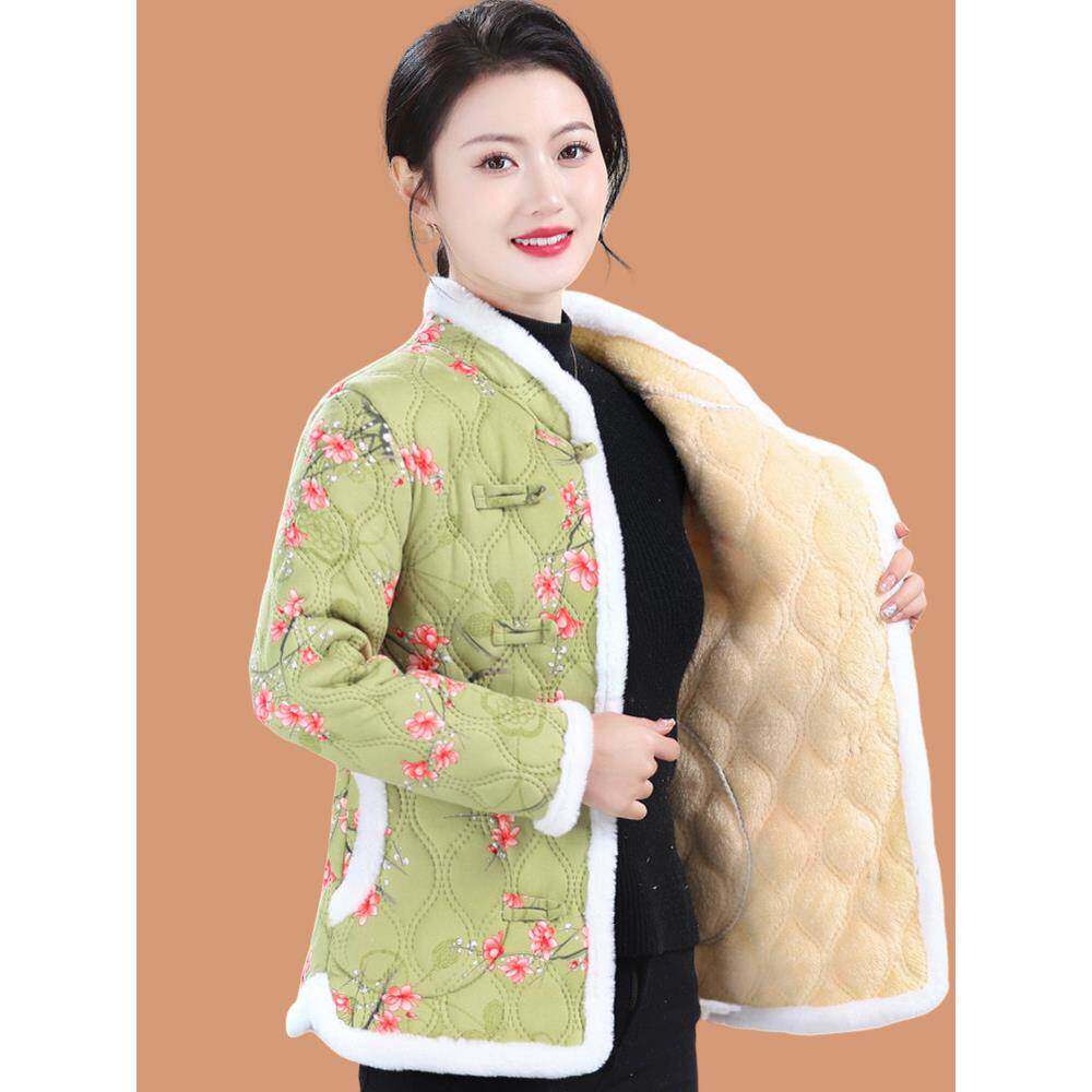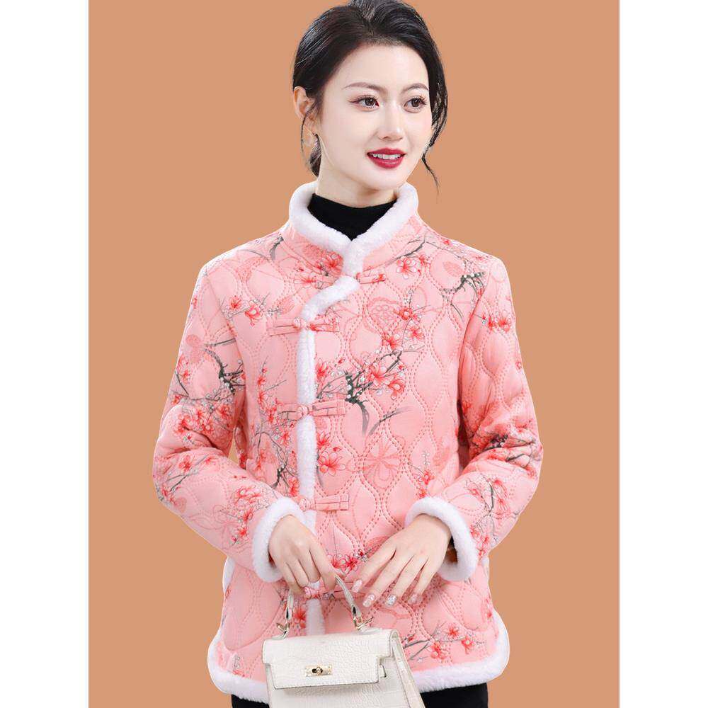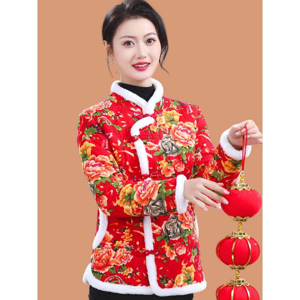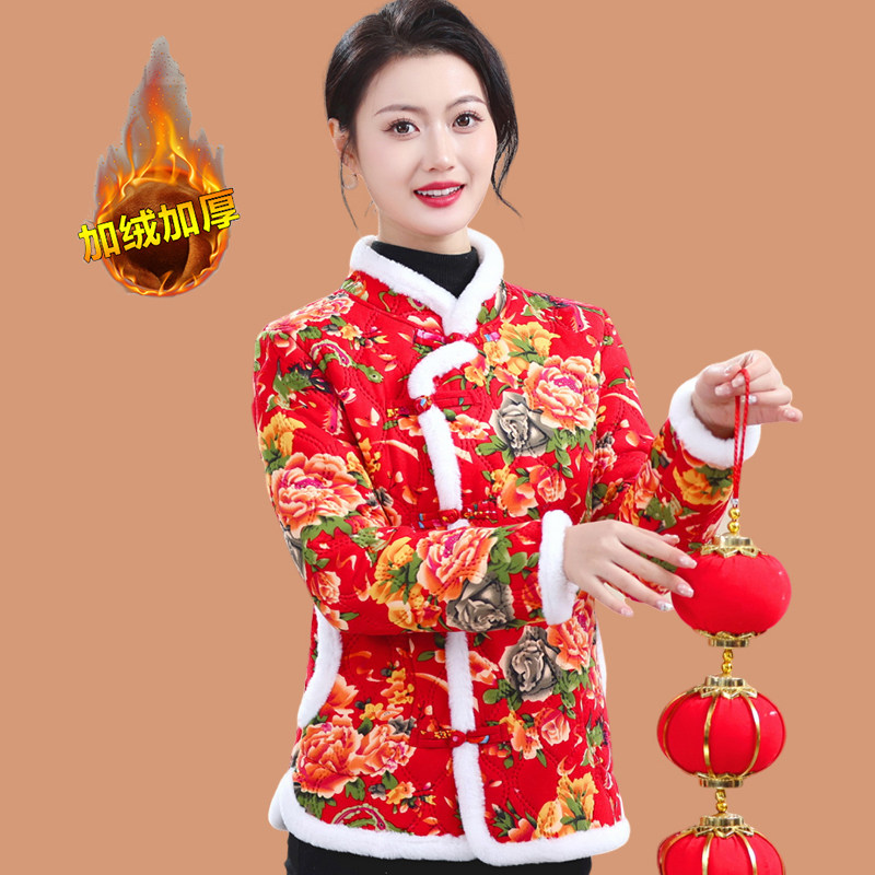 妈妈的民族风格东北大花棉袄中老年妇女里绒覆古扣棉袄短唐装小棉