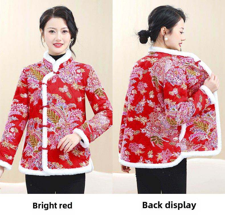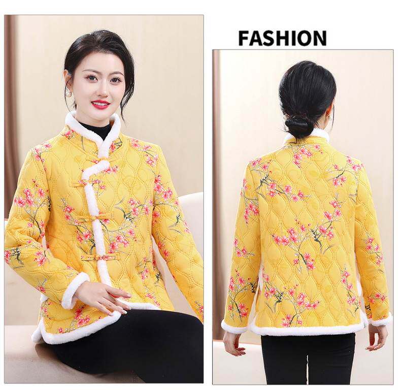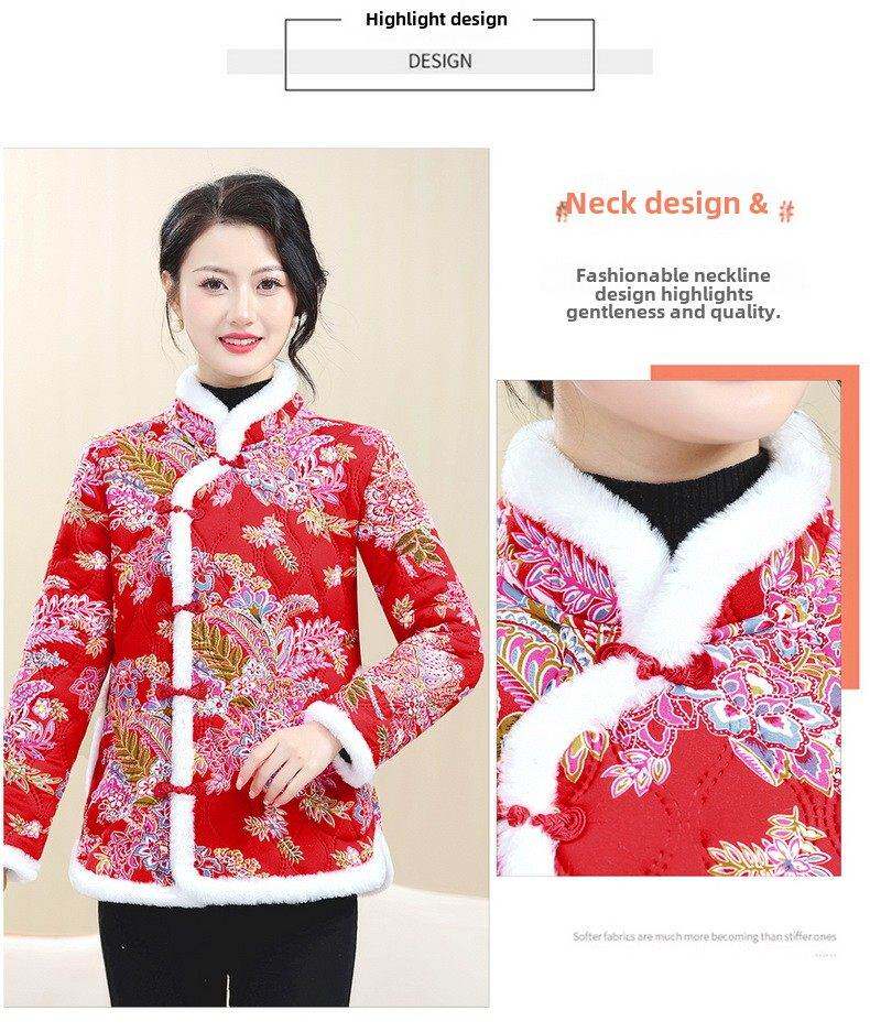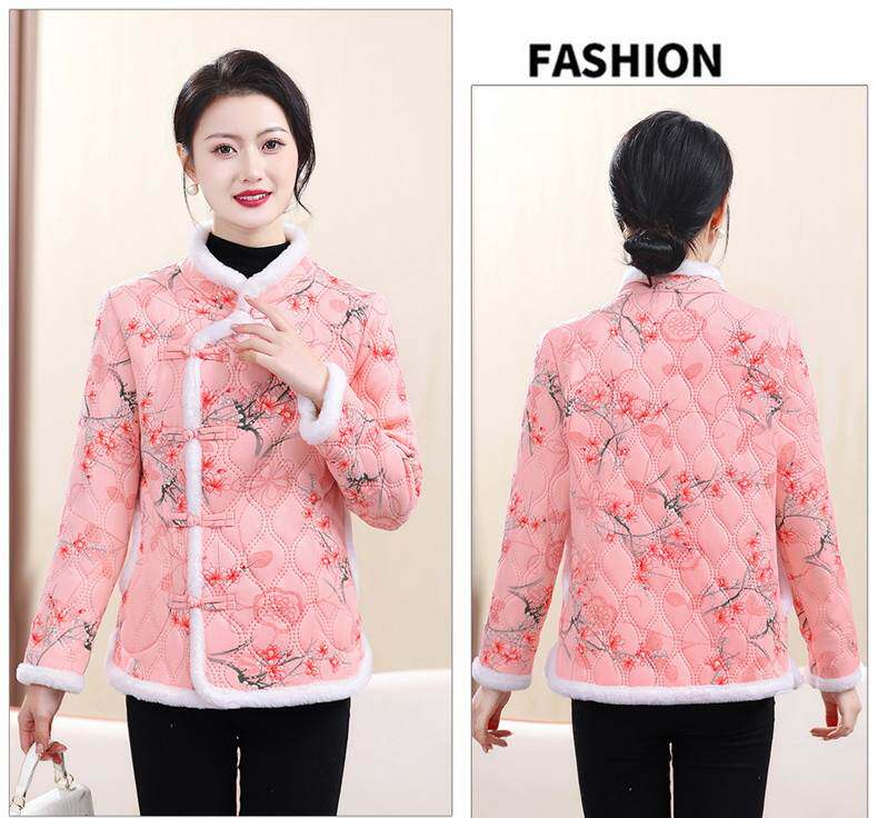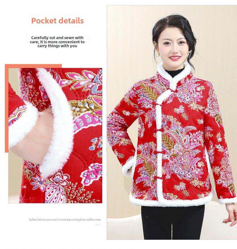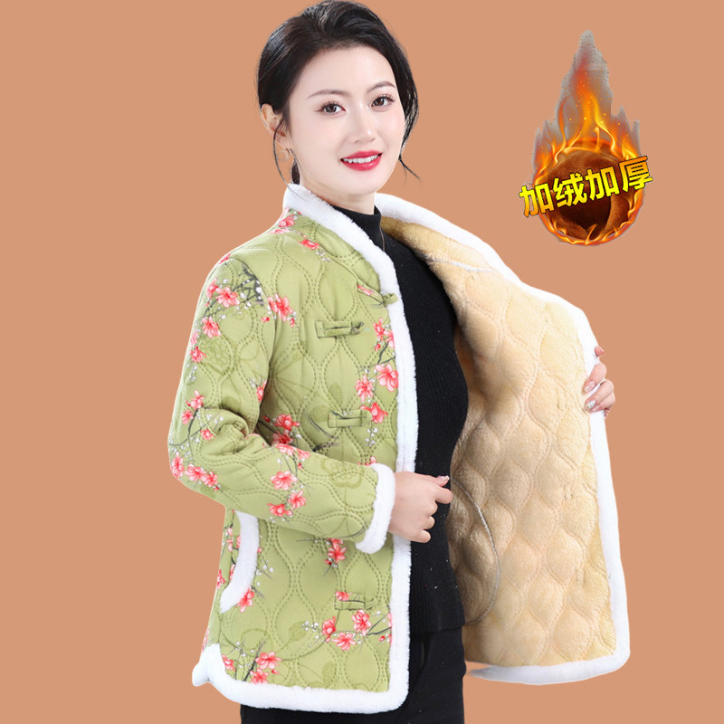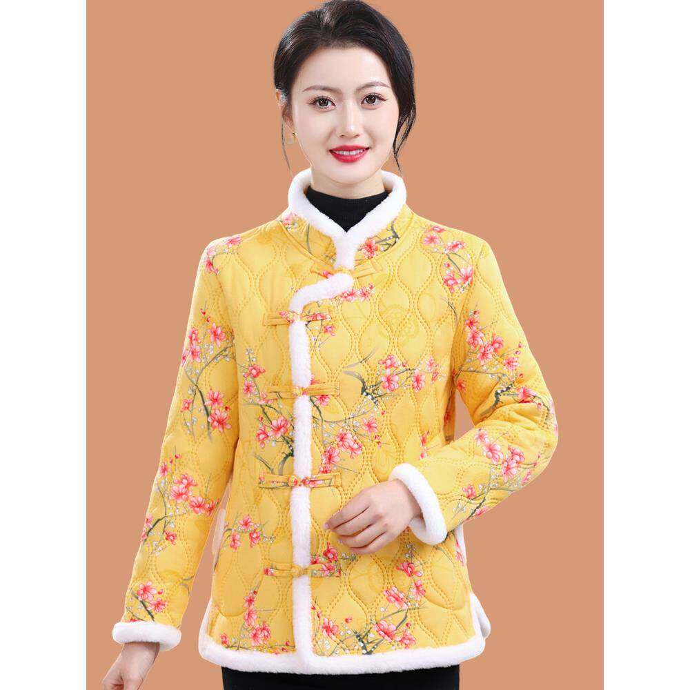 妈妈的民族风格东北大花棉袄中老年妇女里绒覆古扣棉袄短唐装小棉