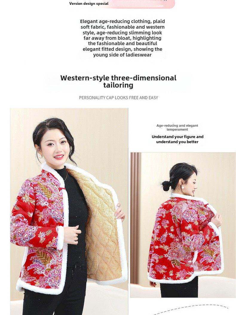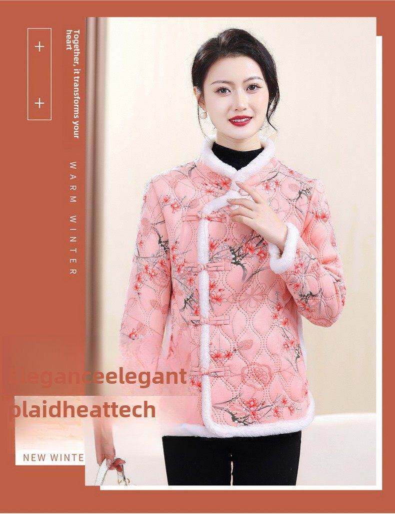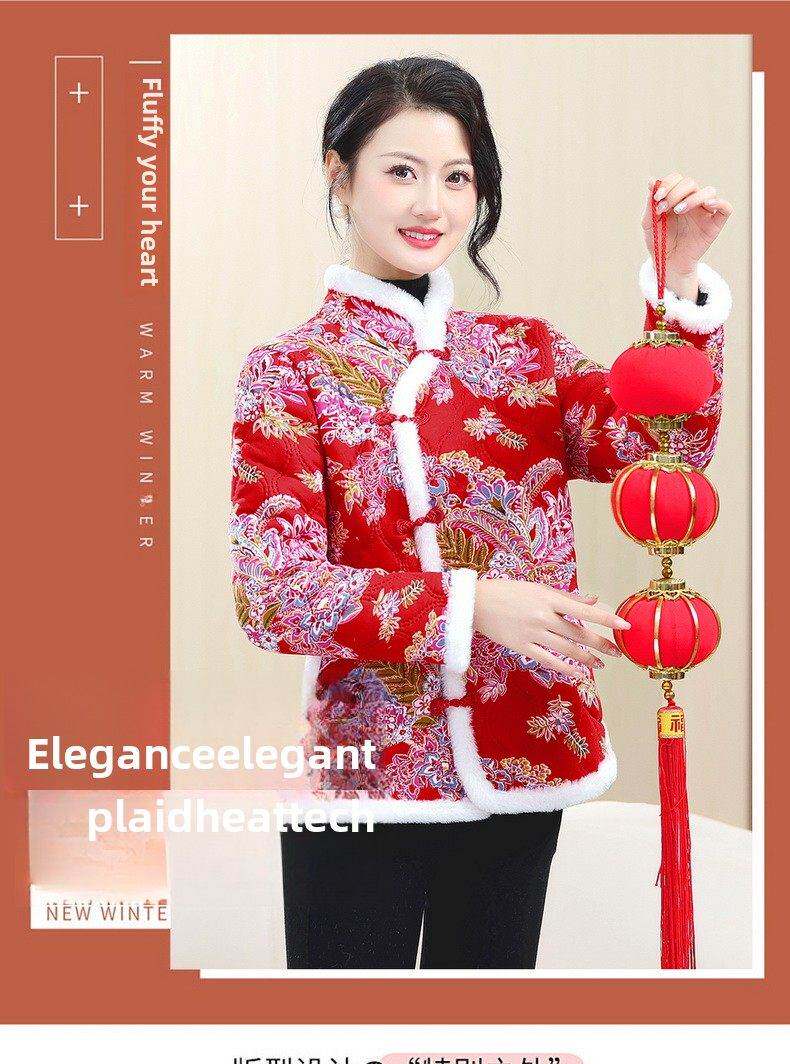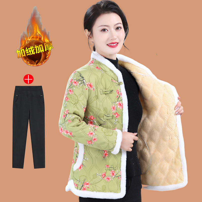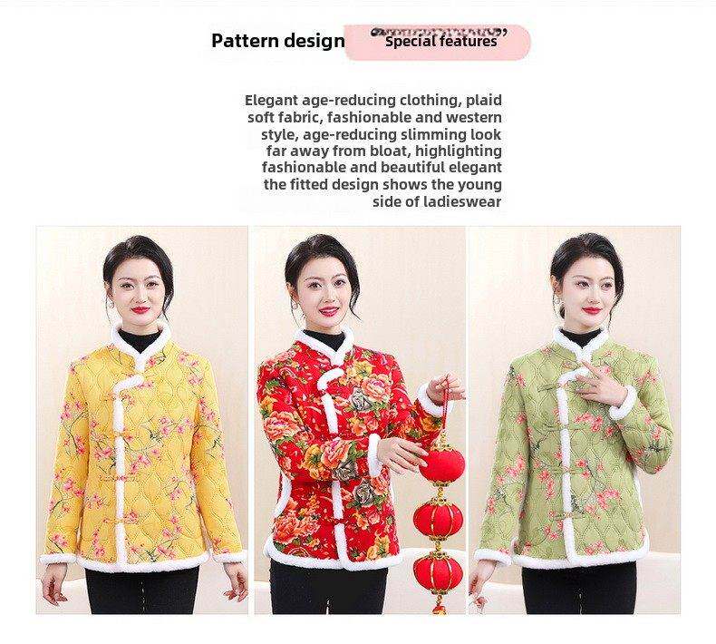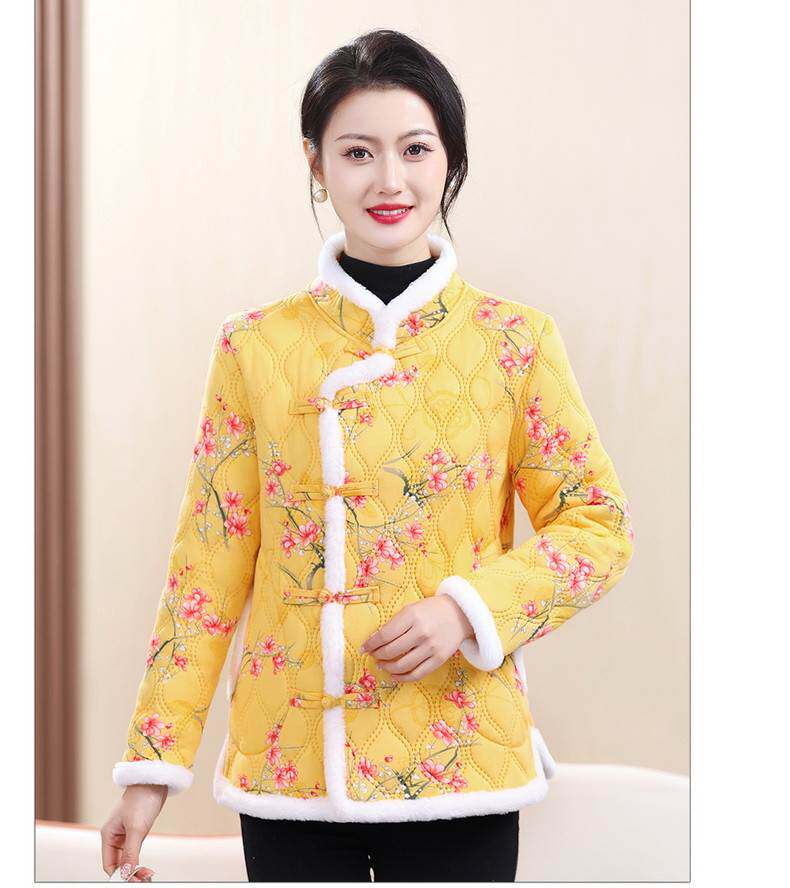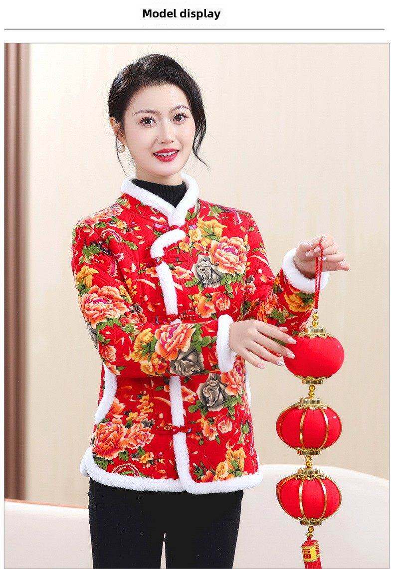 妈妈的民族风格东北大花棉袄中老年妇女里绒覆古扣棉袄短唐装小棉