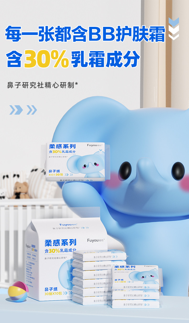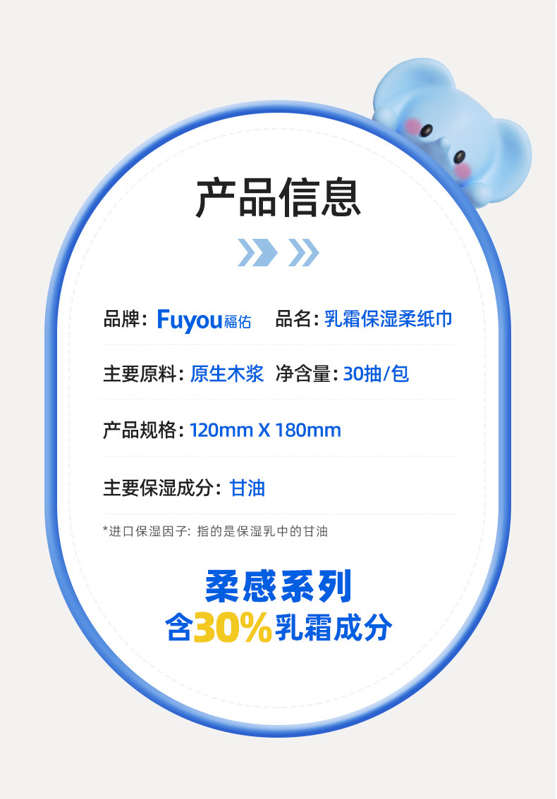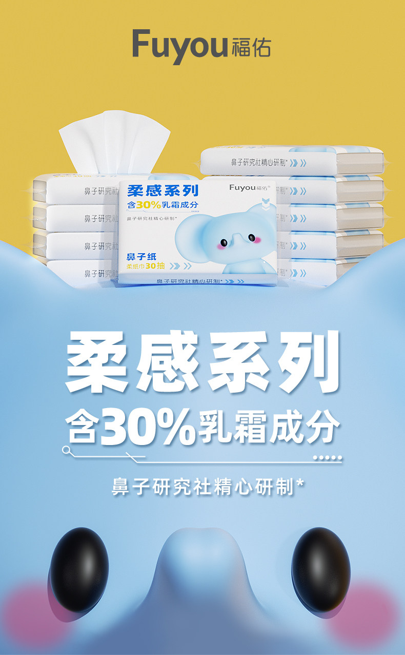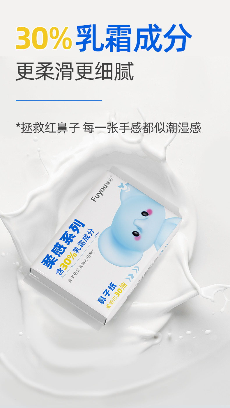 【直降价】福佑乳霜纸30抽新生儿专用云柔巾宝宝保湿抽纸擦鼻便携
