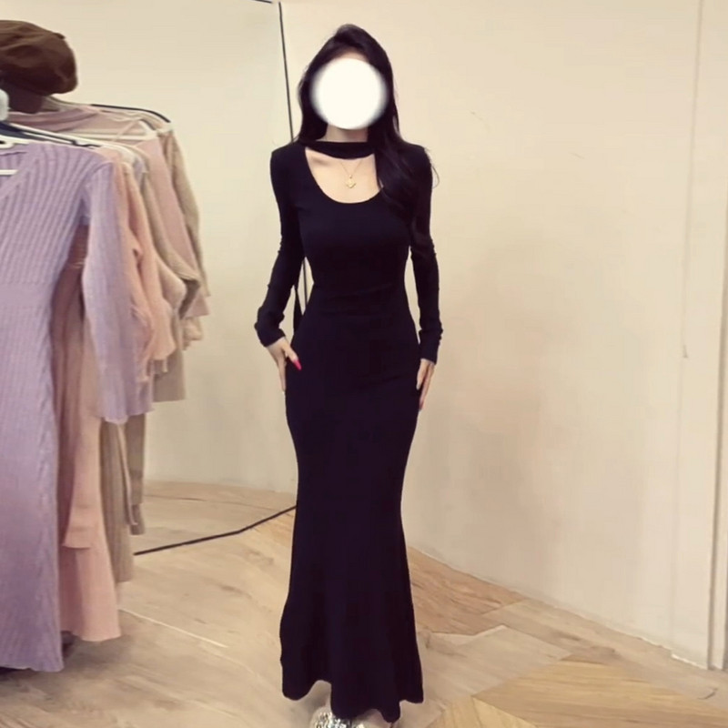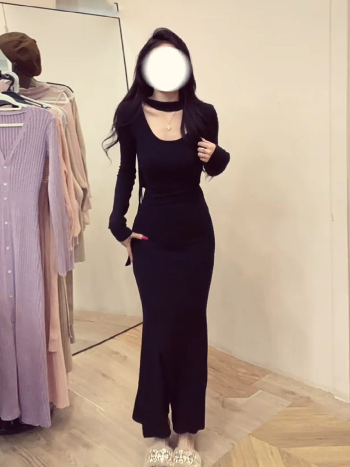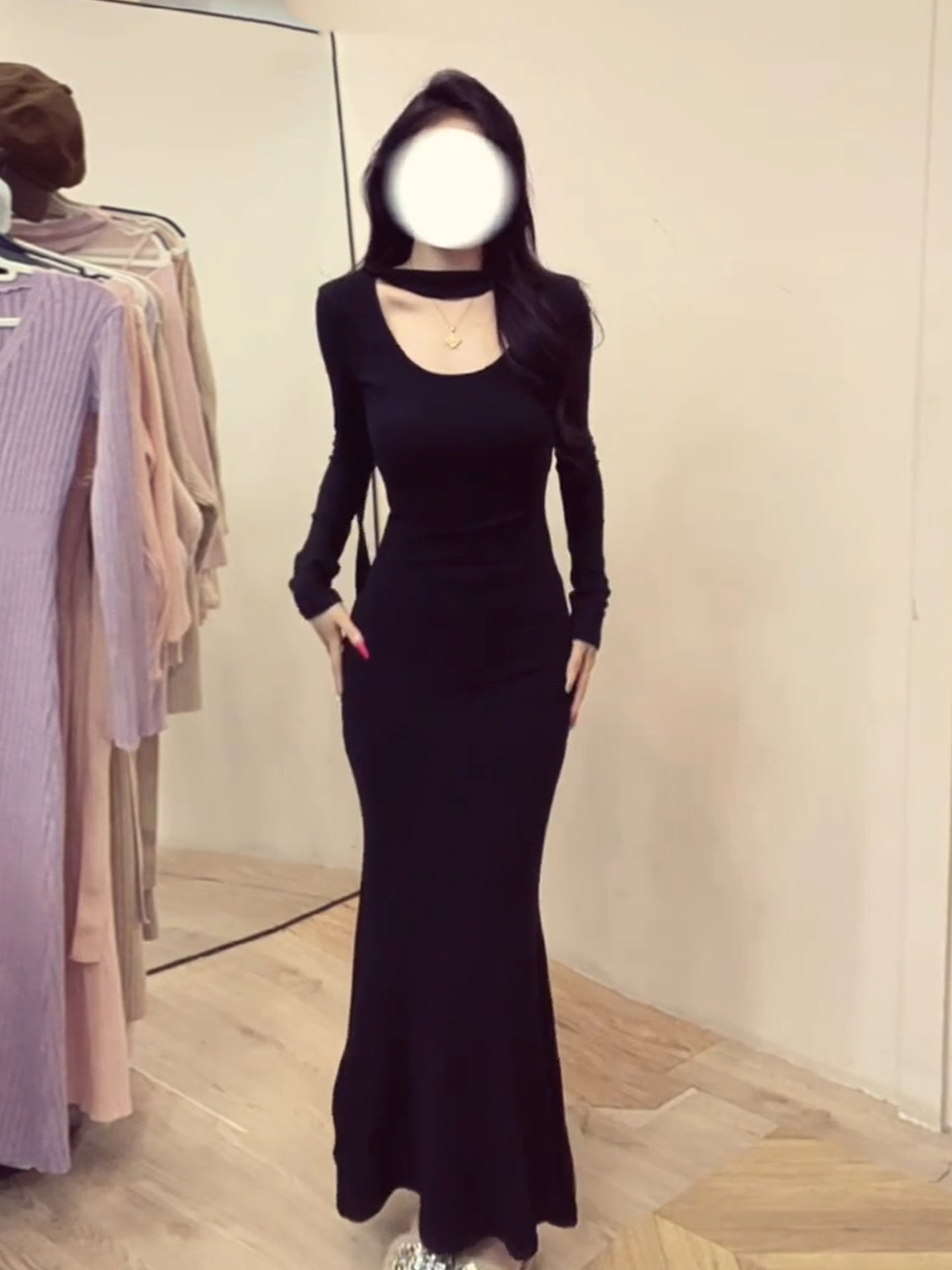 2026新款针织包臀黑色连衣裙子女秋冬巨好看辣妹性感纯欲大衣内搭