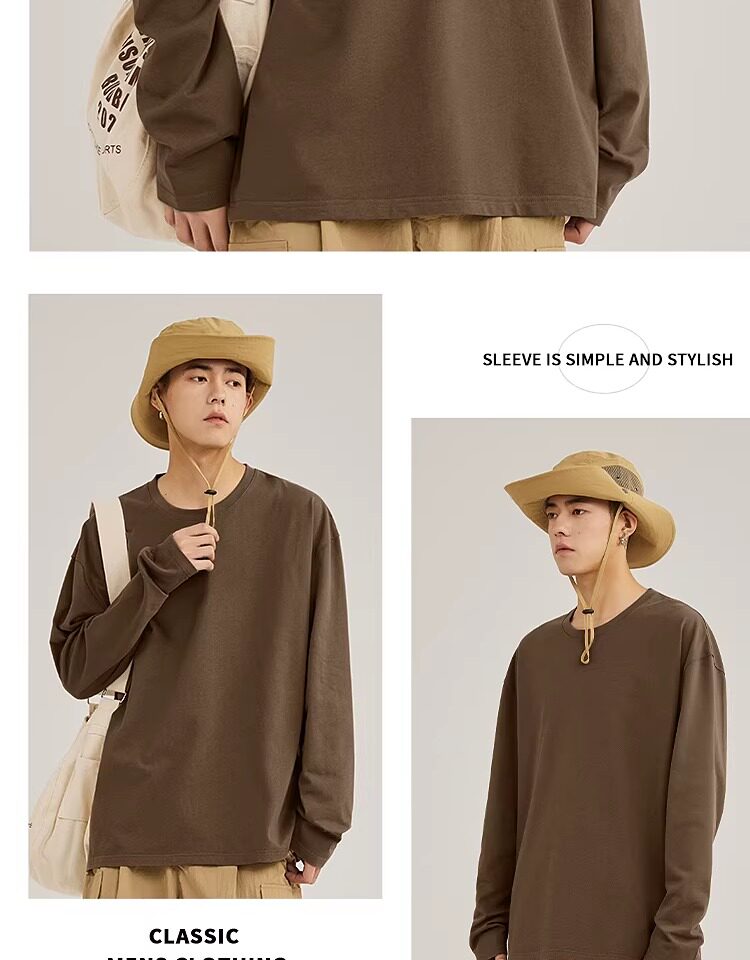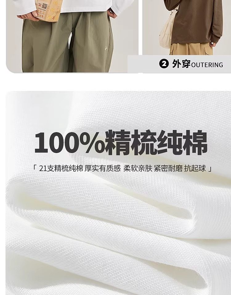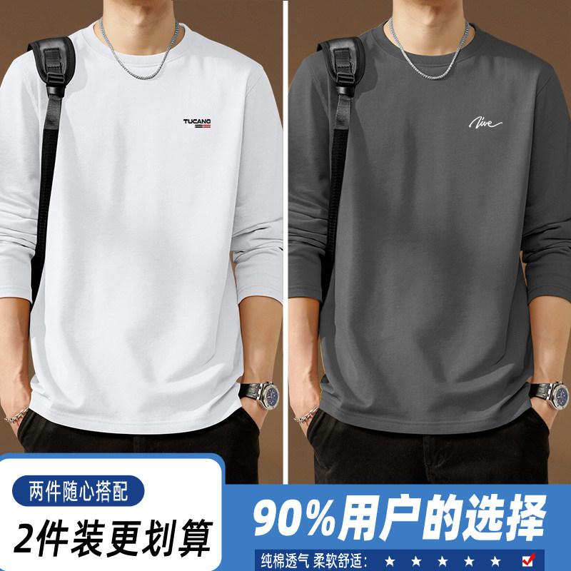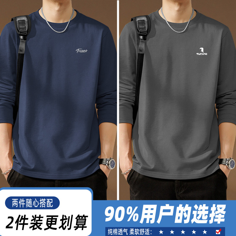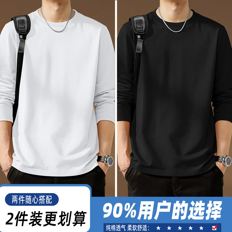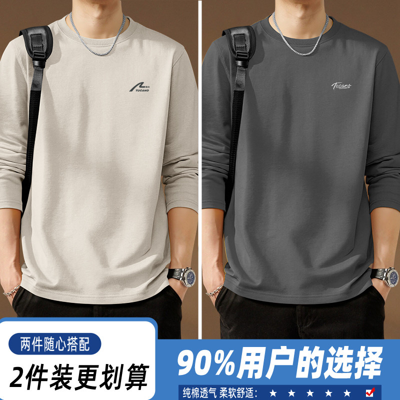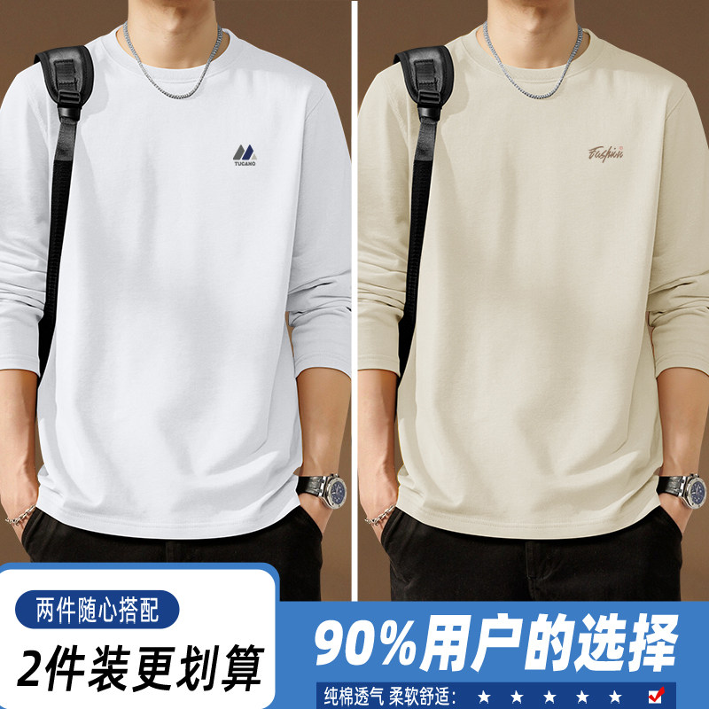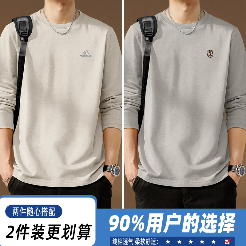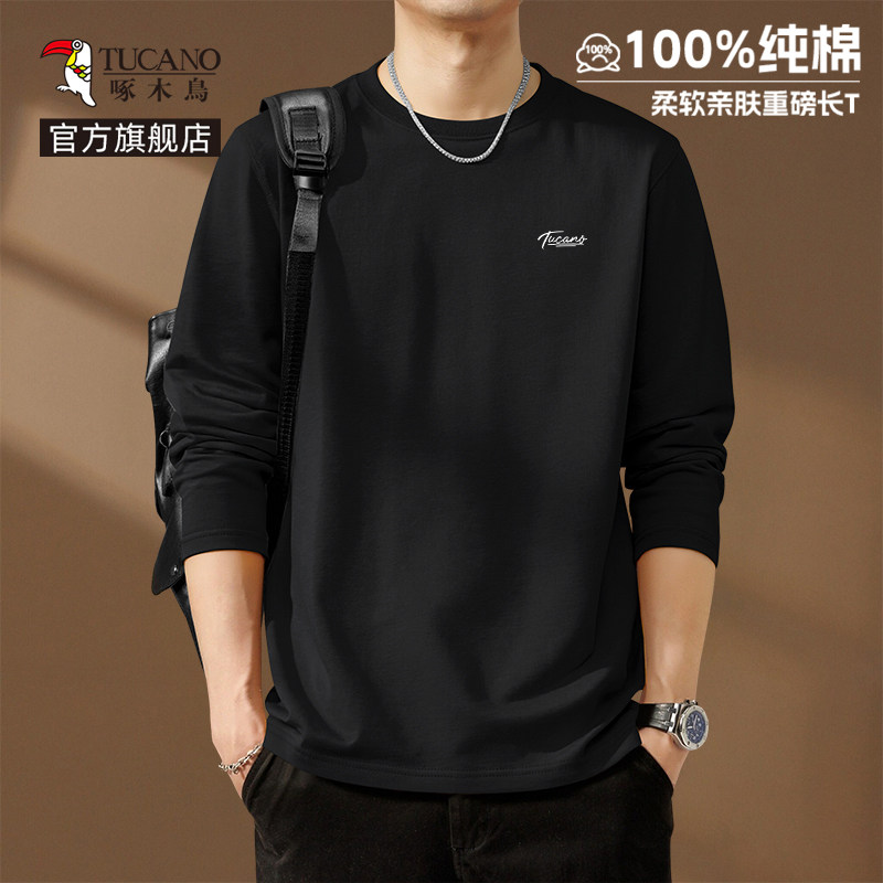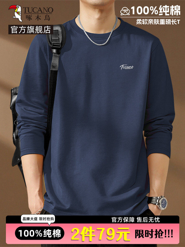 啄木鸟纯棉长袖t恤男款春季休闲百搭打底衫男士宽松大码圆领上衣Y