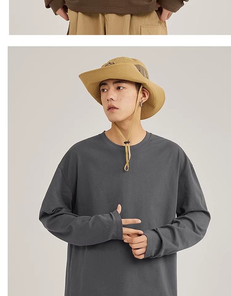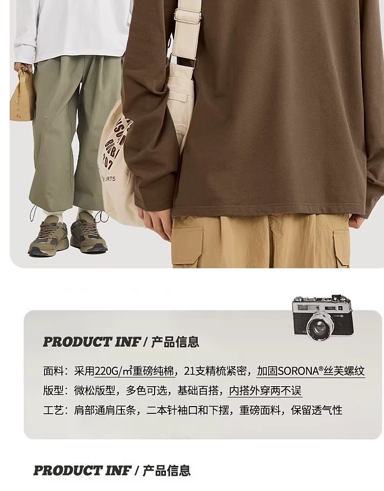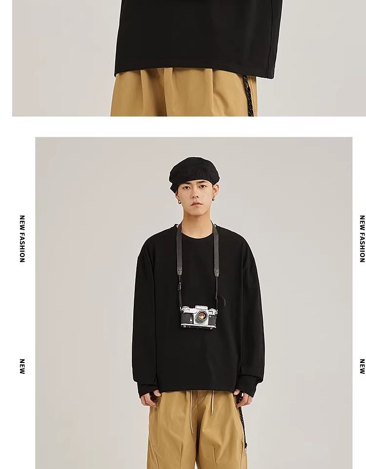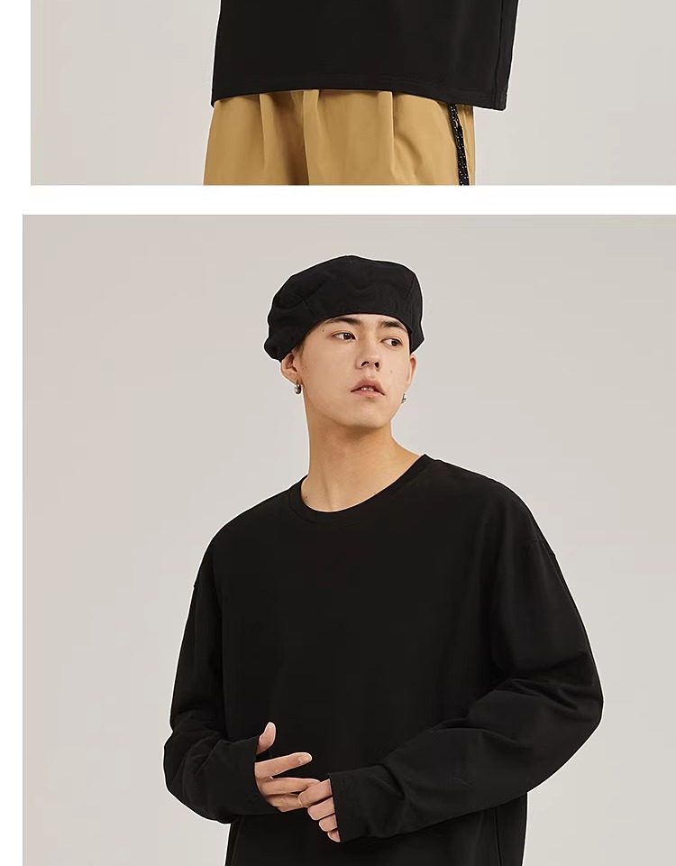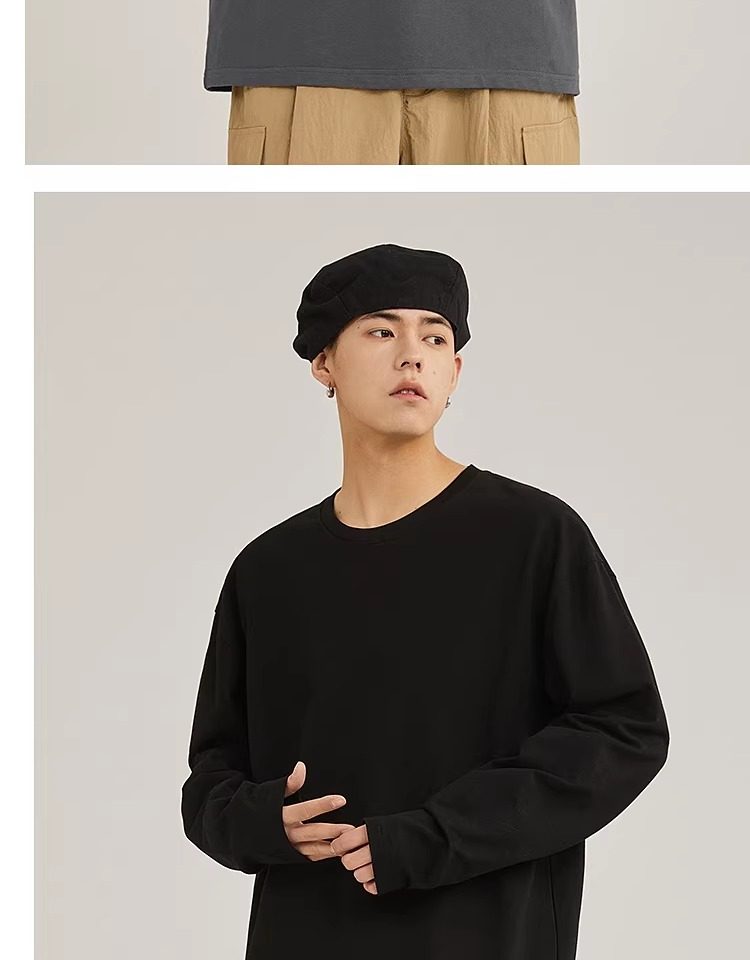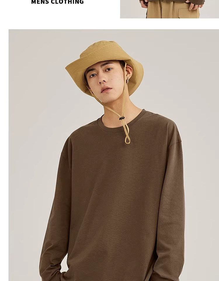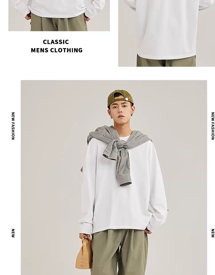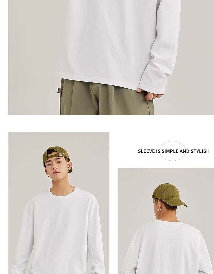 啄木鸟纯棉长袖t恤男款春季休闲百搭打底衫男士宽松大码圆领上衣Y