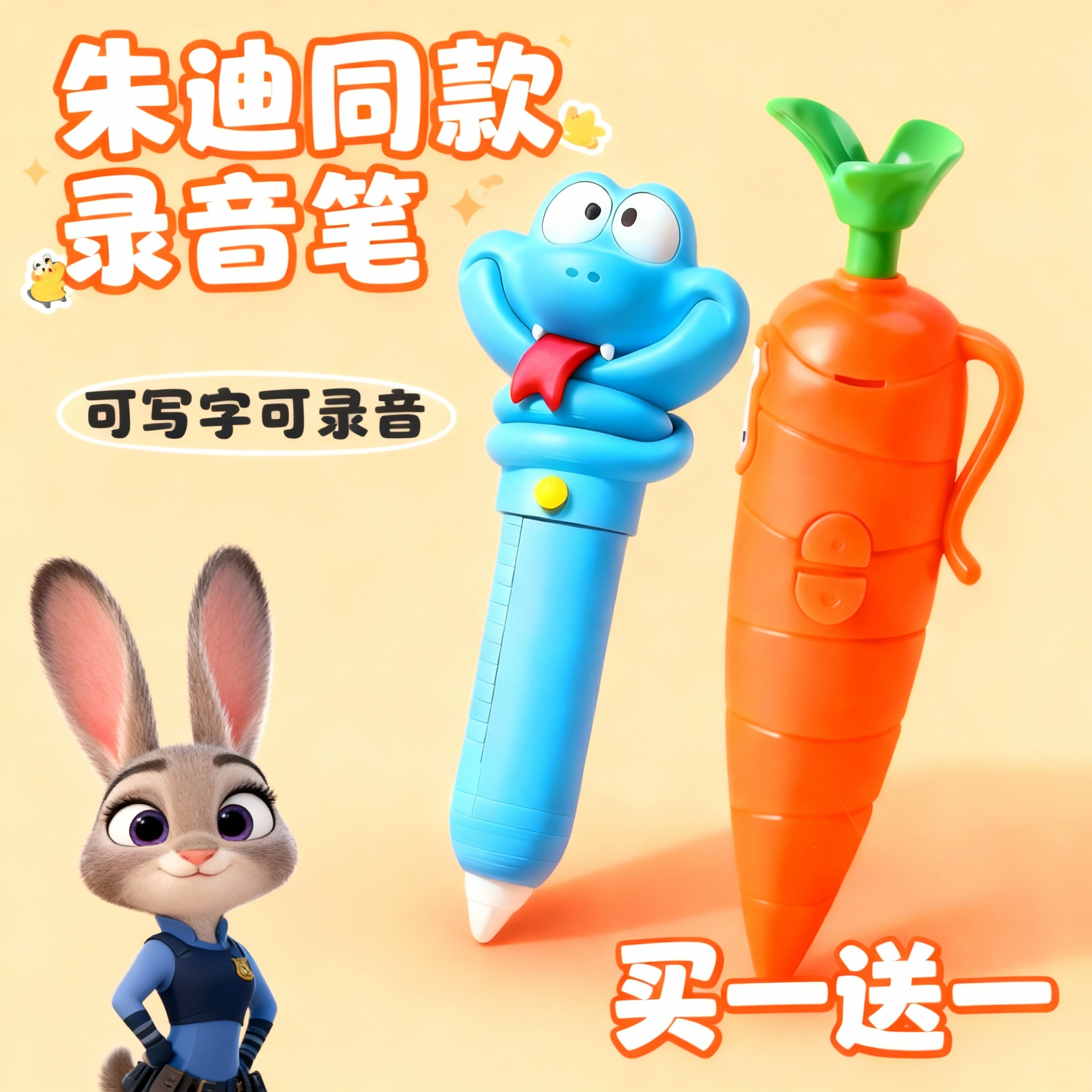 疯狂动物城朱迪胡萝卜录音笔可写字可录音盖瑞解毒笔儿童生日礼物