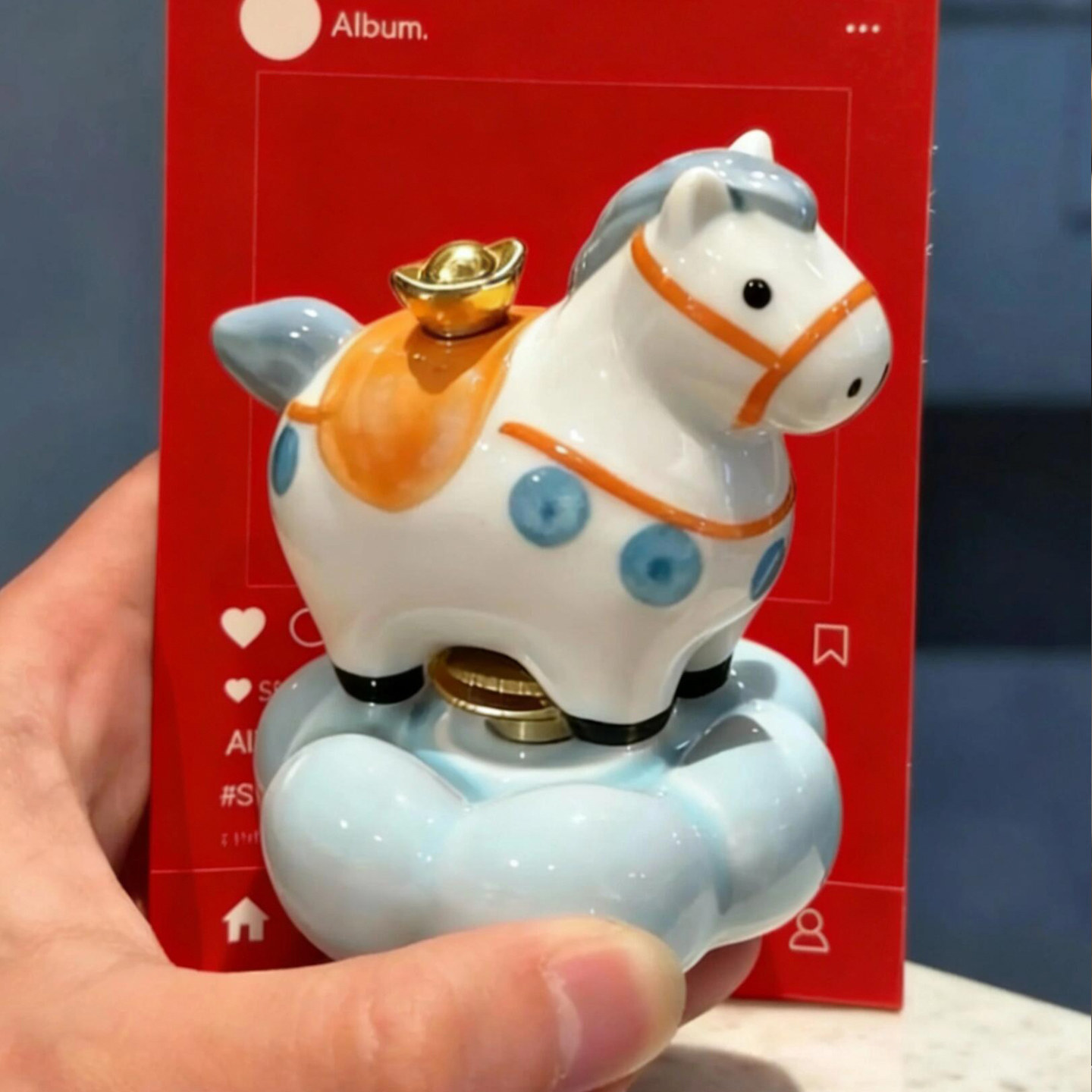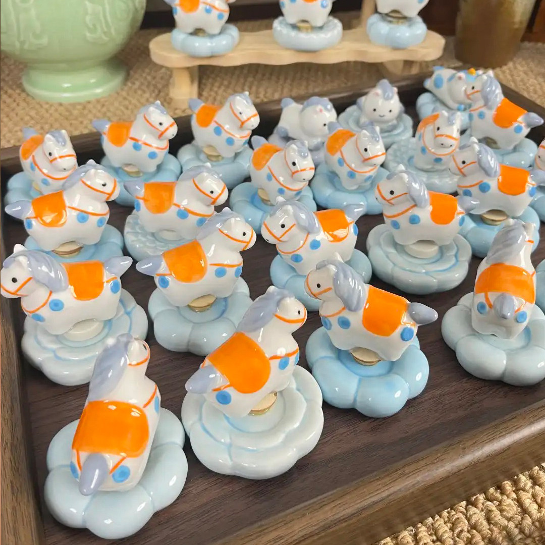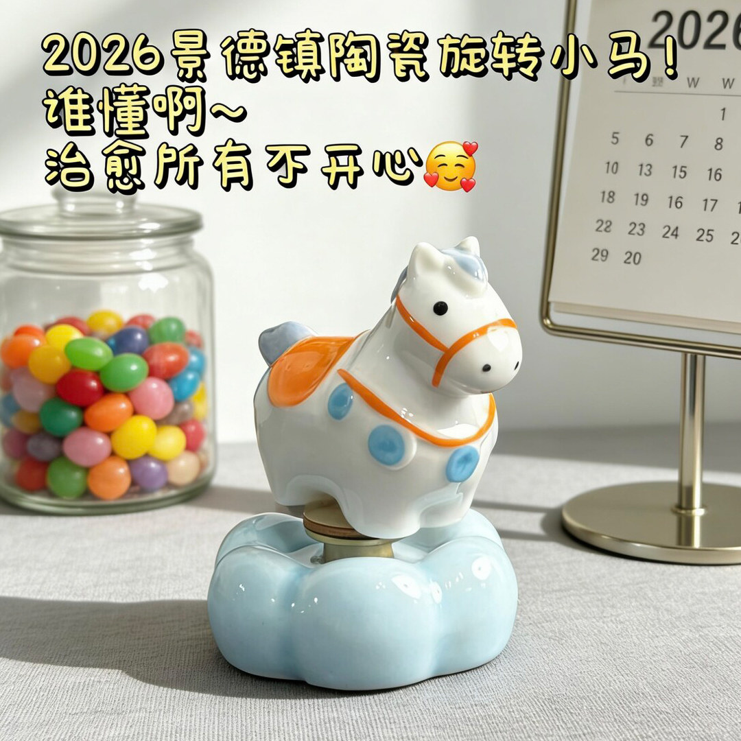 马年时来运转车内饰品摆件汽车装饰车载马上有钱景德镇转转乐车上