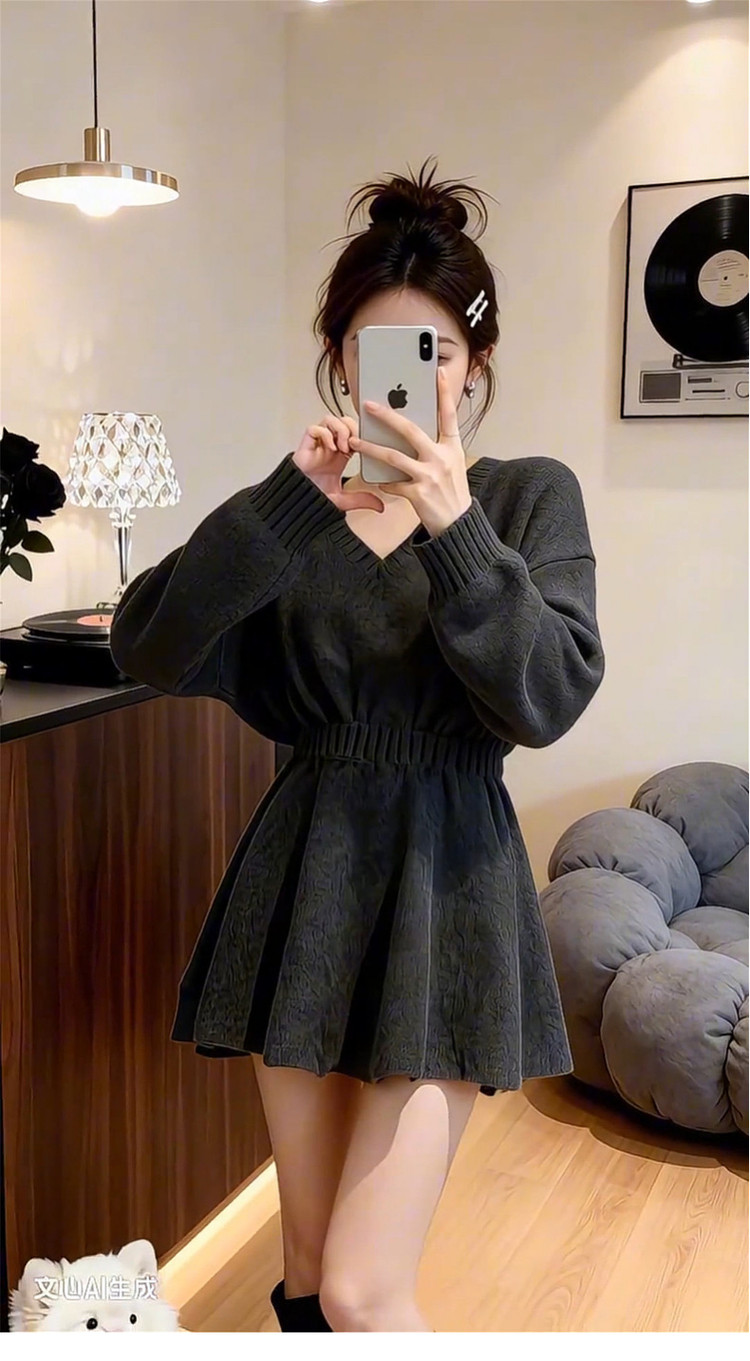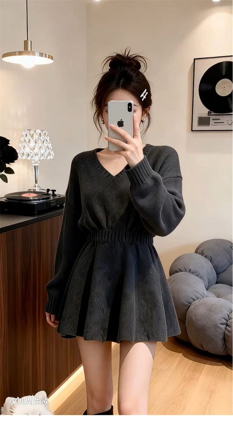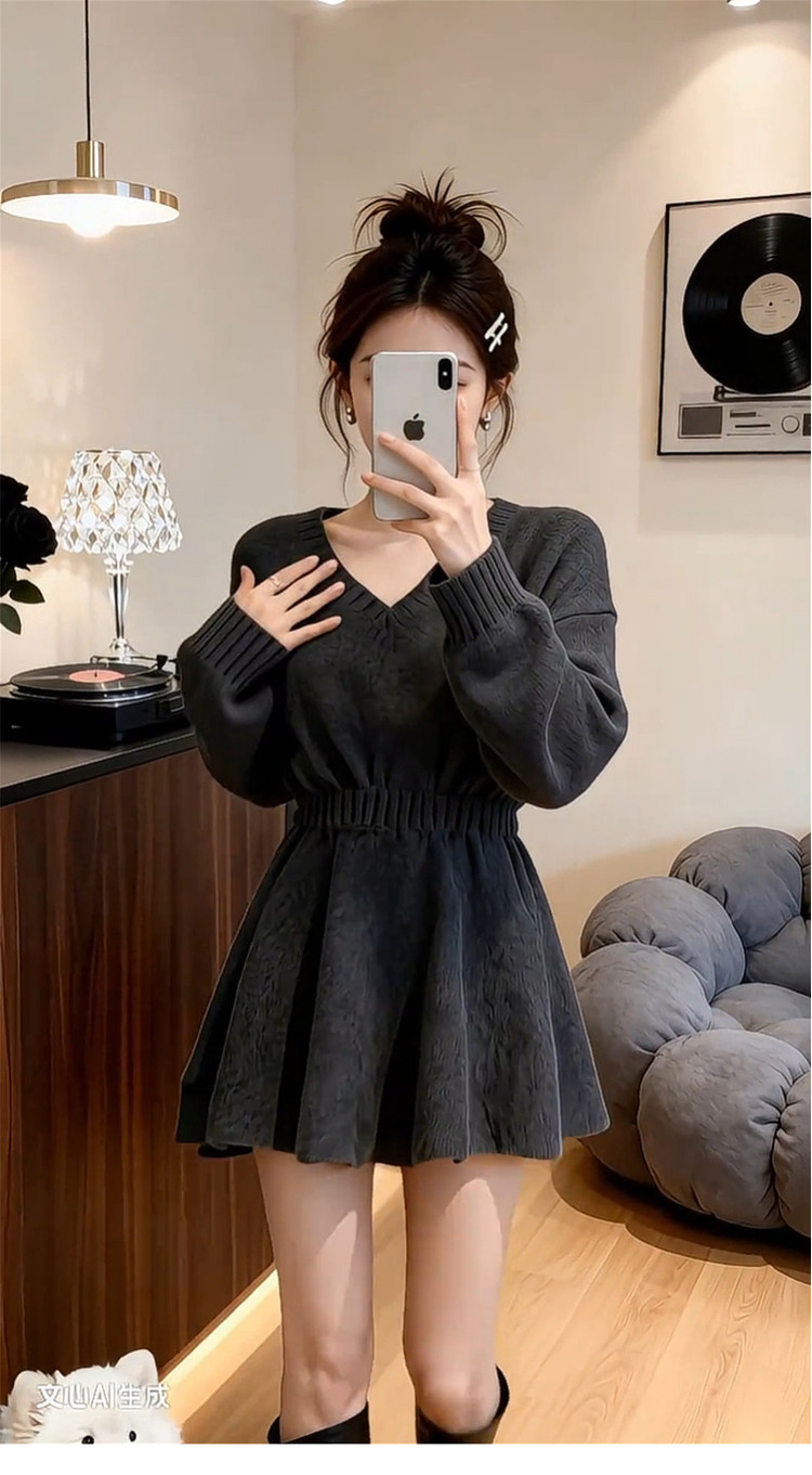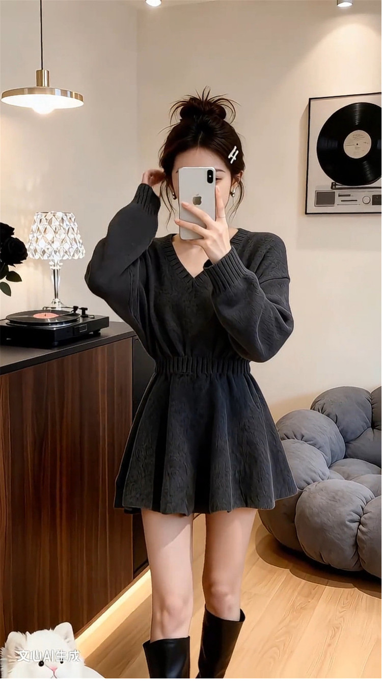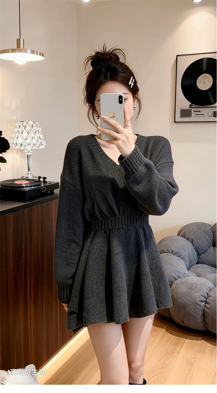 2026新款特别漂亮掐腰灰色针织连衣裙子女秋冬季新年穿搭内搭短裙