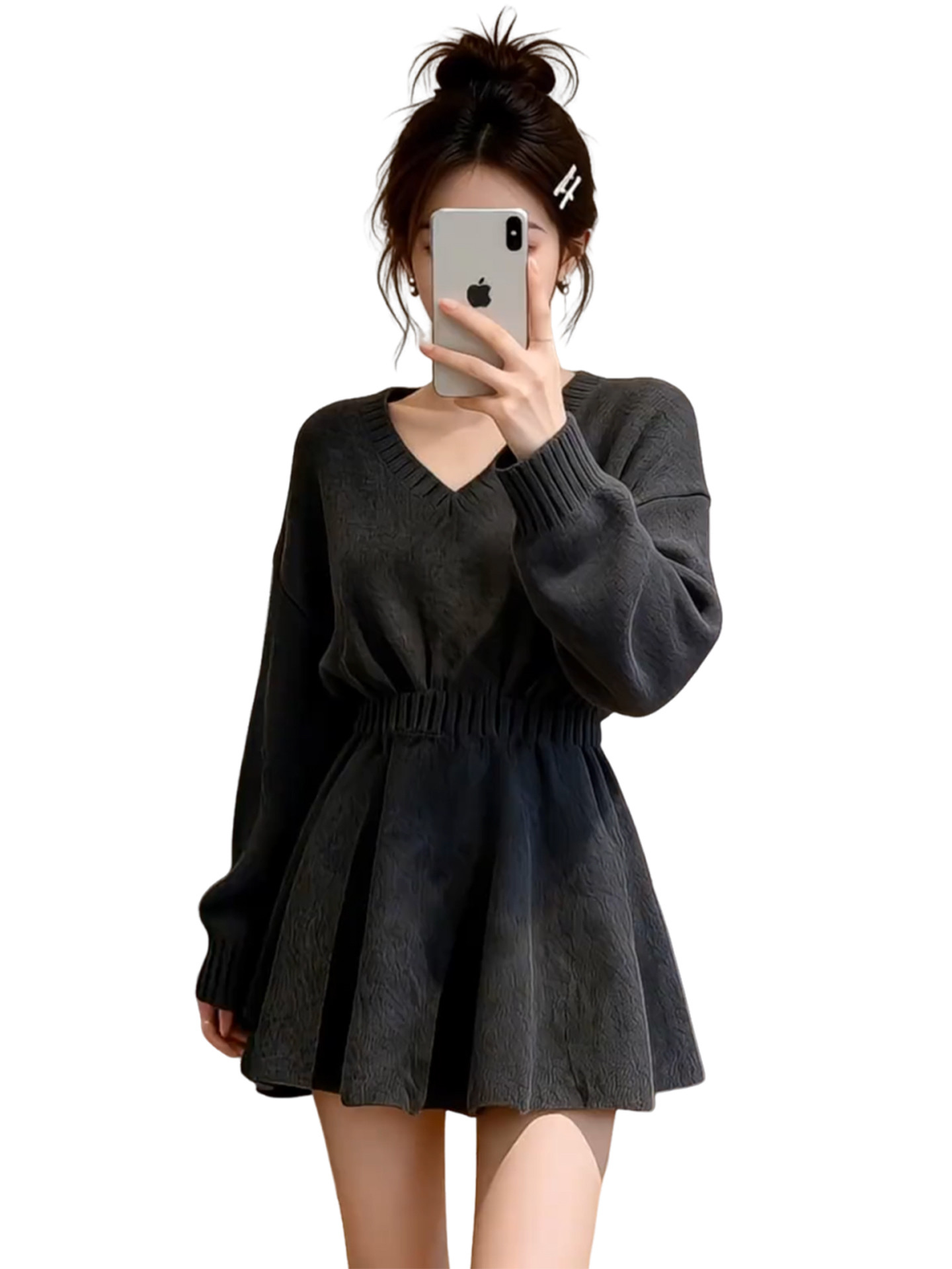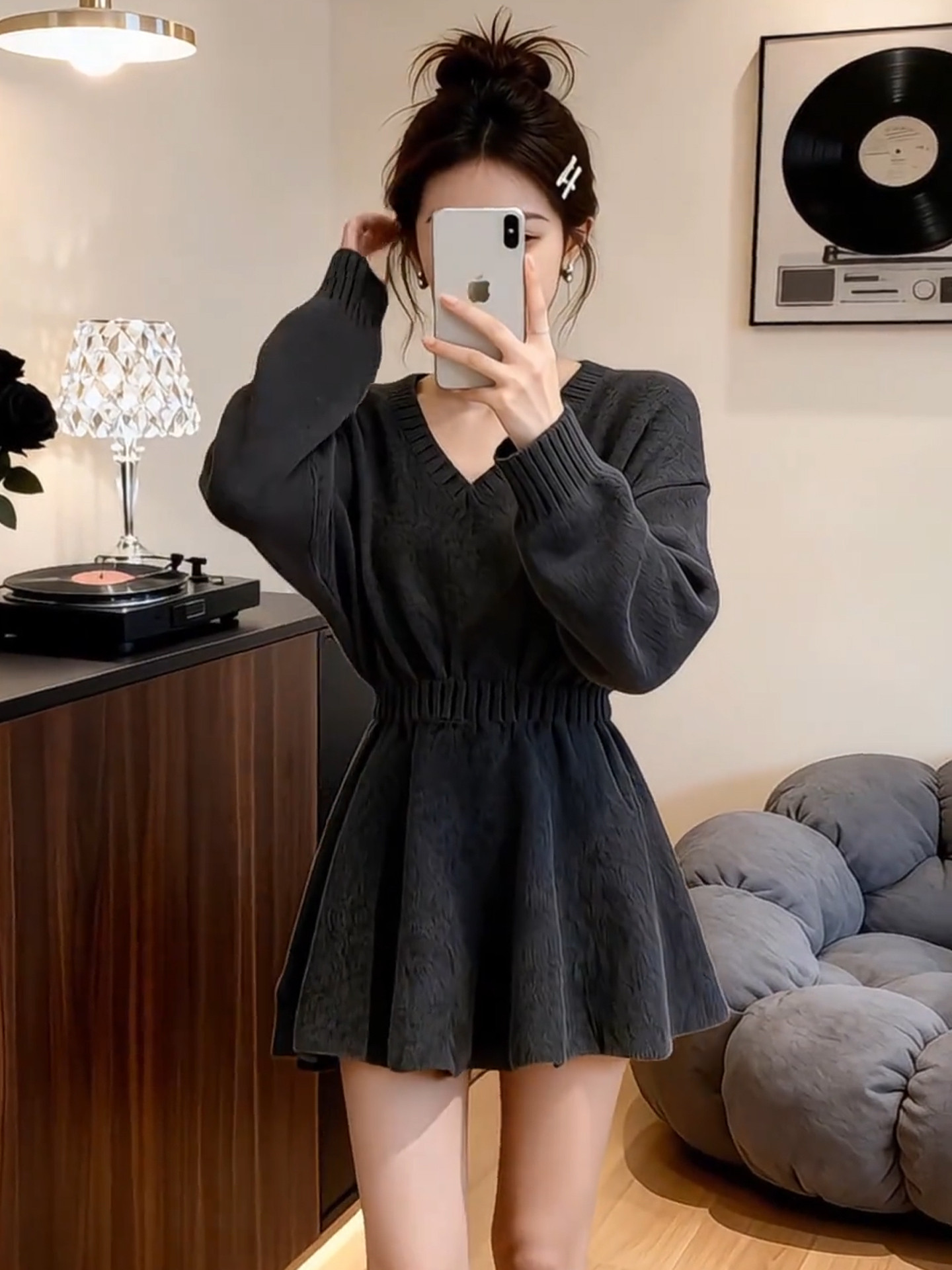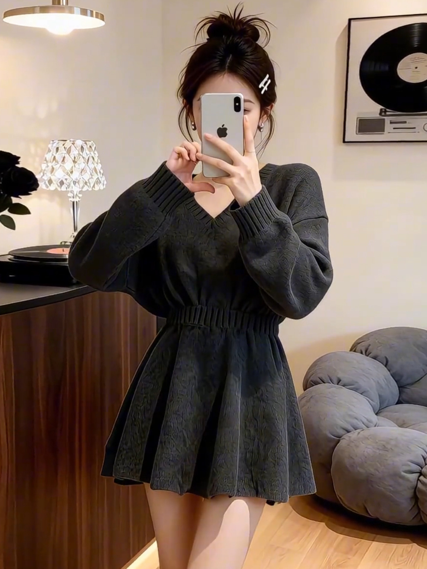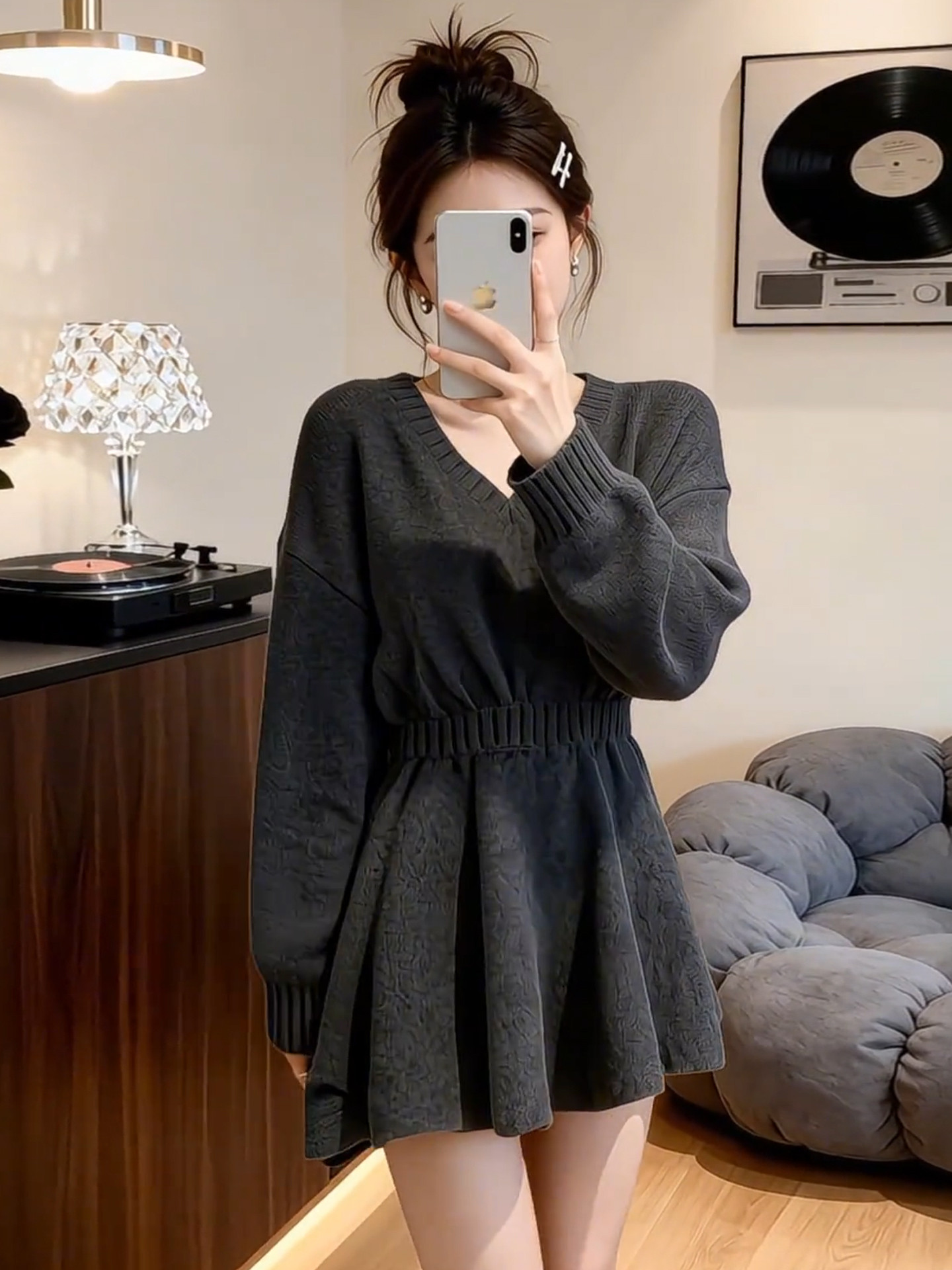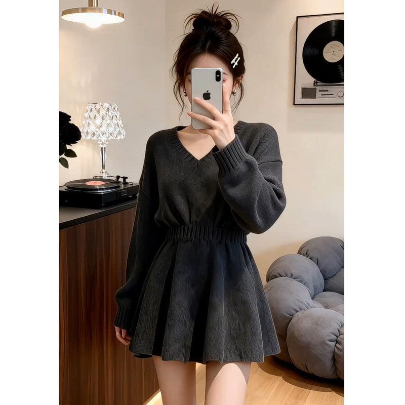 2026新款特别漂亮掐腰灰色针织连衣裙子女秋冬季新年穿搭内搭短裙