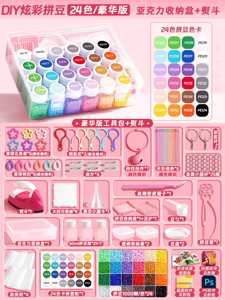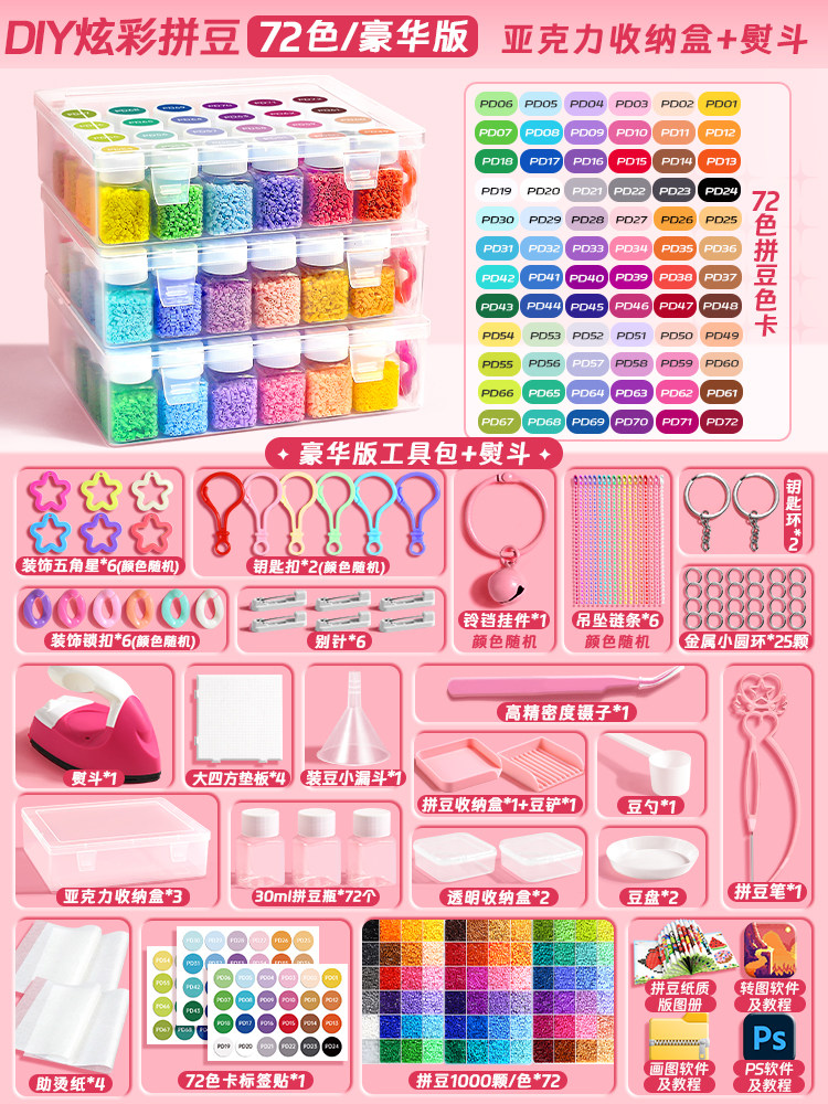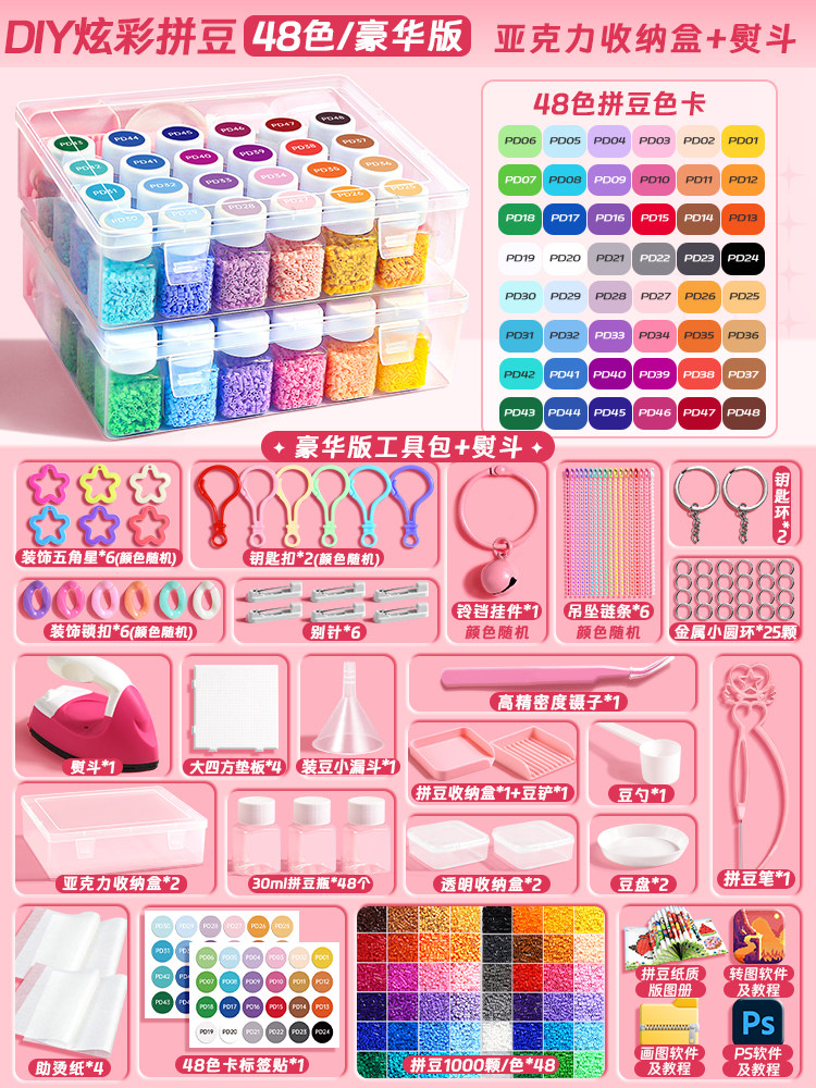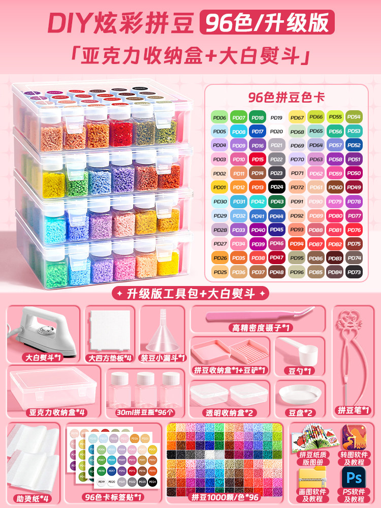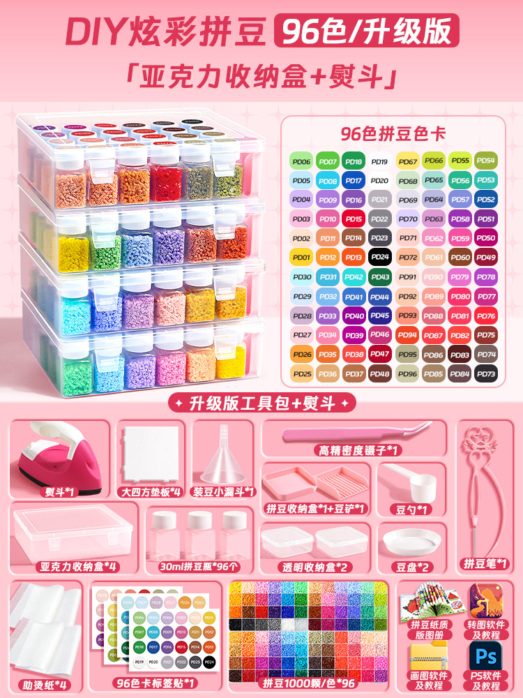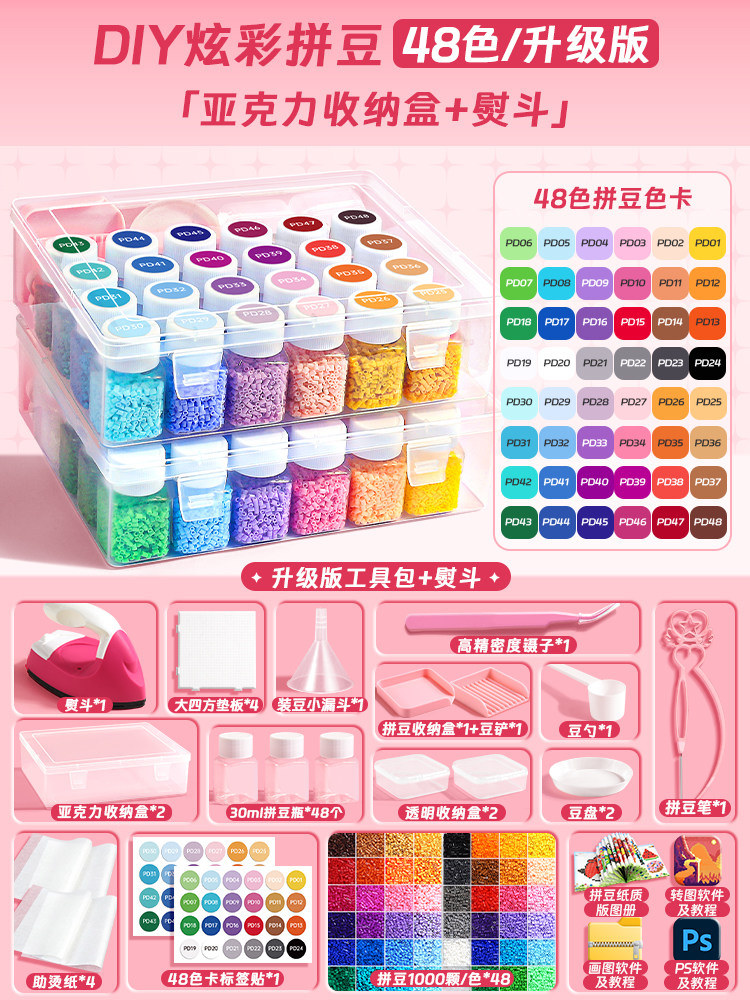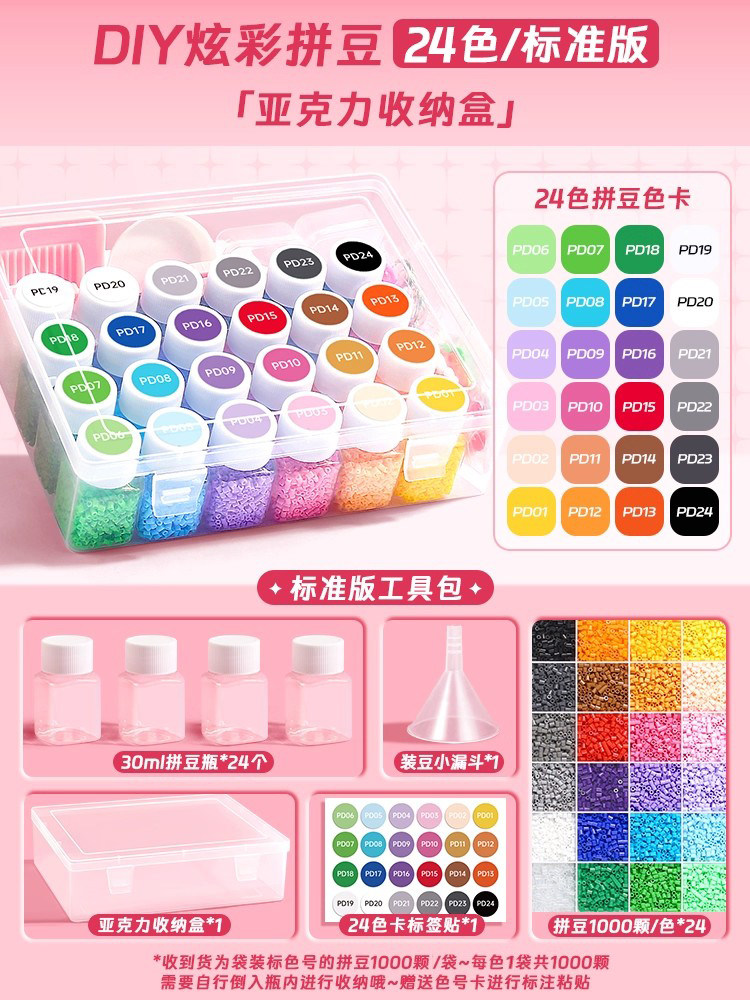 瓶装拼豆手工diy材料包全套儿童融合豆工具套装熨烫纸补充包玩具5