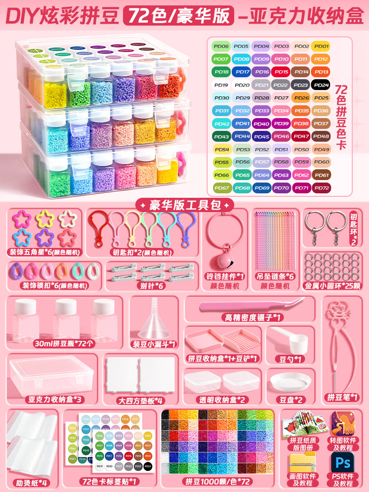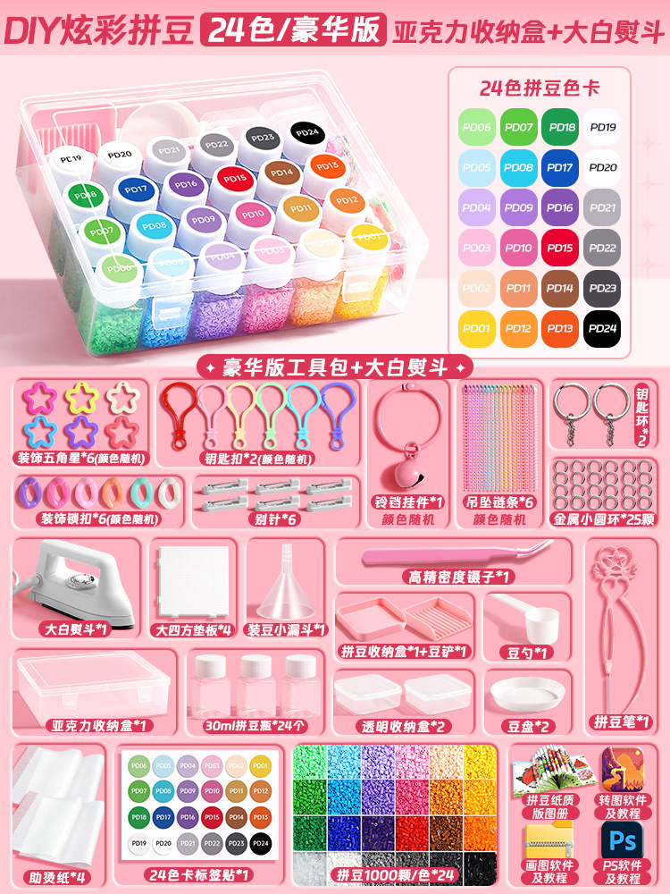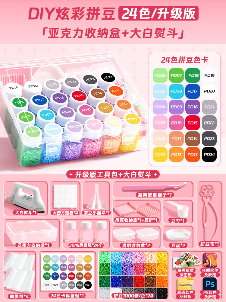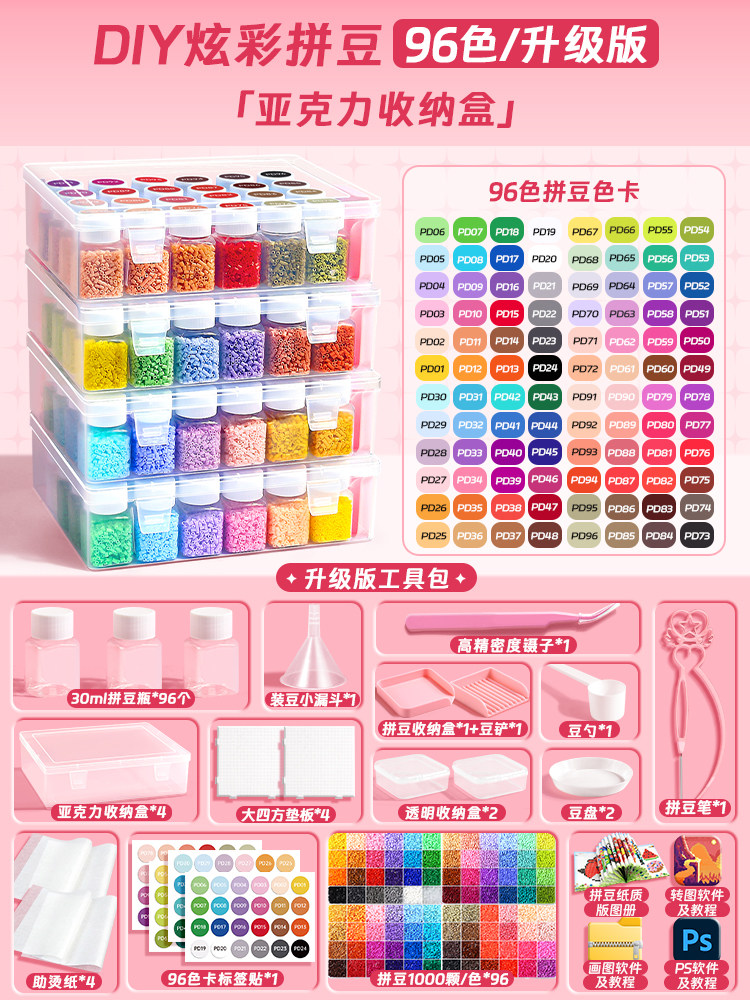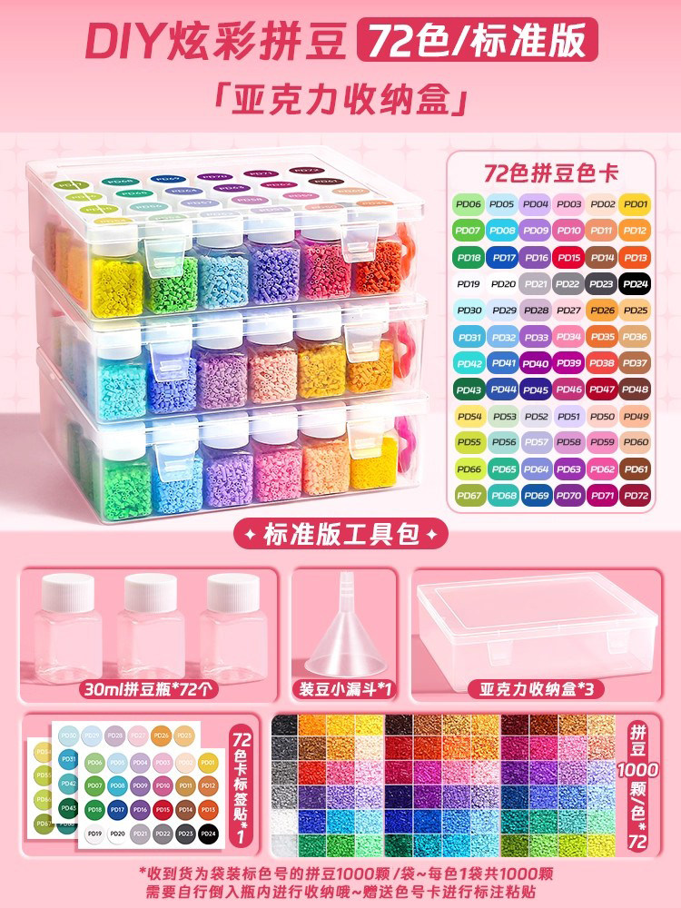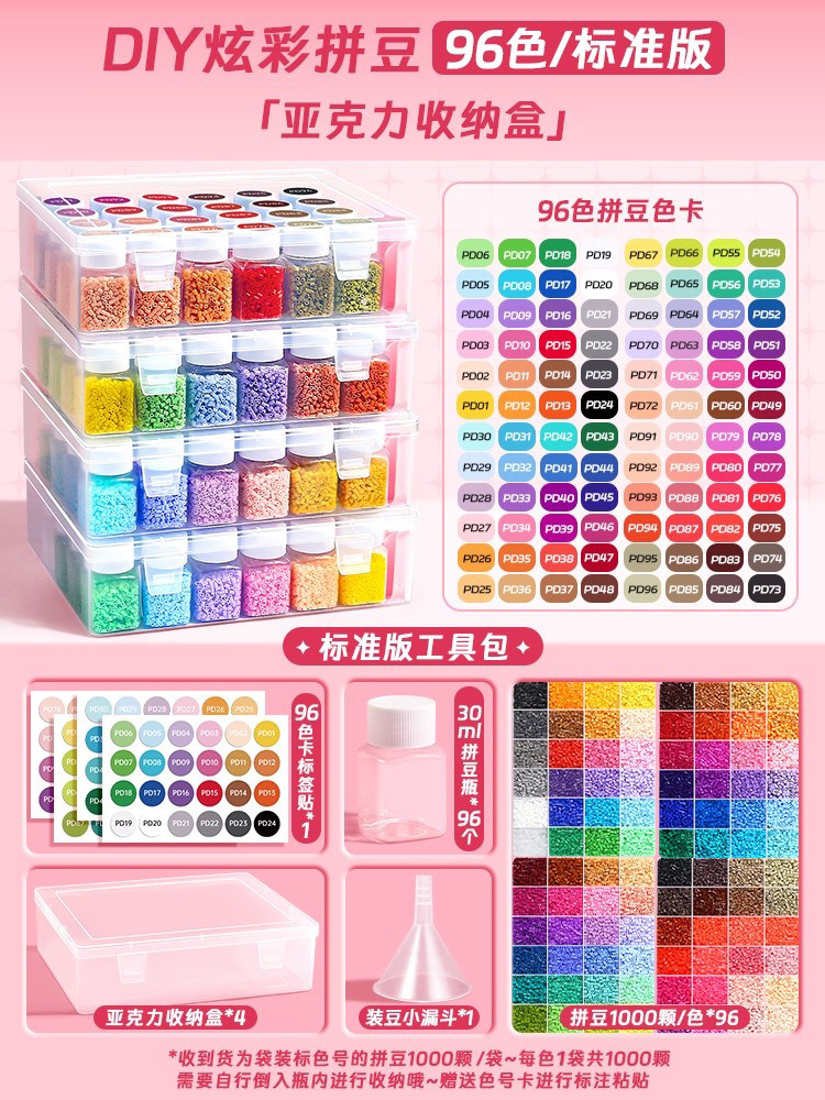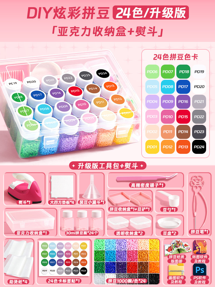 瓶装拼豆手工diy材料包全套儿童融合豆工具套装熨烫纸补充包玩具5