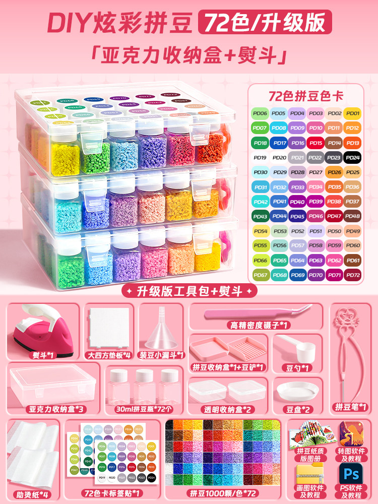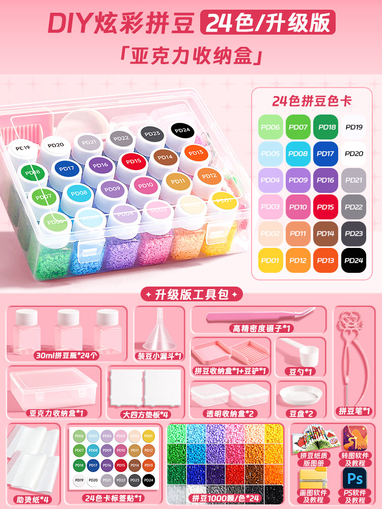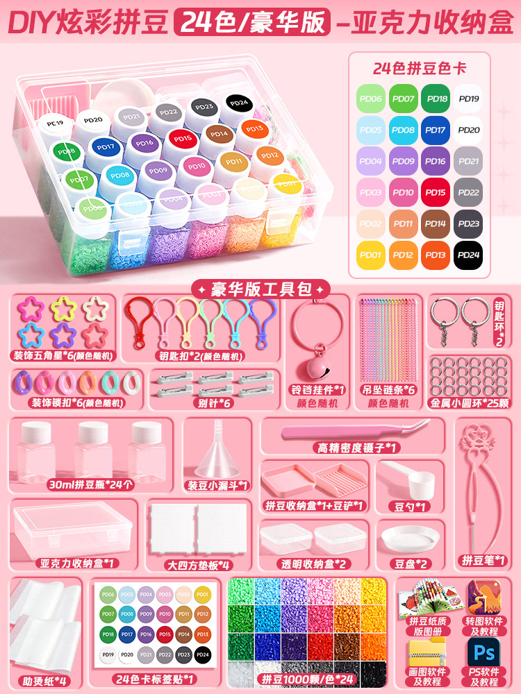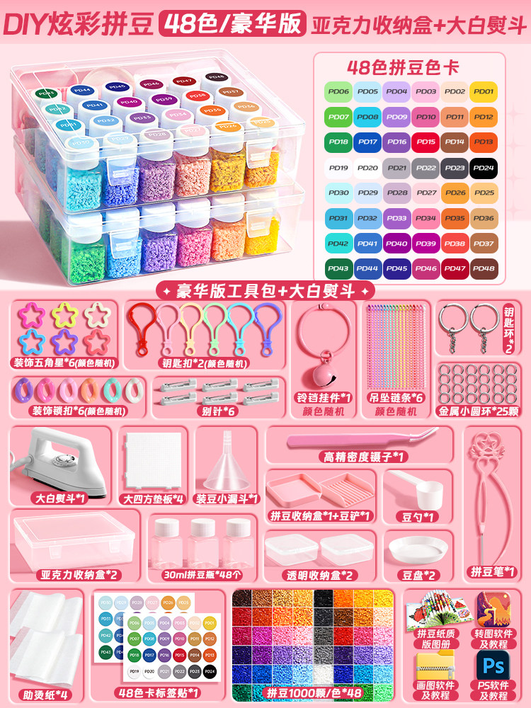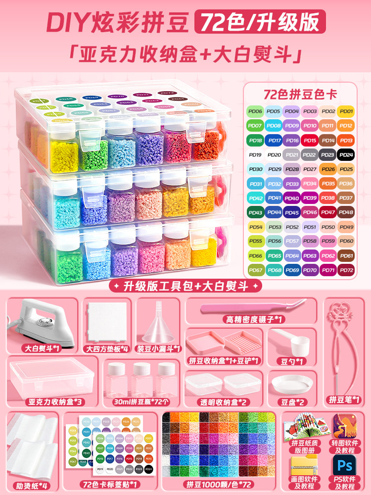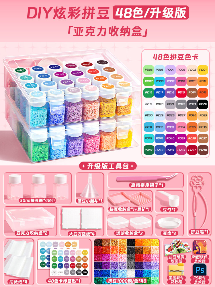 瓶装拼豆手工diy材料包全套儿童融合豆工具套装熨烫纸补充包玩具5