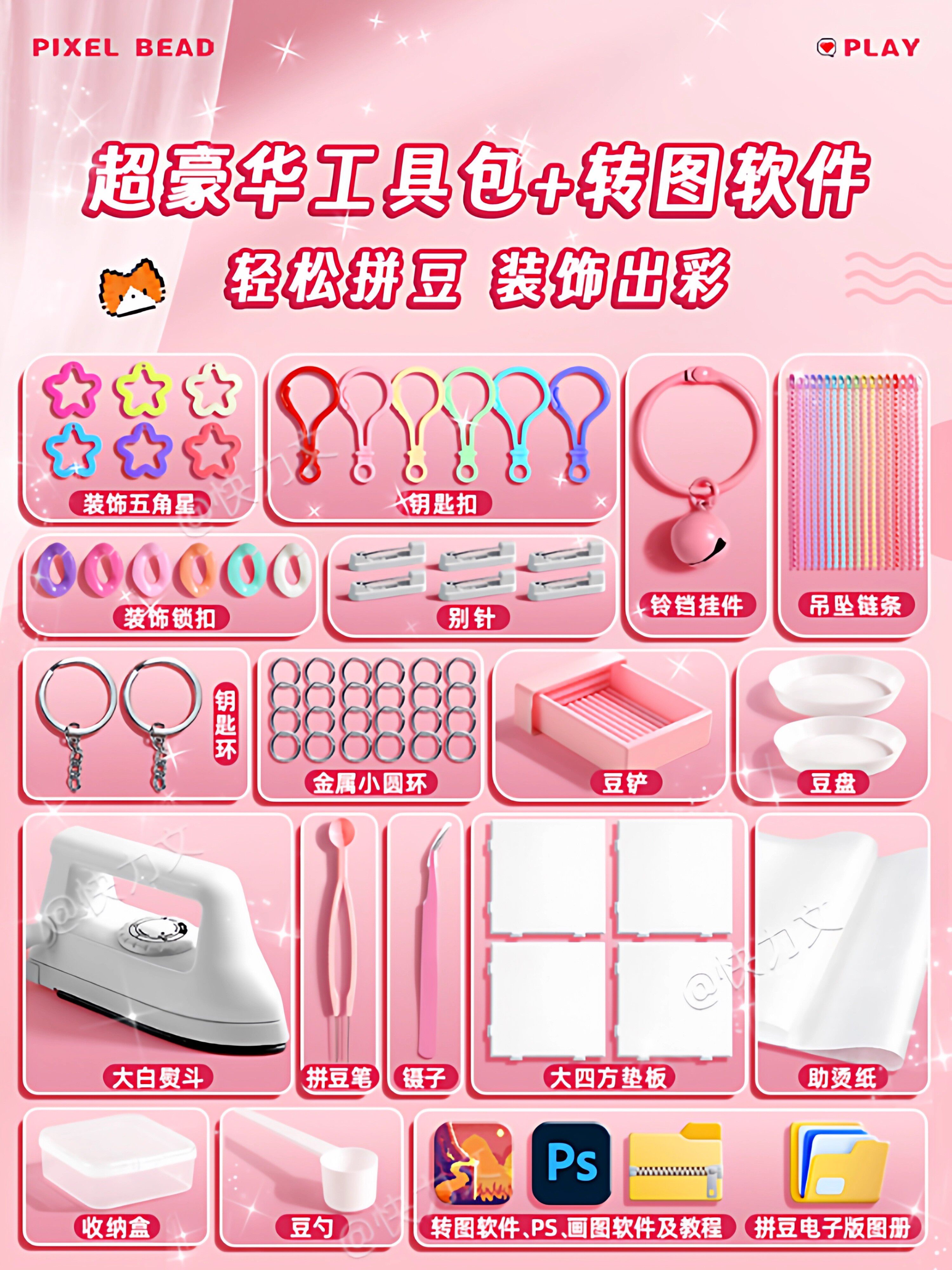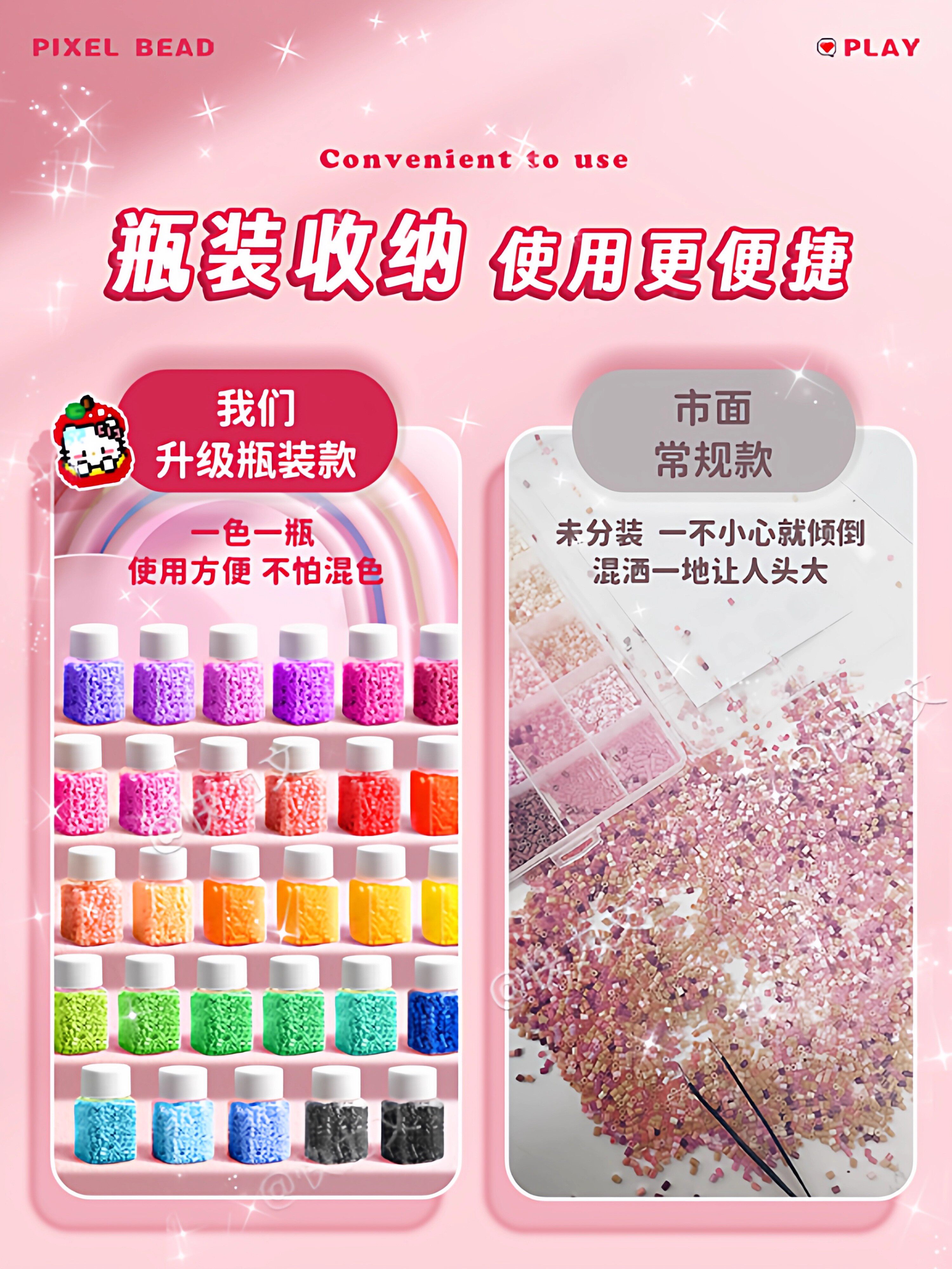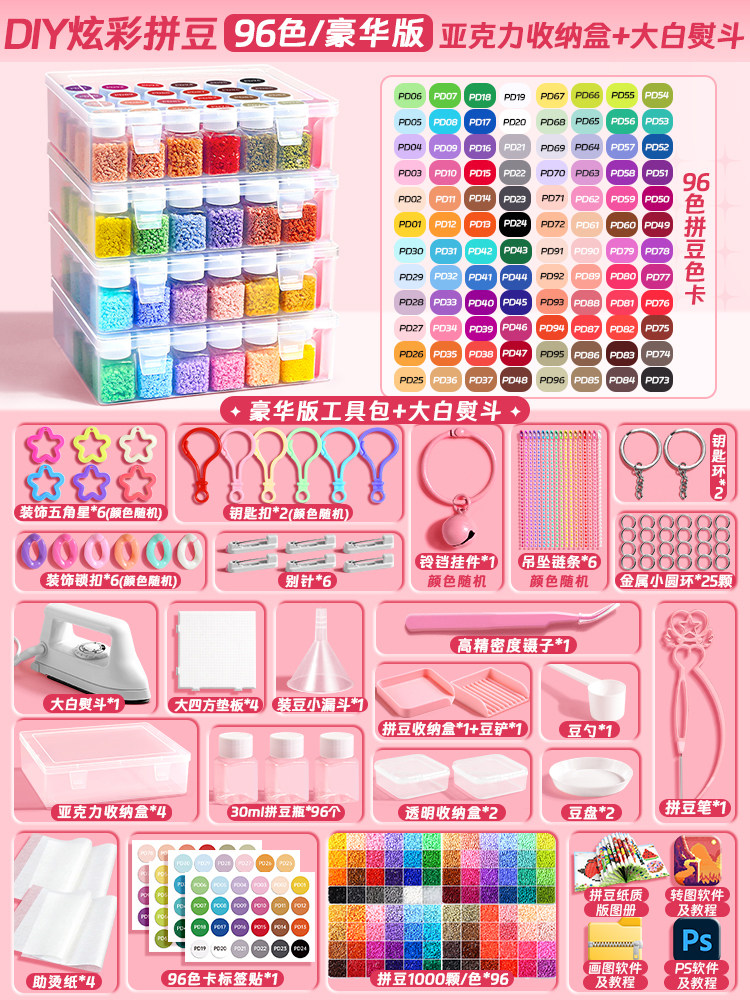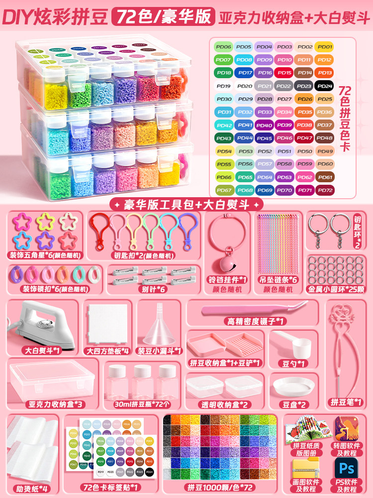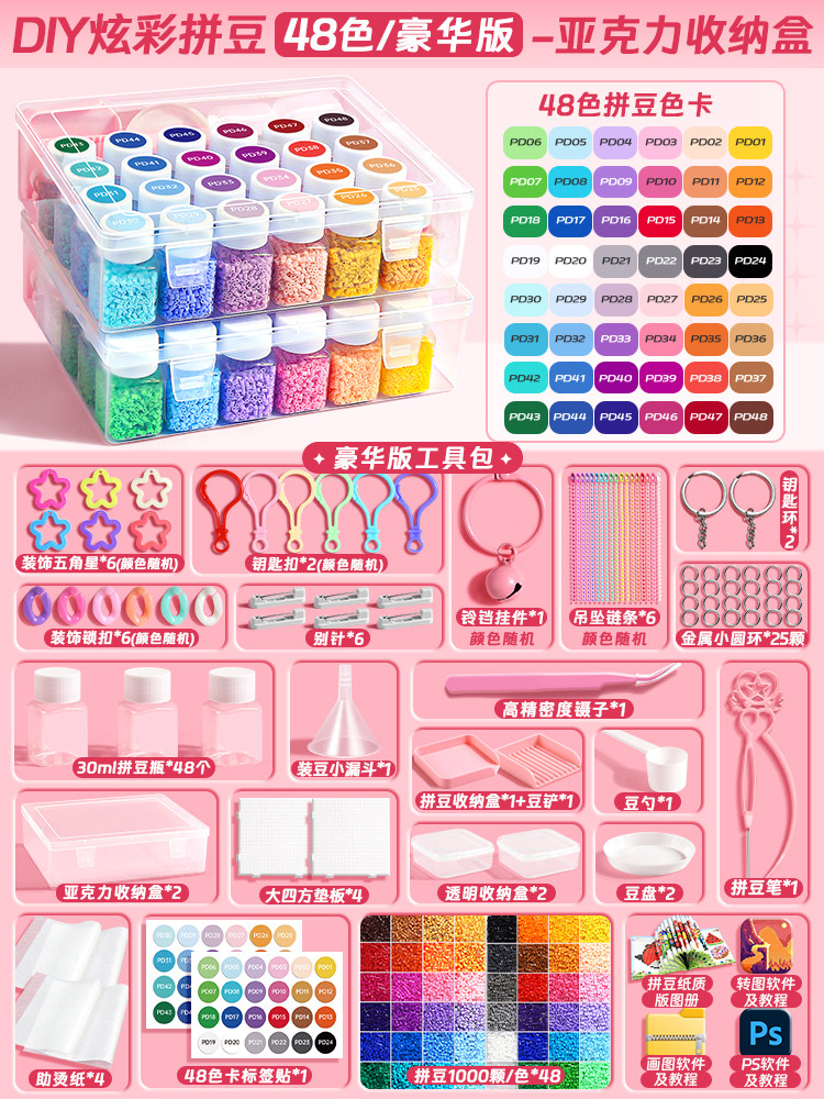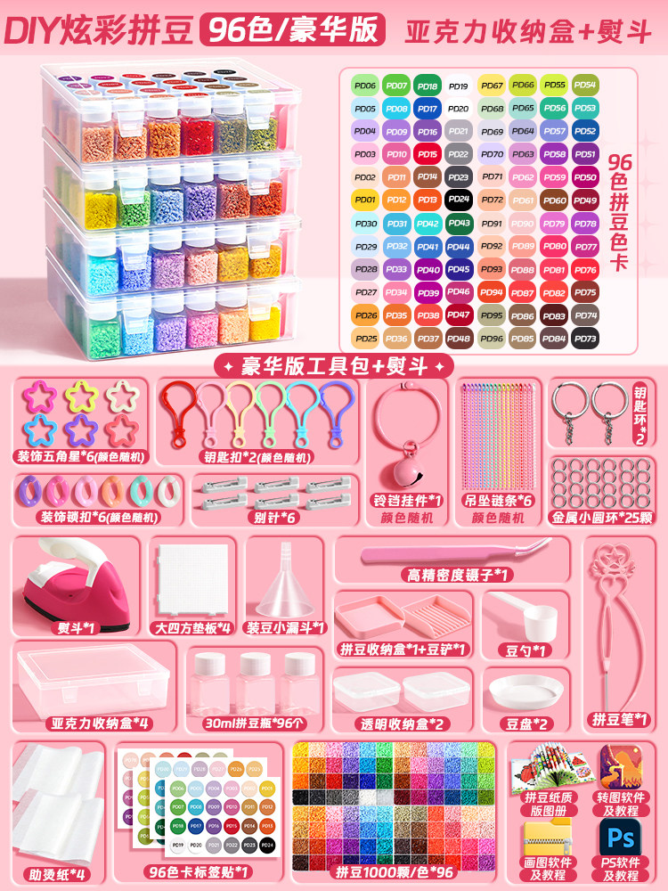 瓶装拼豆手工diy材料包全套儿童融合豆工具套装熨烫纸补充包玩具5