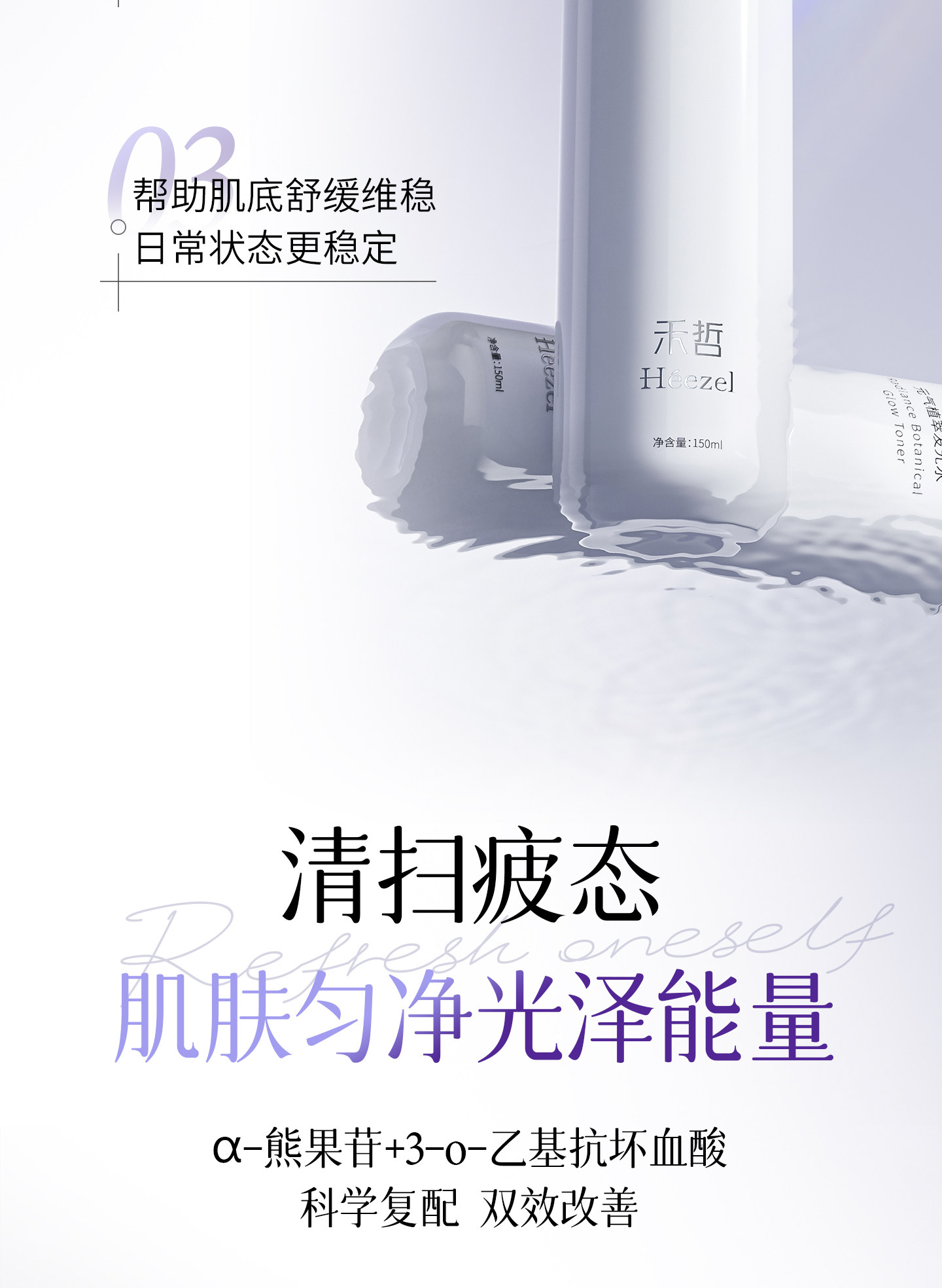 【Heezel禾哲】元气植萃发光水α-熊果苷精粹水保湿提亮肤色湿敷