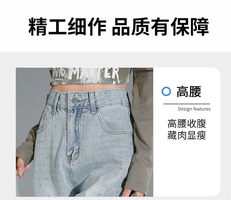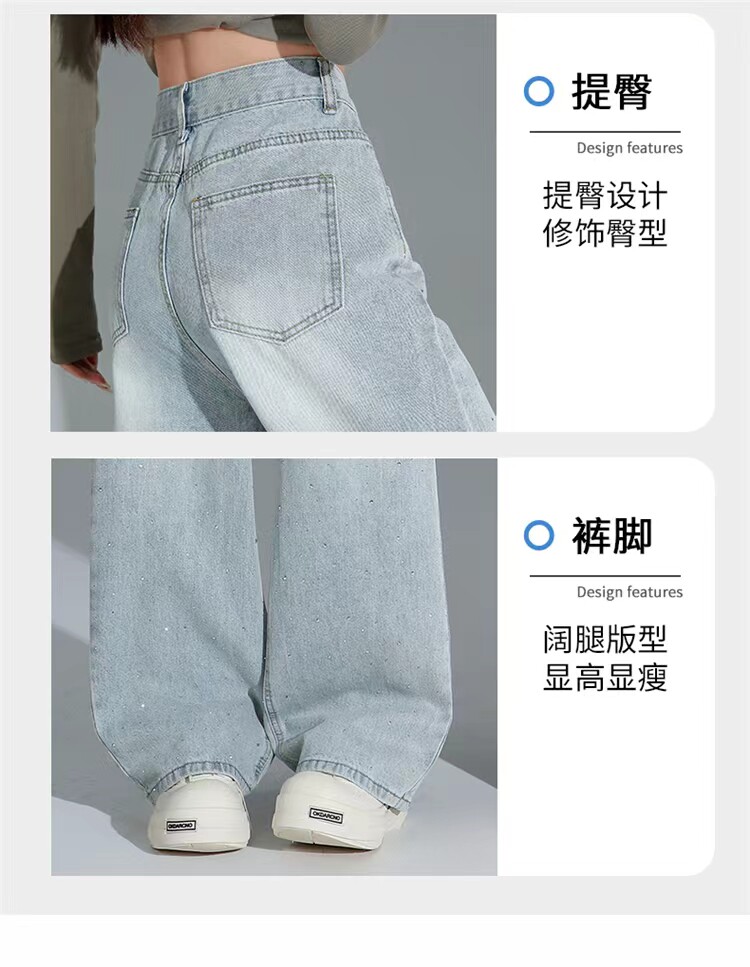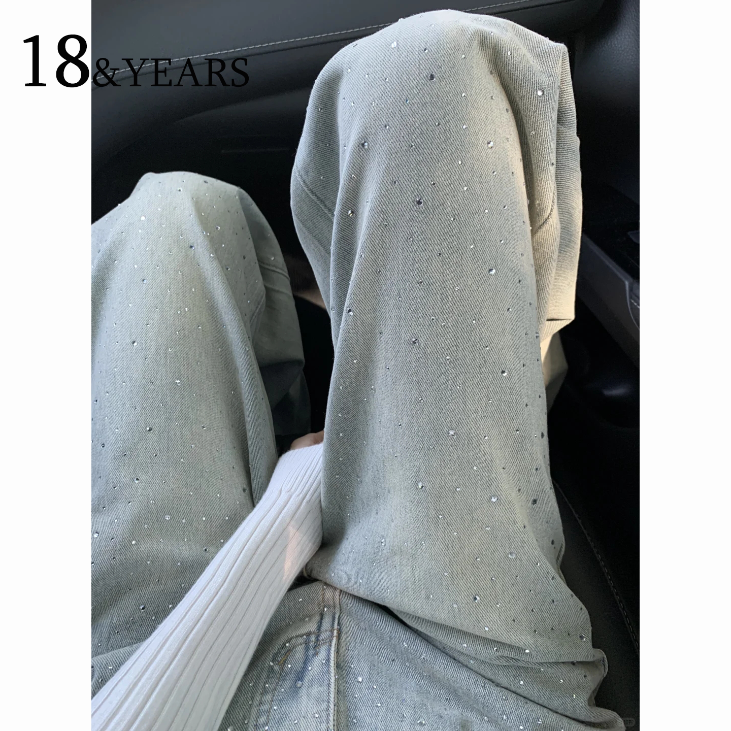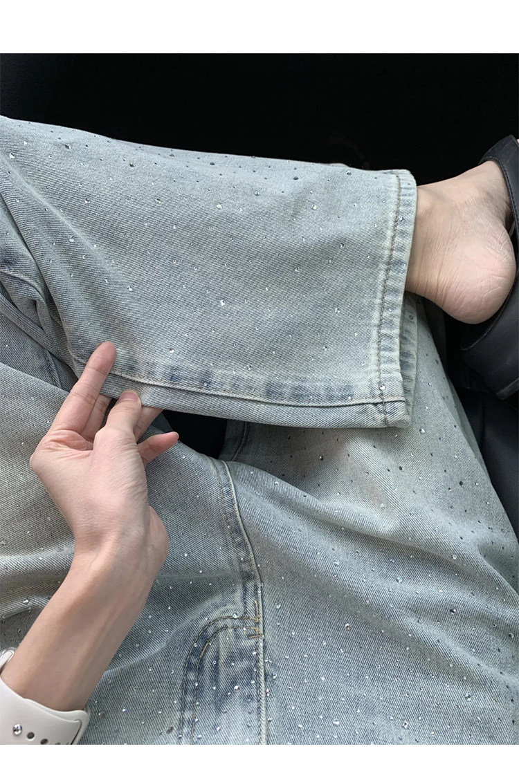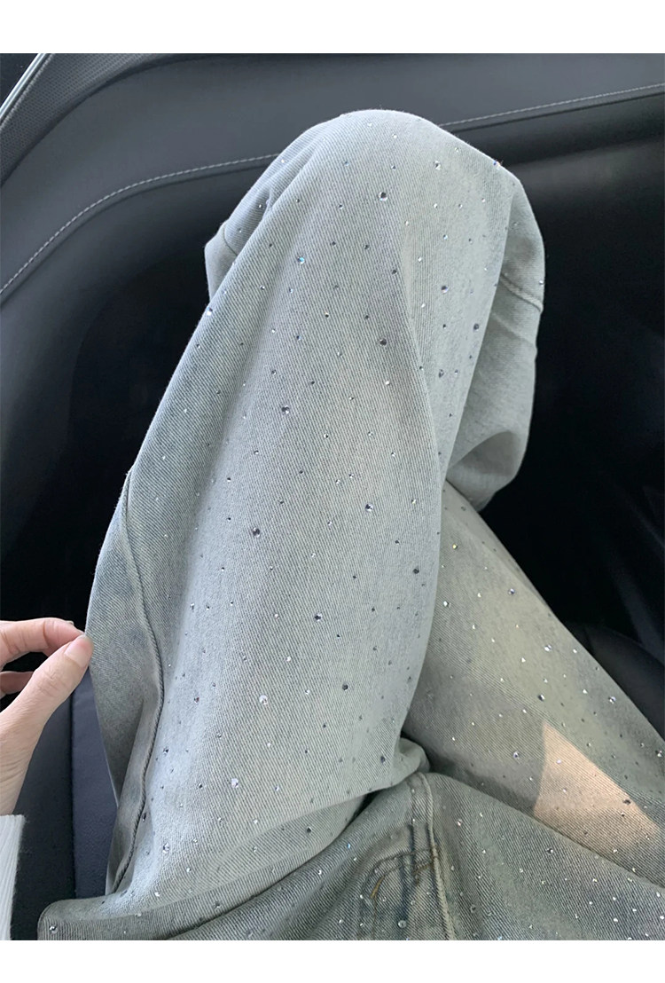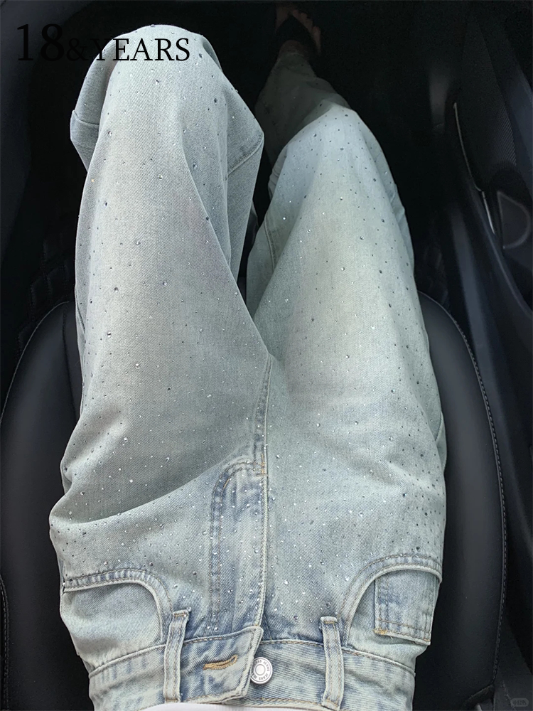 满天星带烫钻阔腿牛仔裤女2026春季新款高腰显瘦爆闪宽松直筒裤子