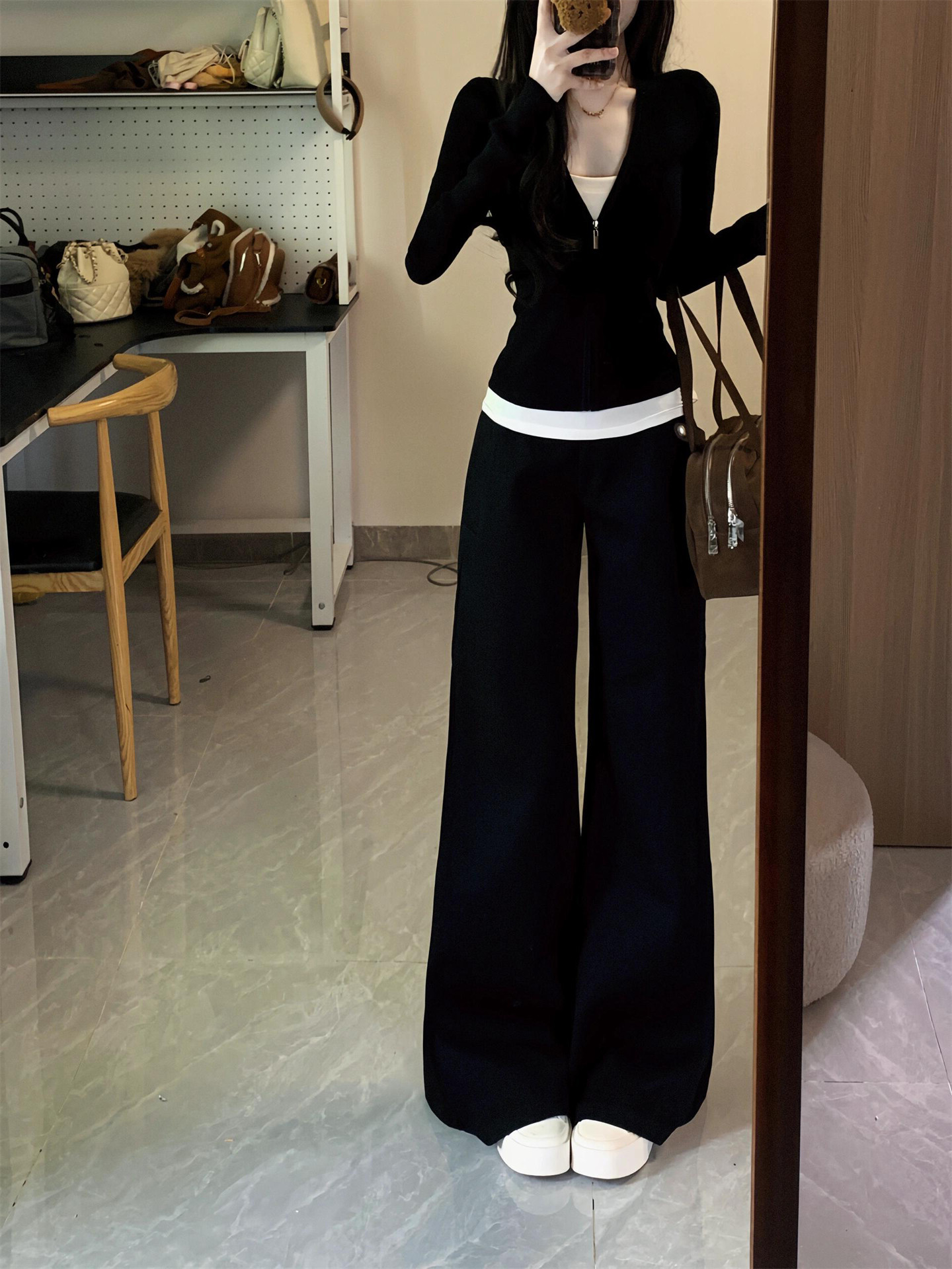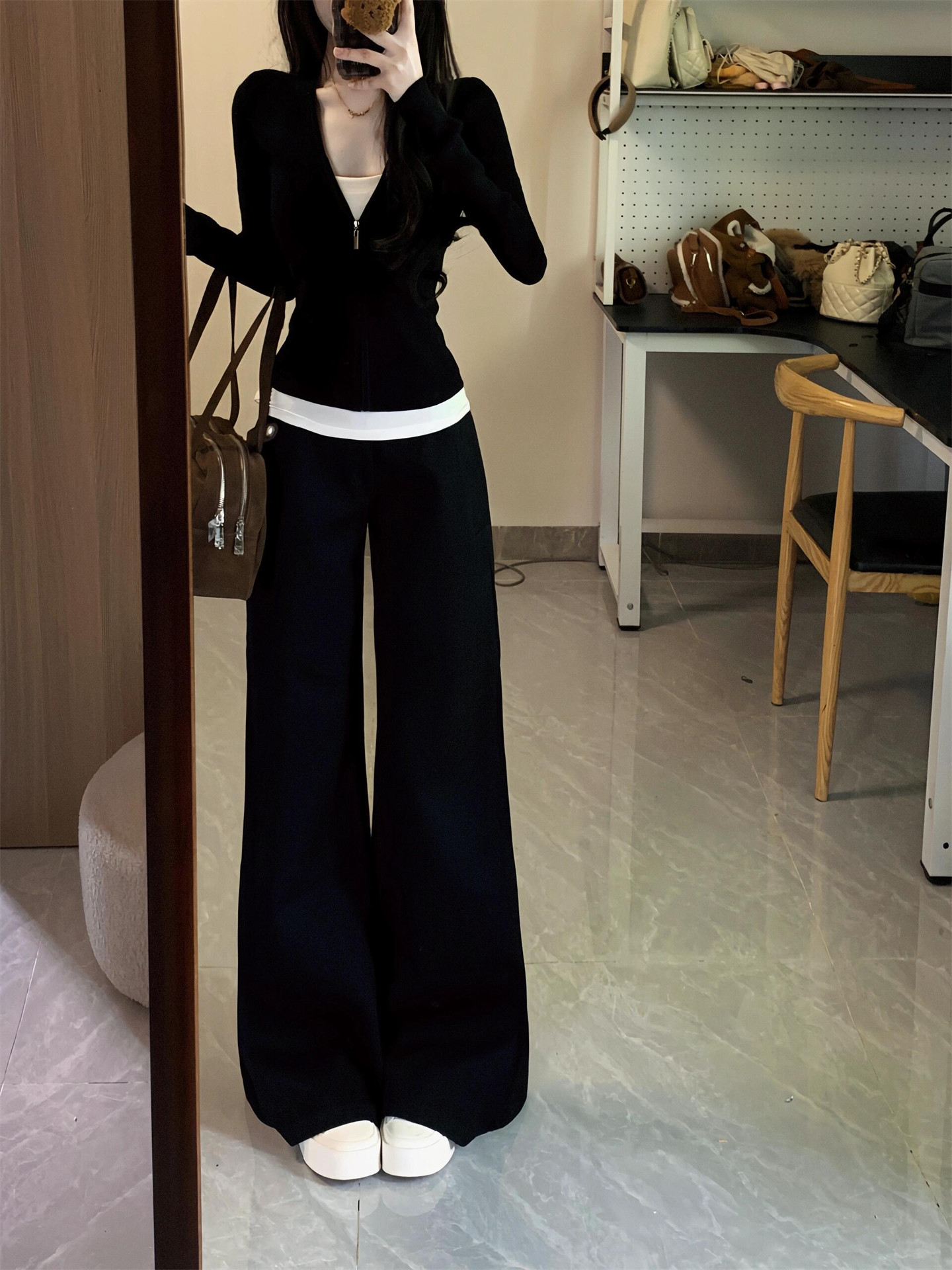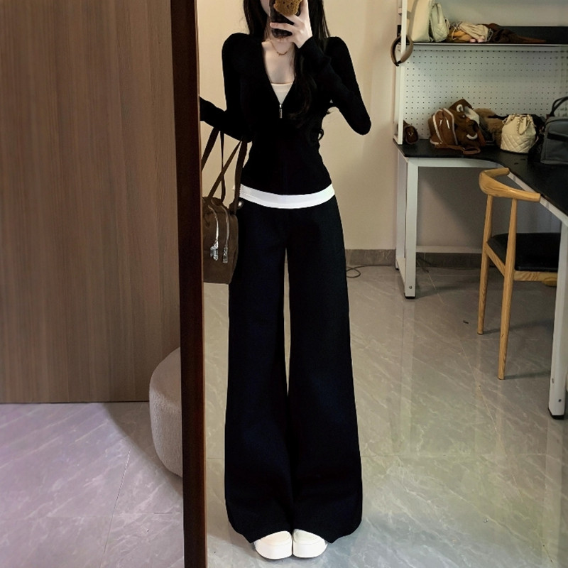 假两件长袖卫衣运动套装女春秋时尚韩版显瘦宽松阔腿裤休闲两件套