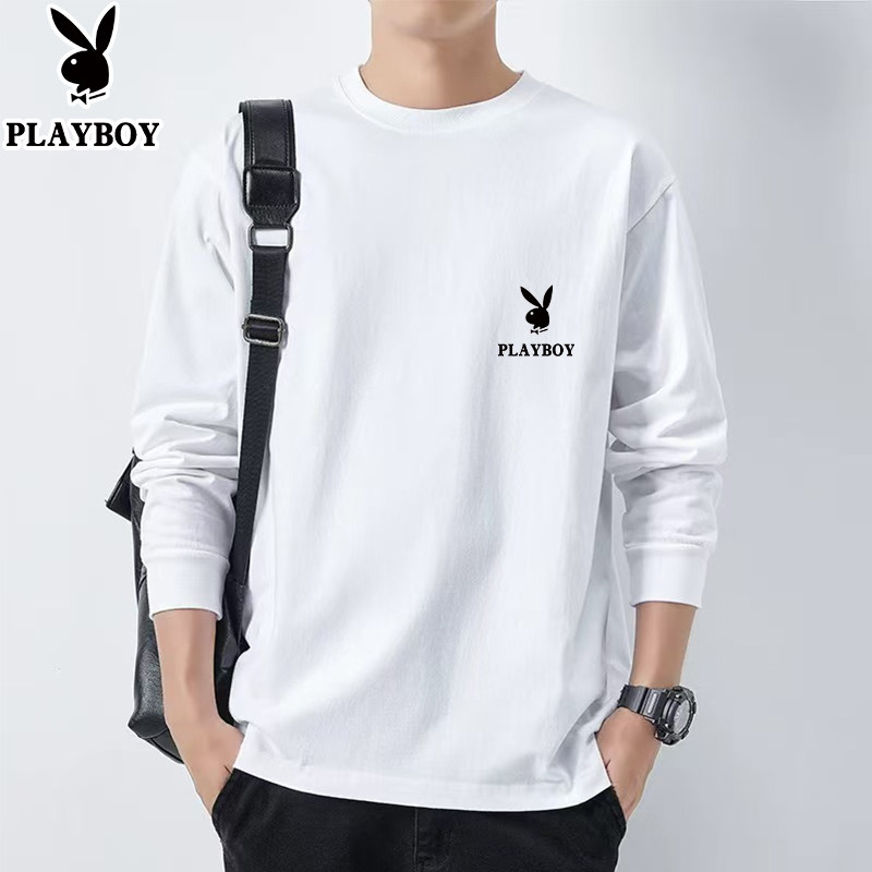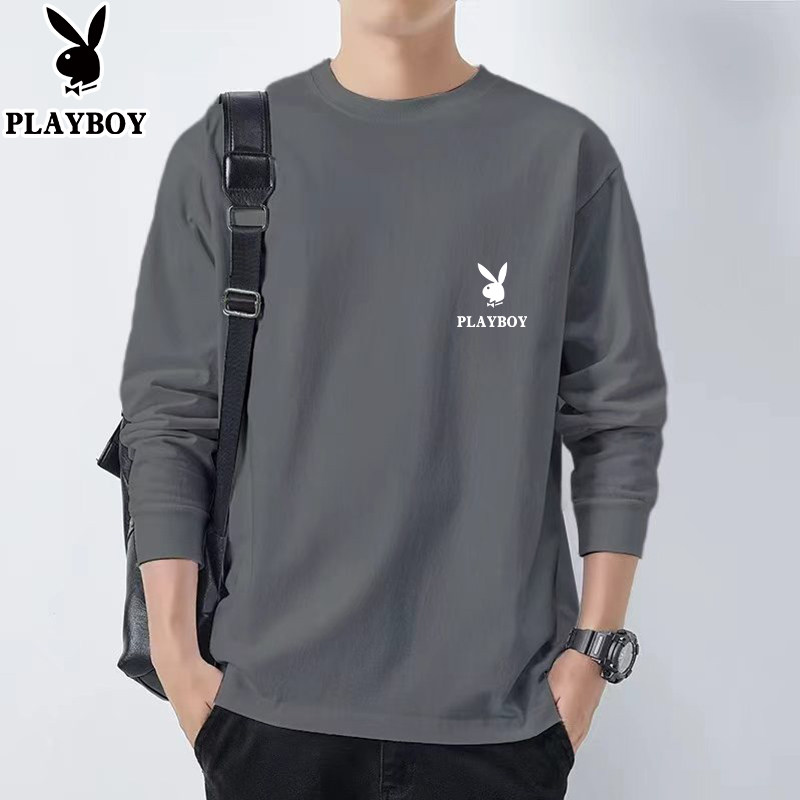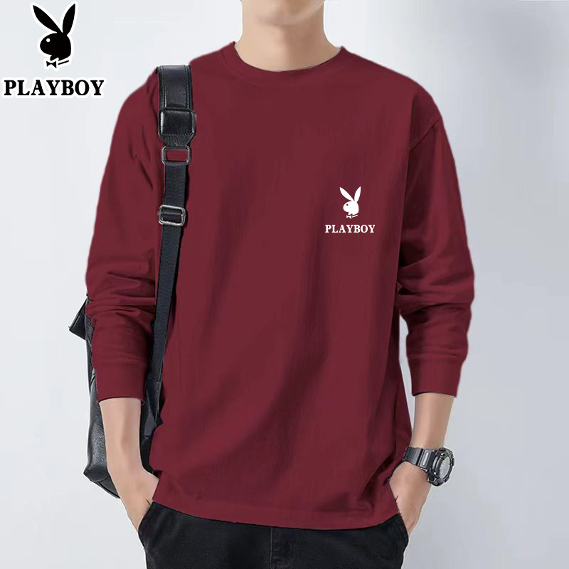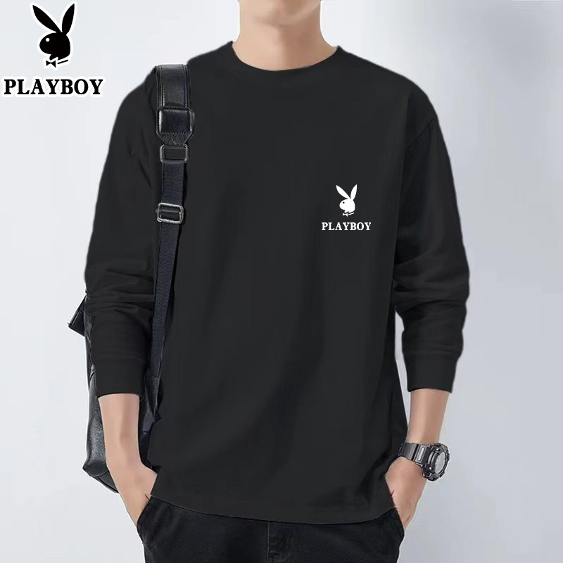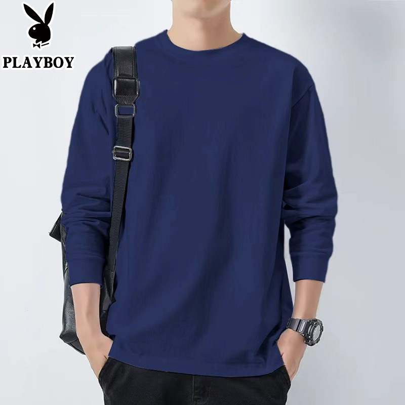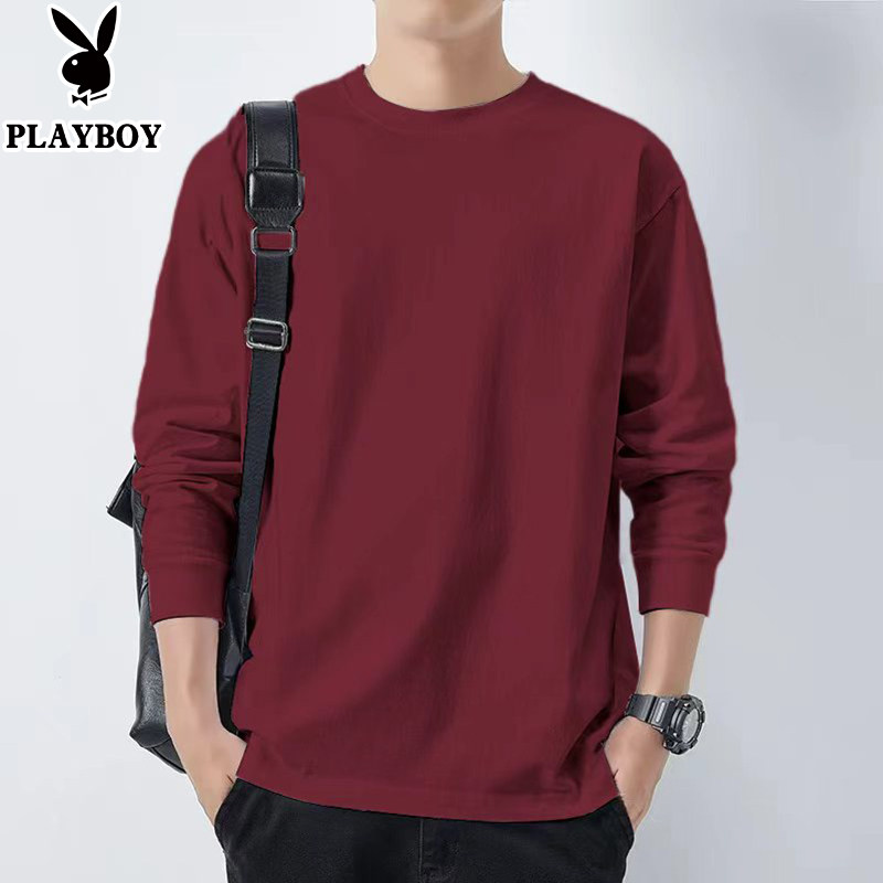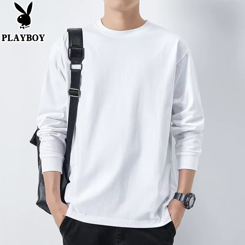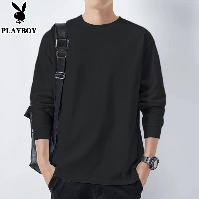 花花公子纯棉长袖t恤男士新款春秋季卫衣休闲打底衫圆领男装上衣