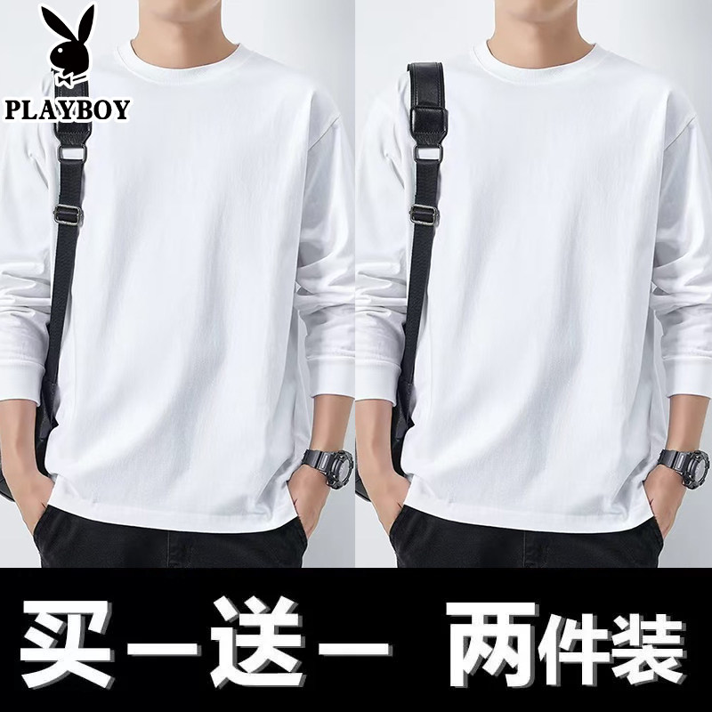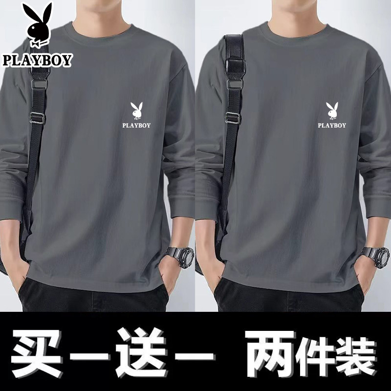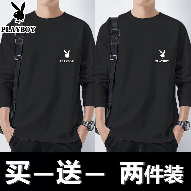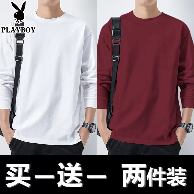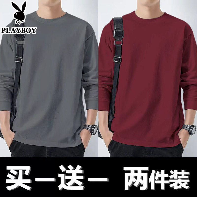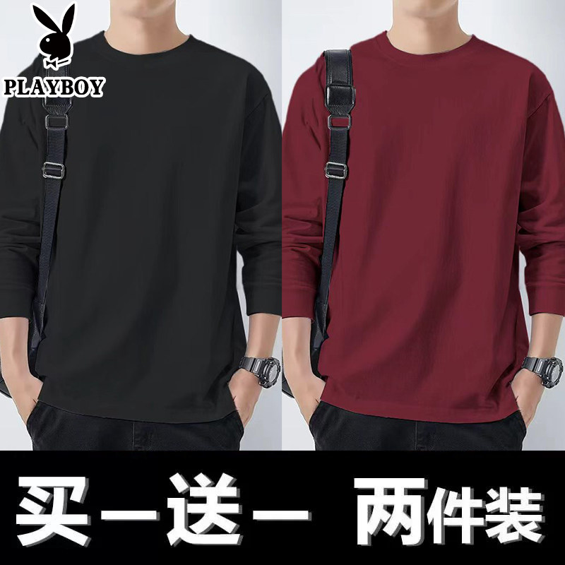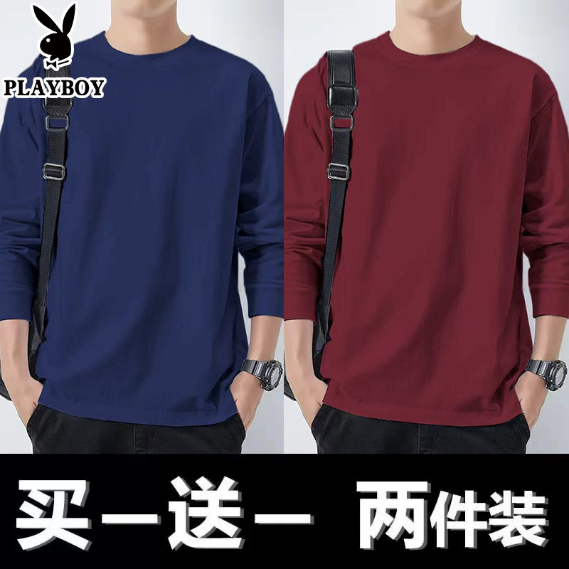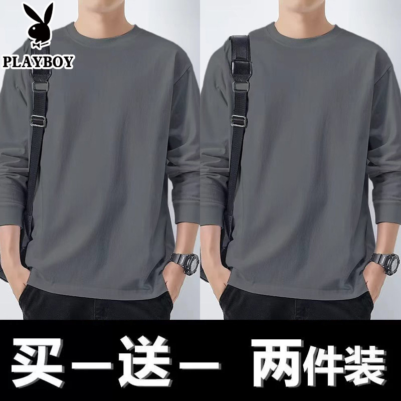 花花公子纯棉长袖t恤男士新款春秋季卫衣休闲打底衫圆领男装上衣