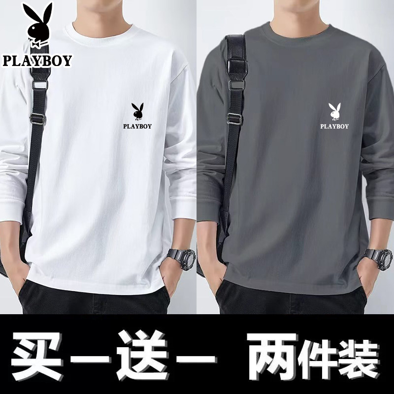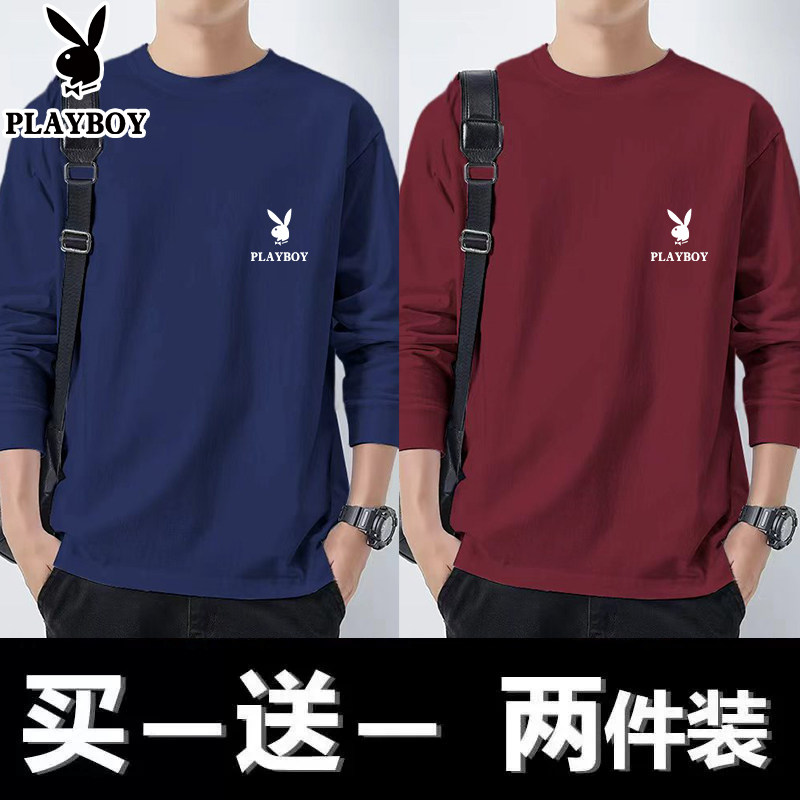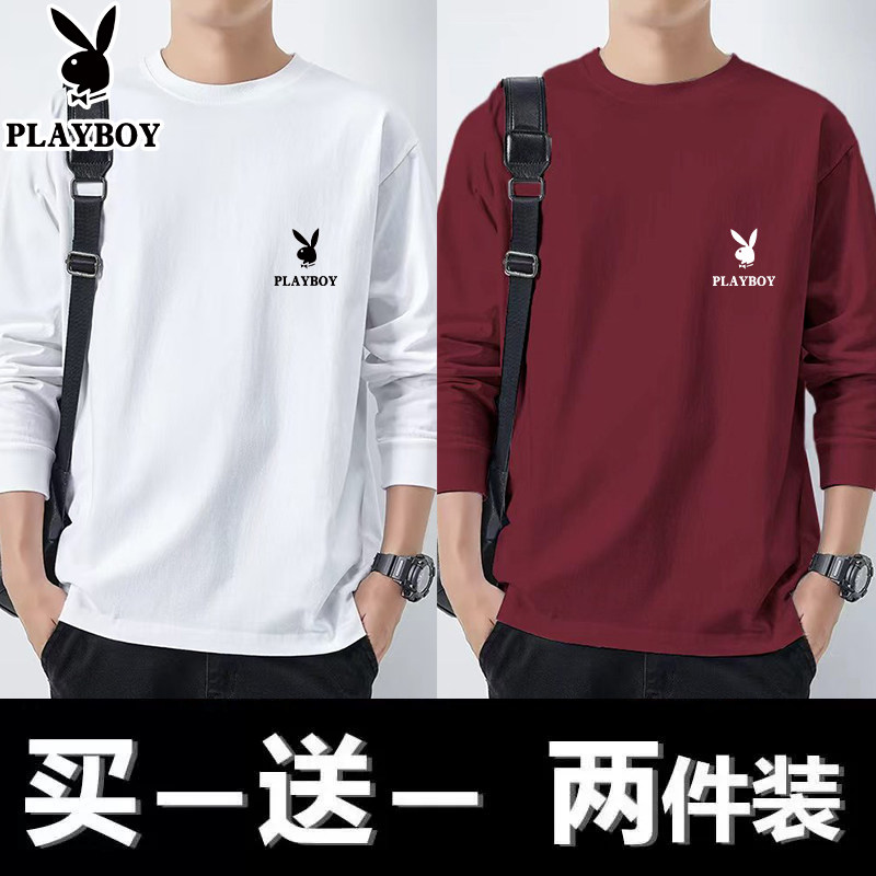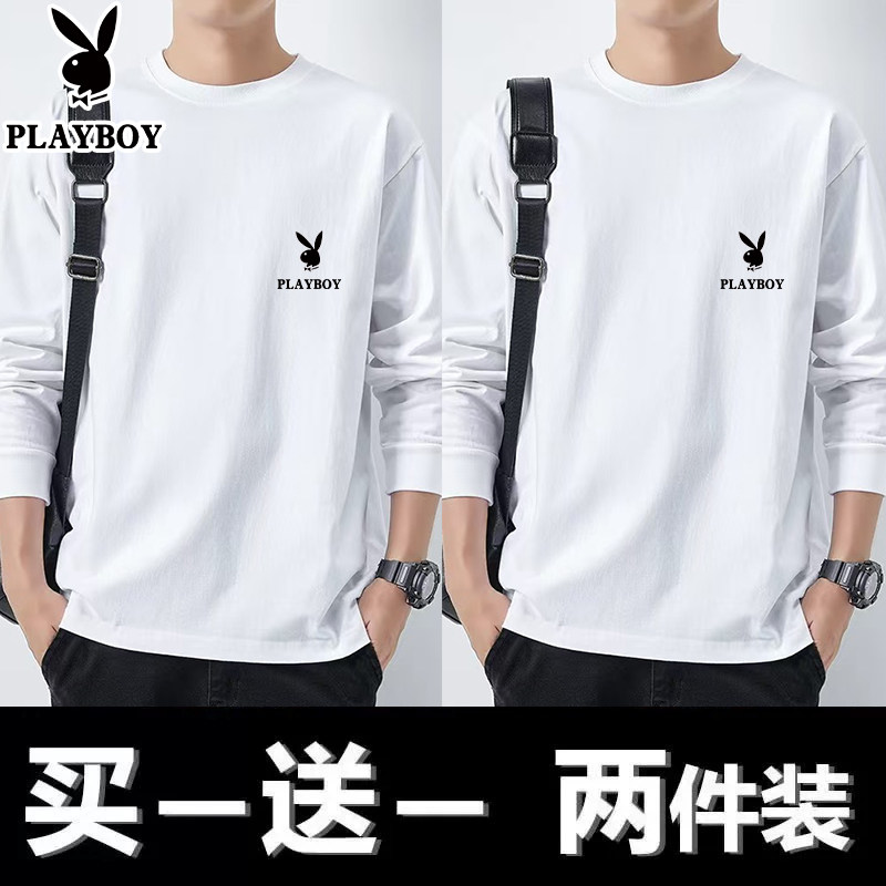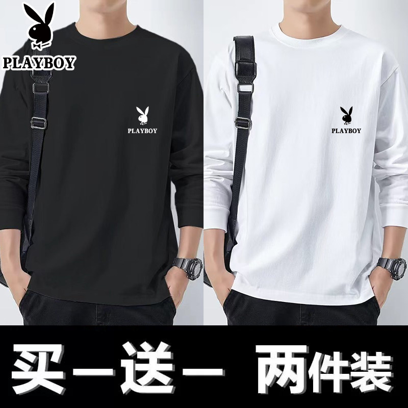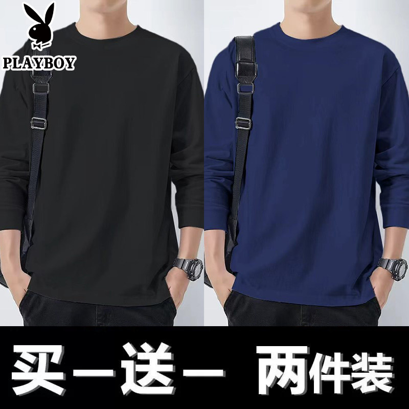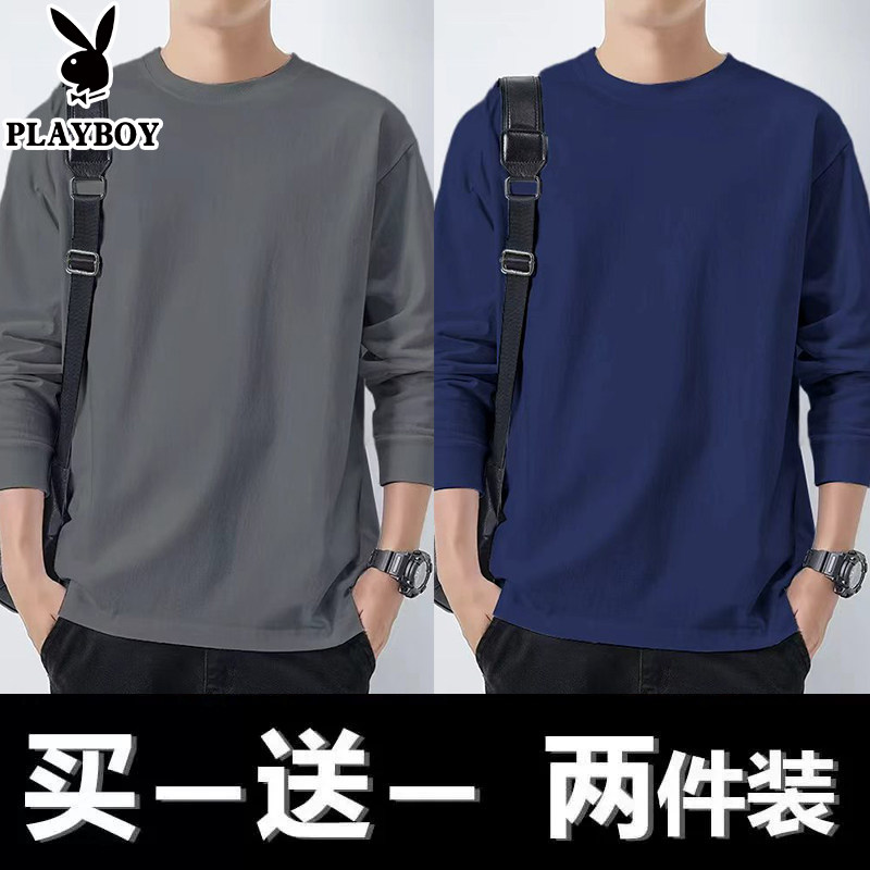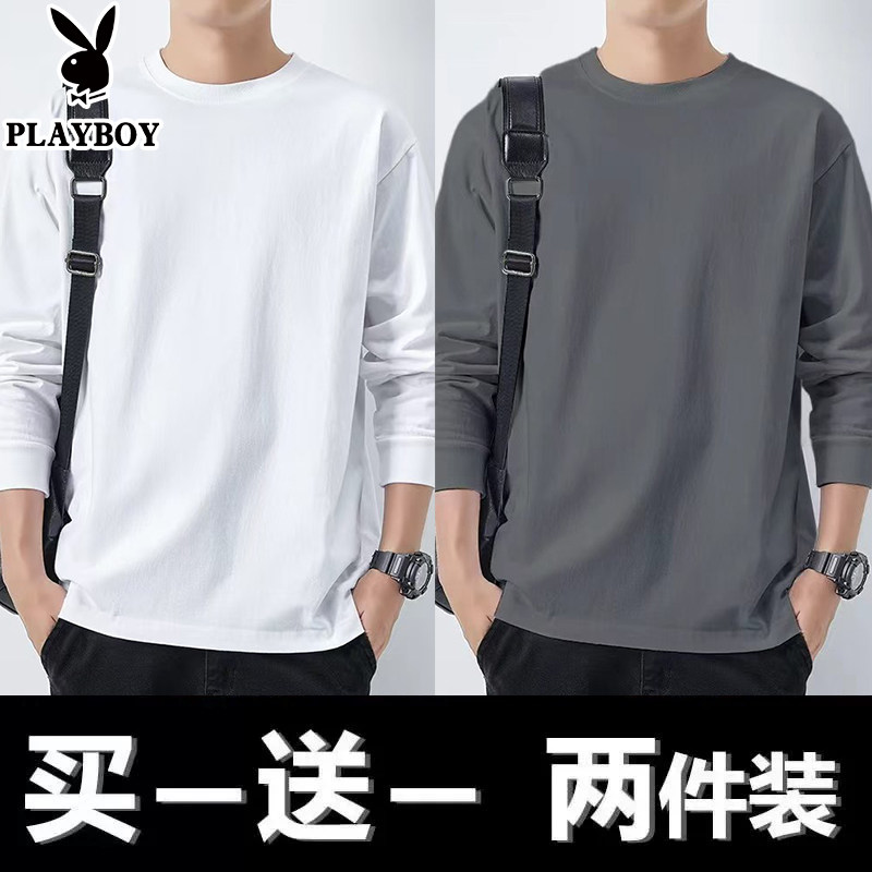 花花公子纯棉长袖t恤男士新款春秋季卫衣休闲打底衫圆领男装上衣