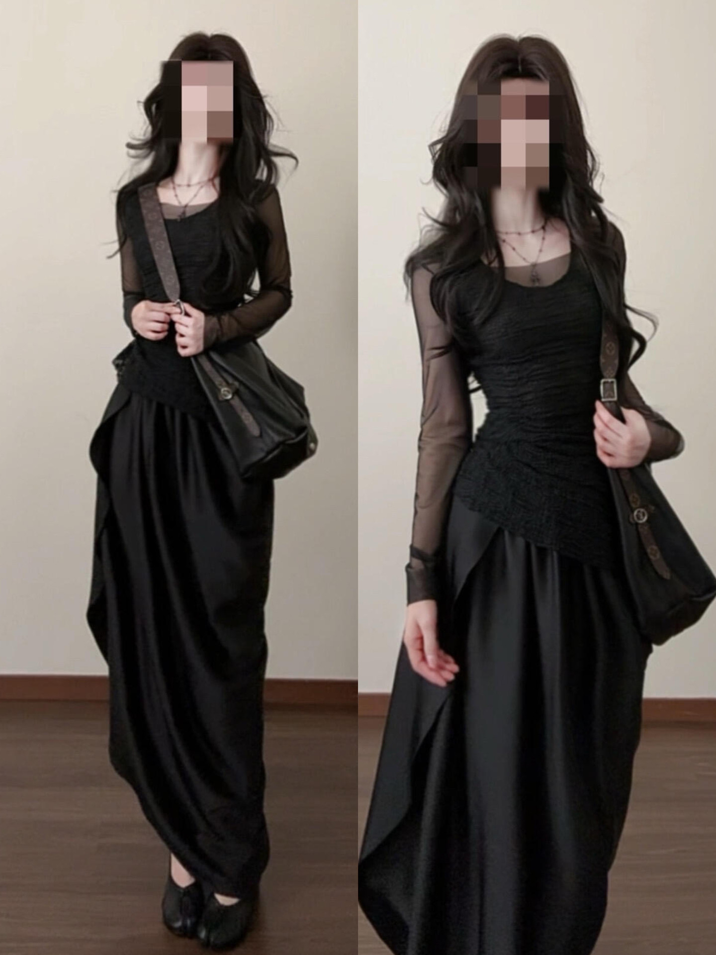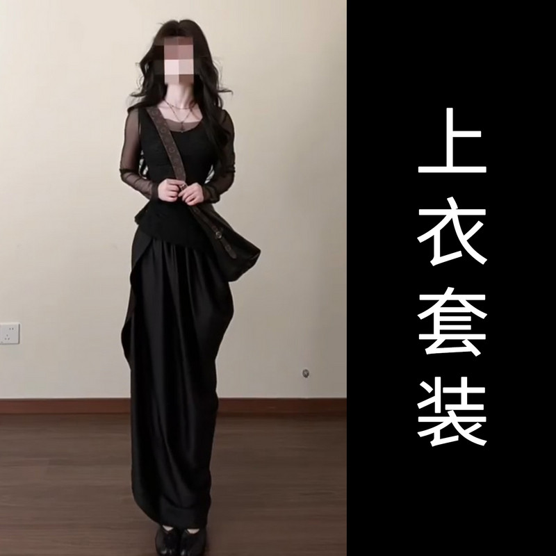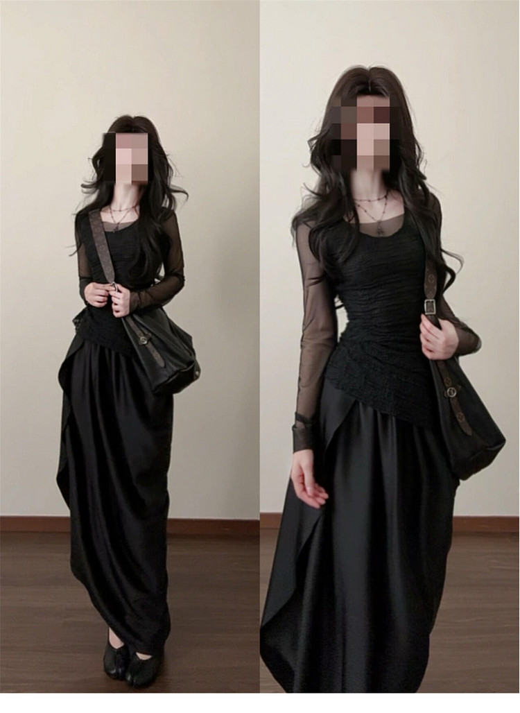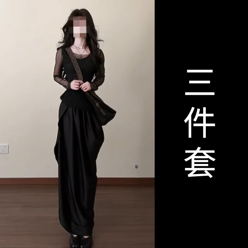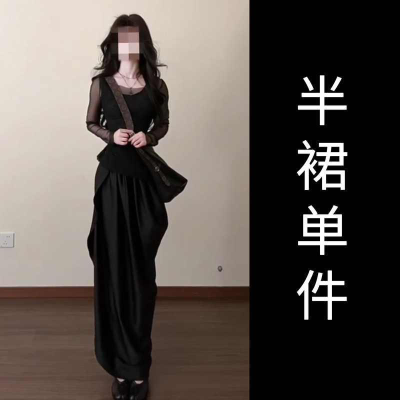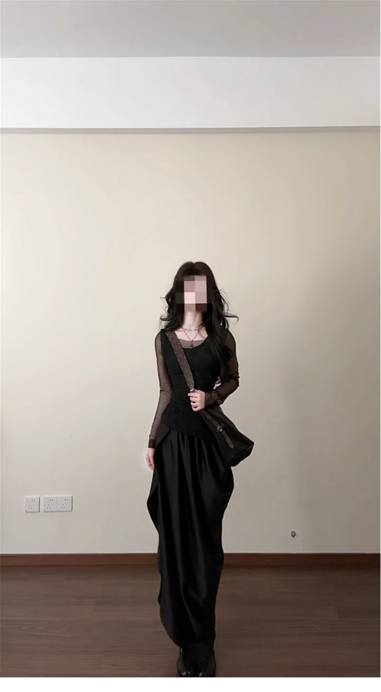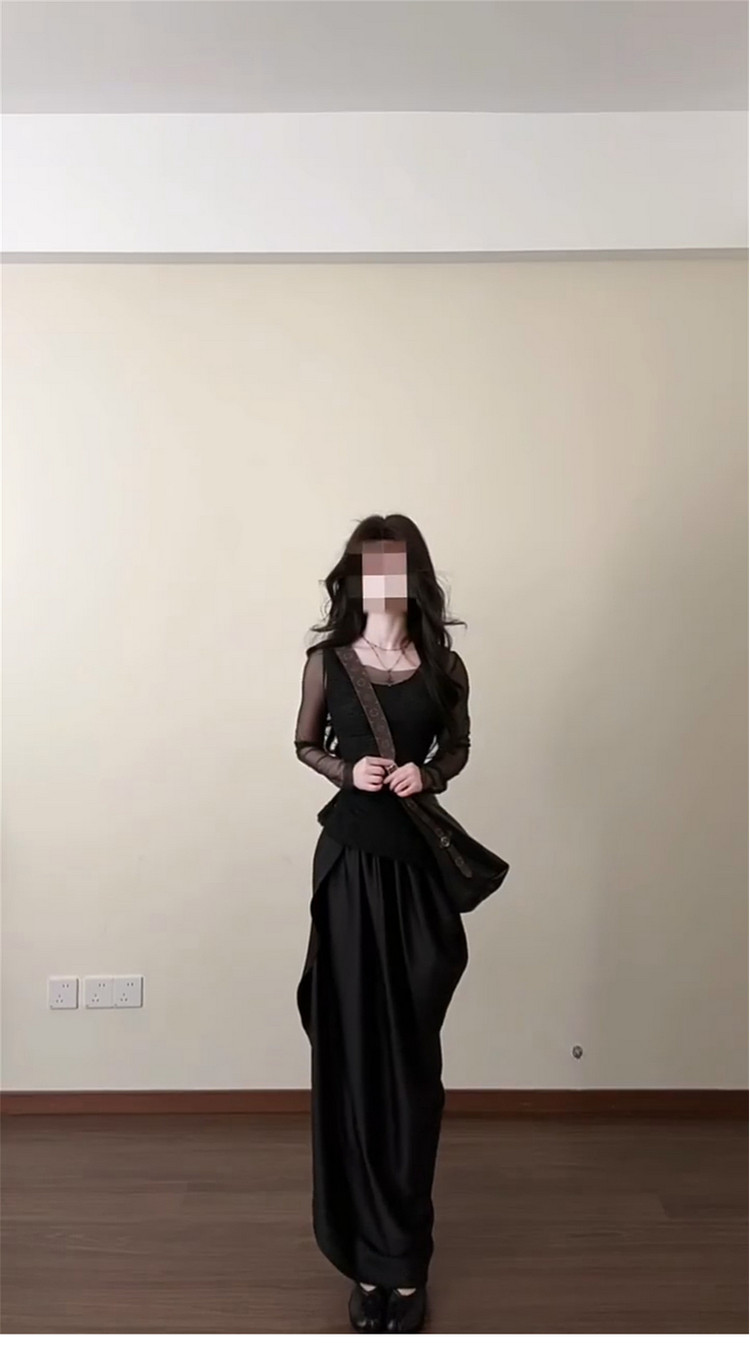 法式气质黑色连衣裙女早春2026新款不规则长裙巨好看穿搭一整套装