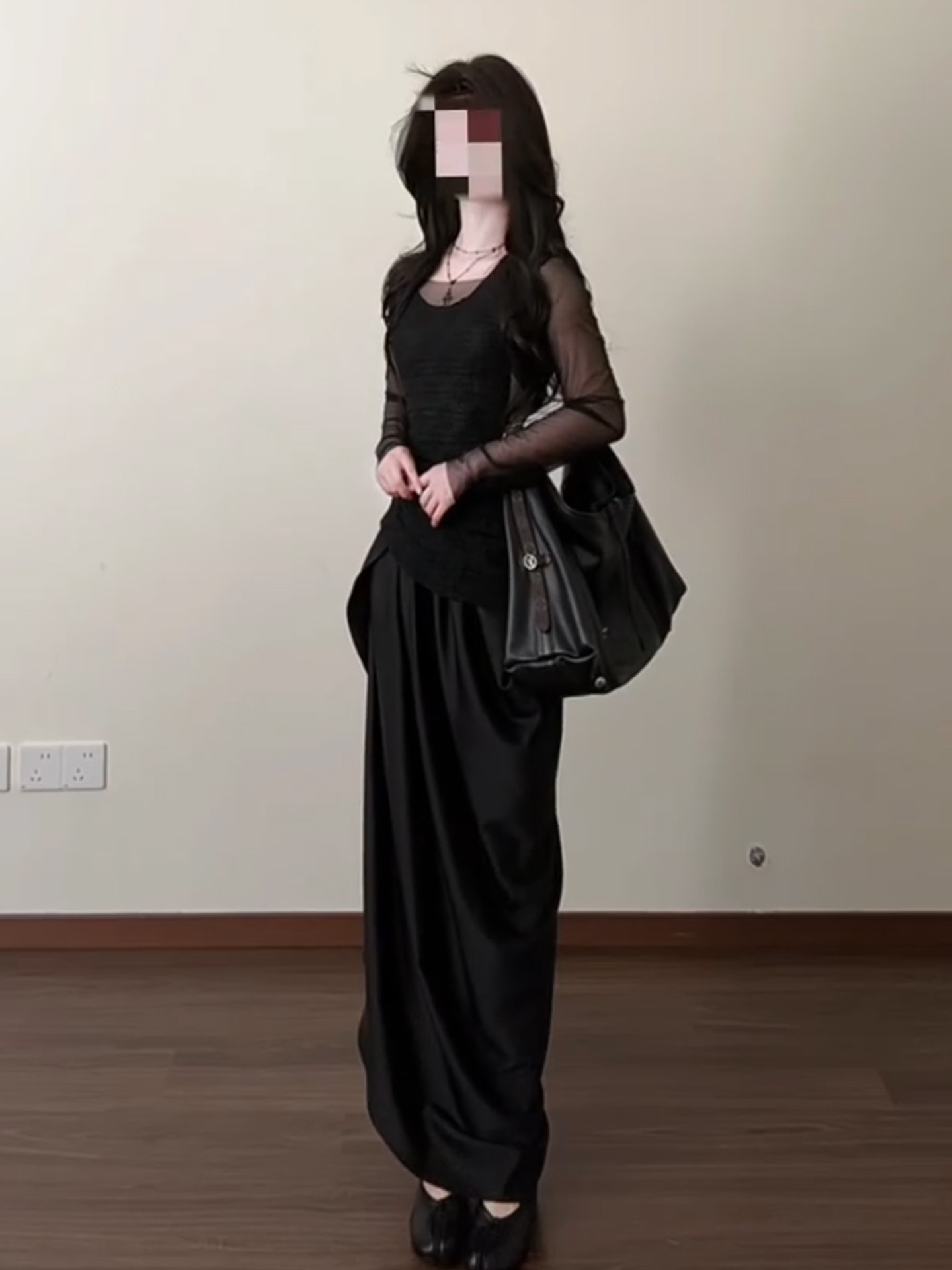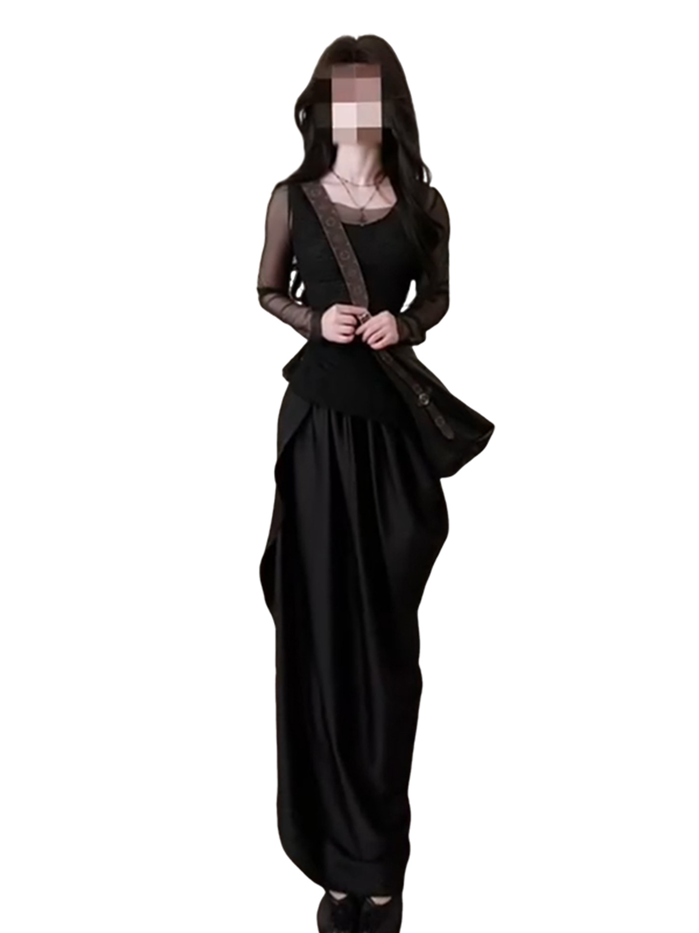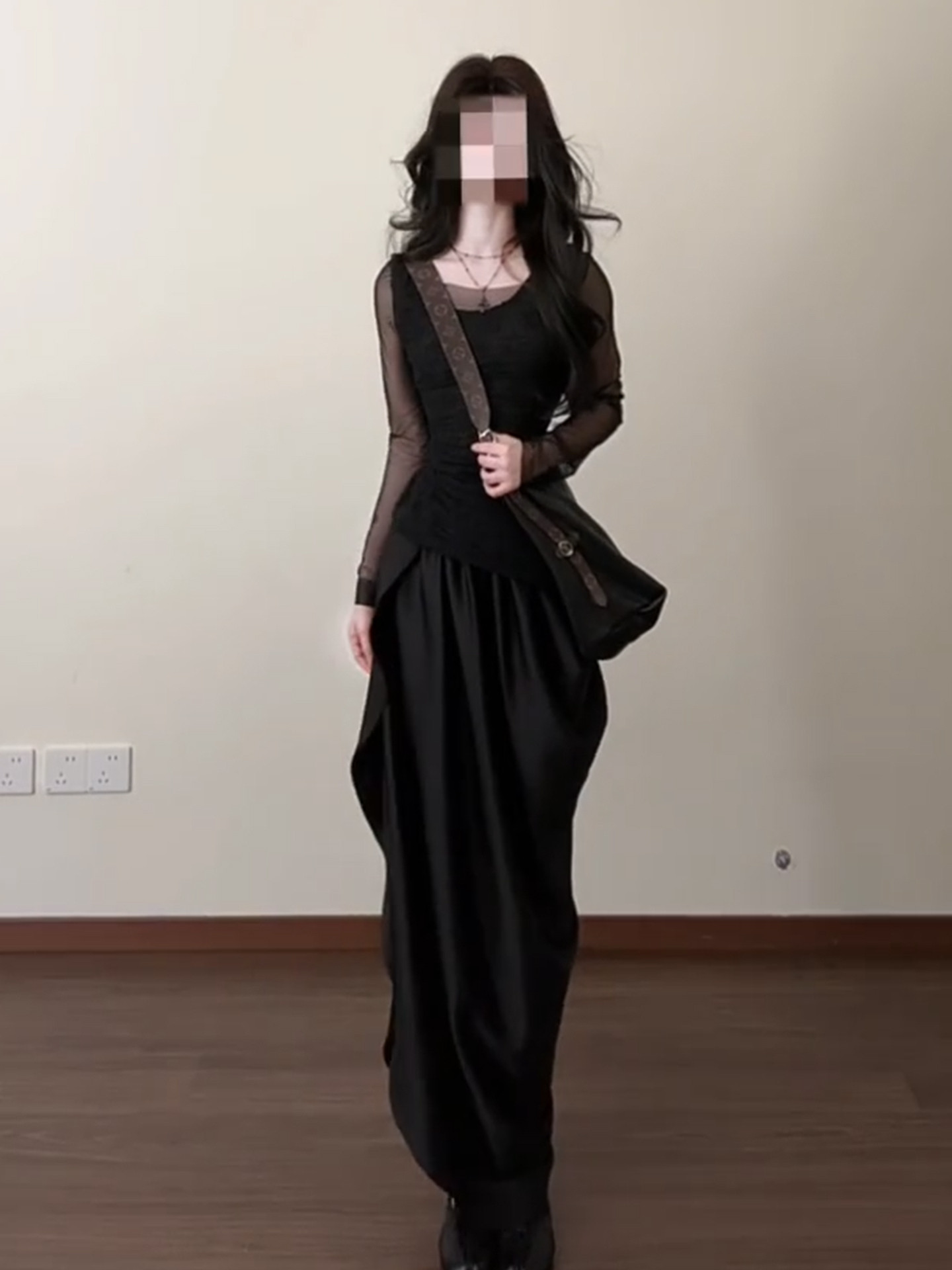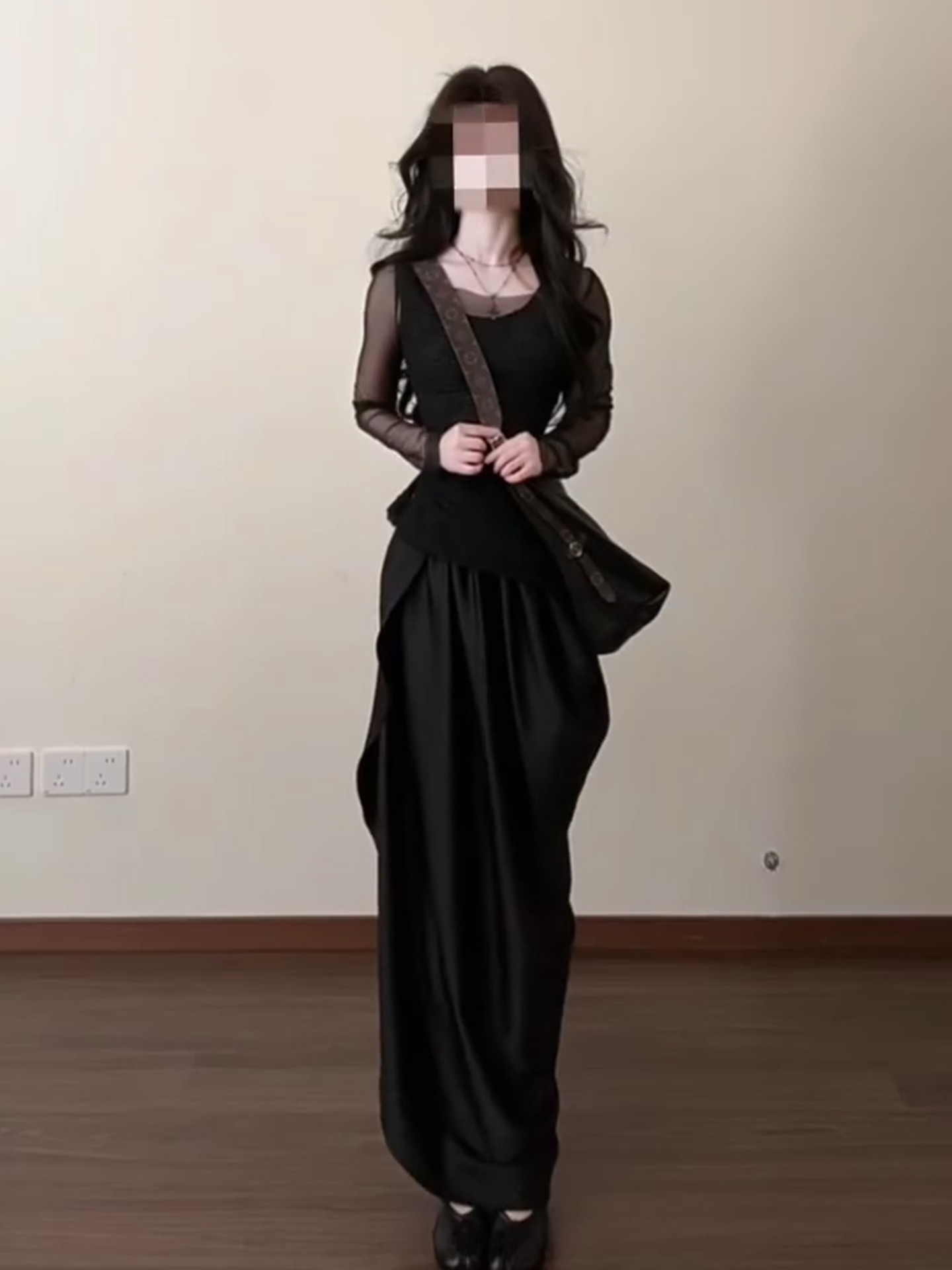 法式气质黑色连衣裙女早春2026新款不规则长裙巨好看穿搭一整套装