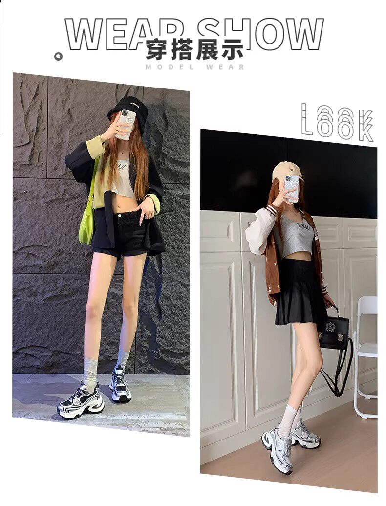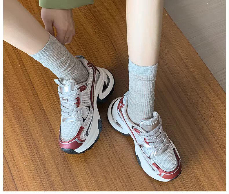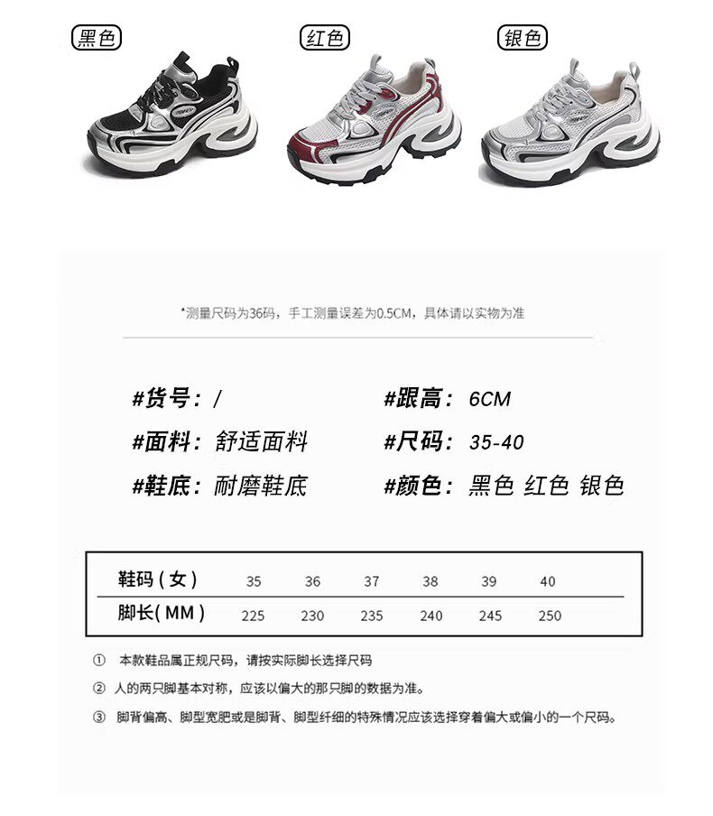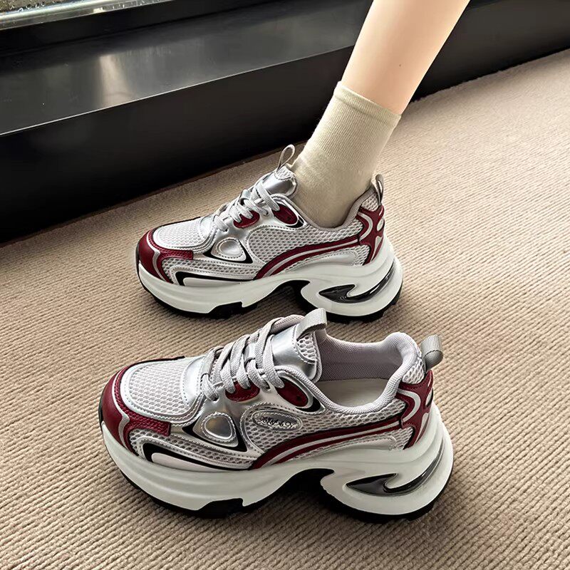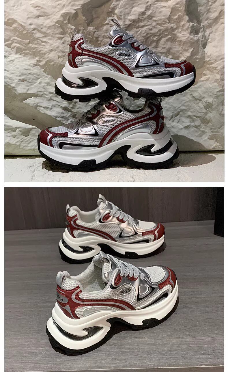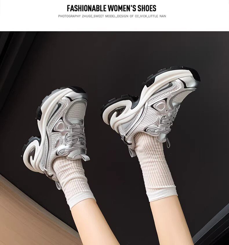 白鹿同款厚底老爹鞋女小个子增高2026春秋透气银色运动休闲鞋34码