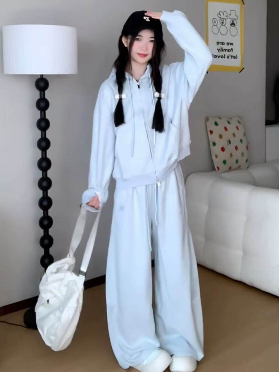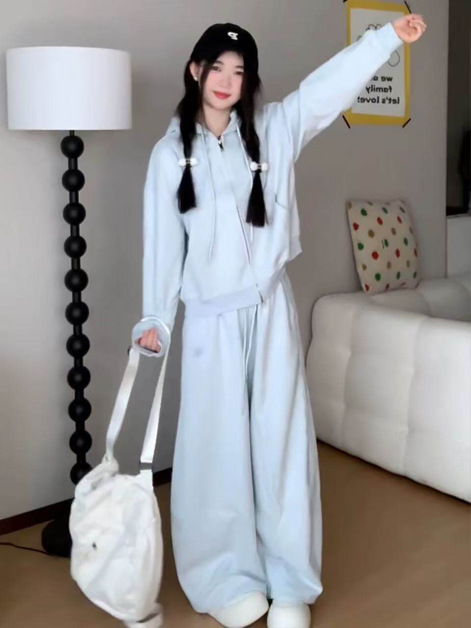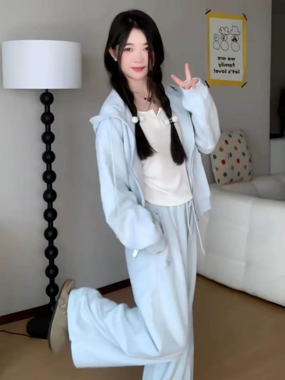 洋气减龄休闲运动套装女春季学生宽松显瘦韩版时尚连帽卫衣两件套