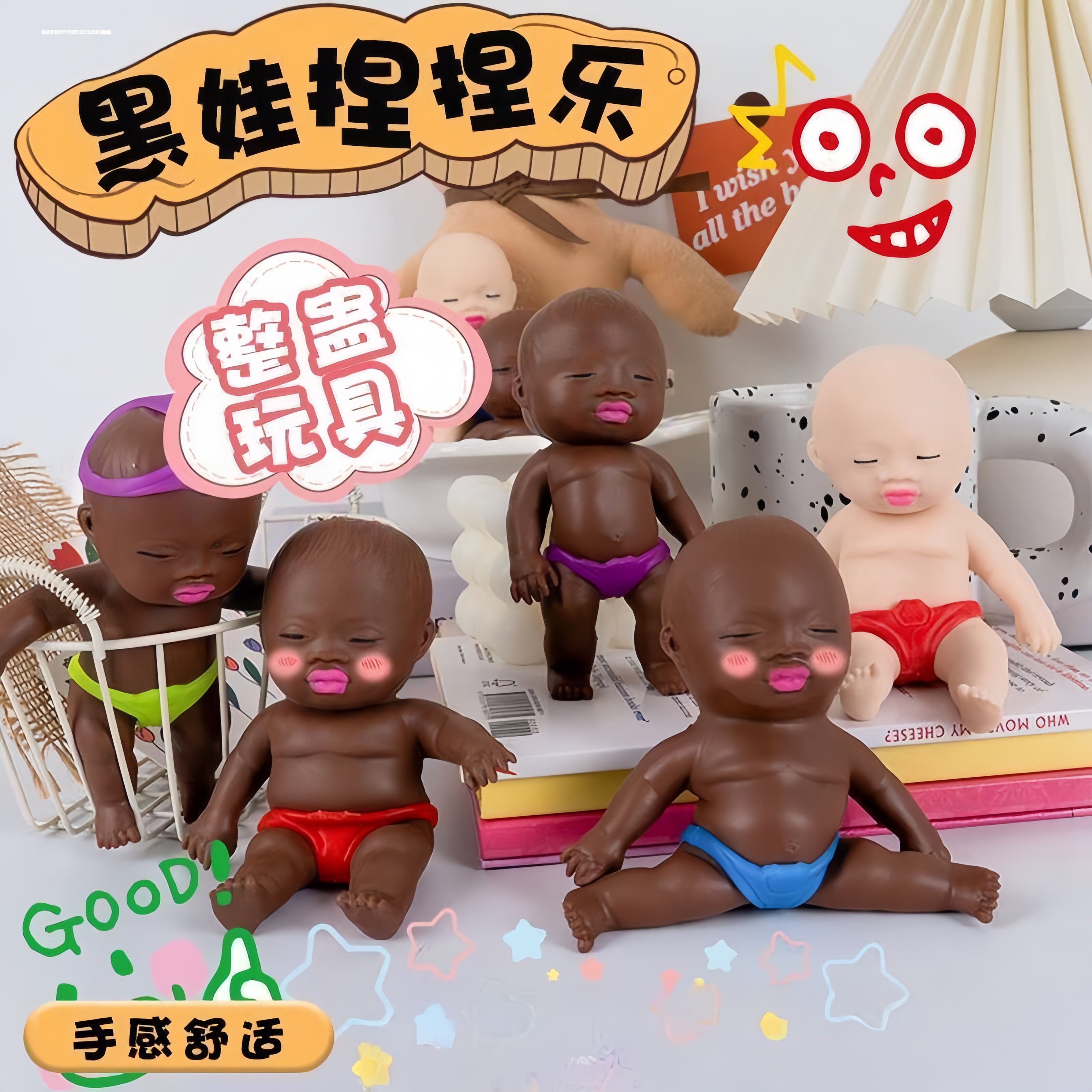 抖音同款娜塔莎娃娃捏捏乐玩偶手办泥人小黑人娃黑人公仔解压玩具