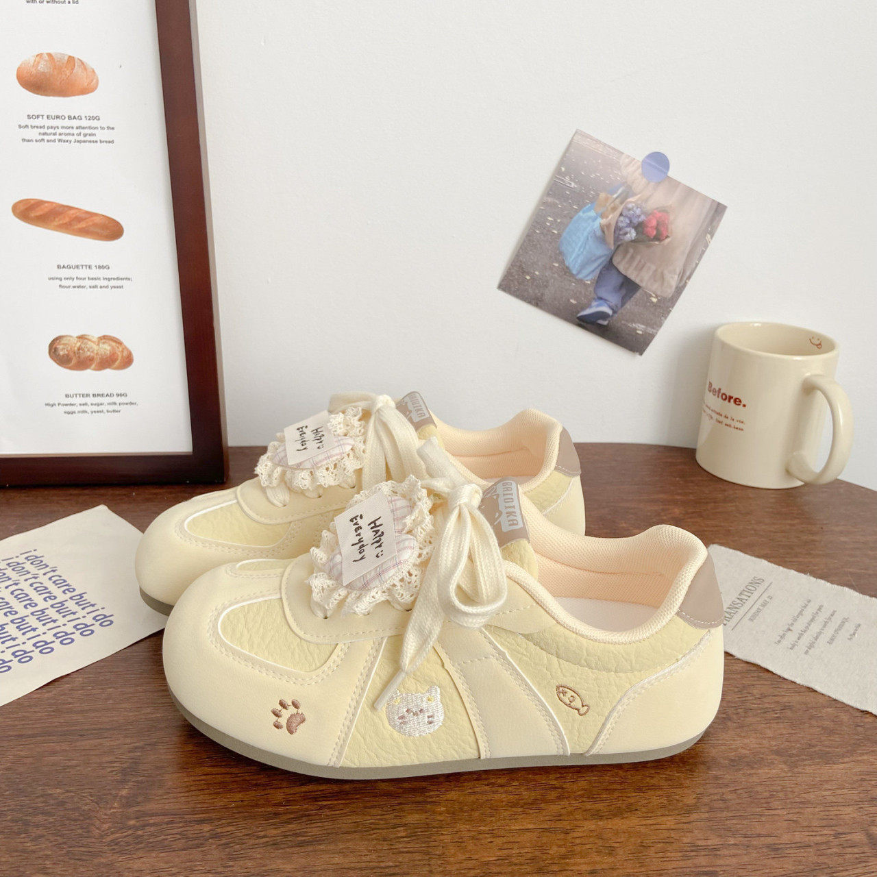 黄色德训鞋女款2026春季新款学生百搭韩系chic小众刺绣休闲板鞋