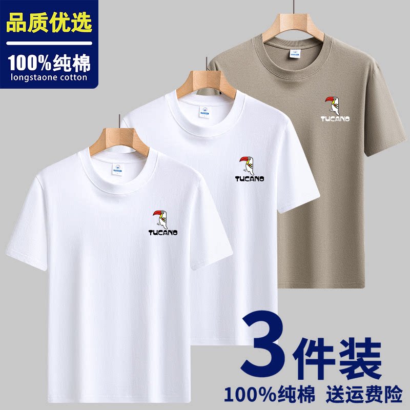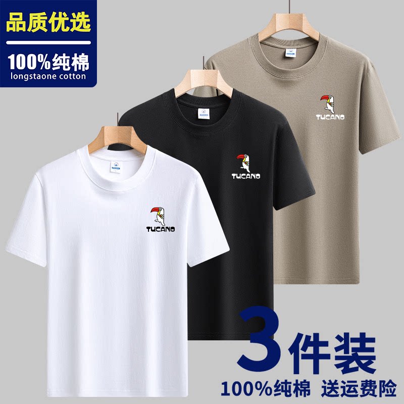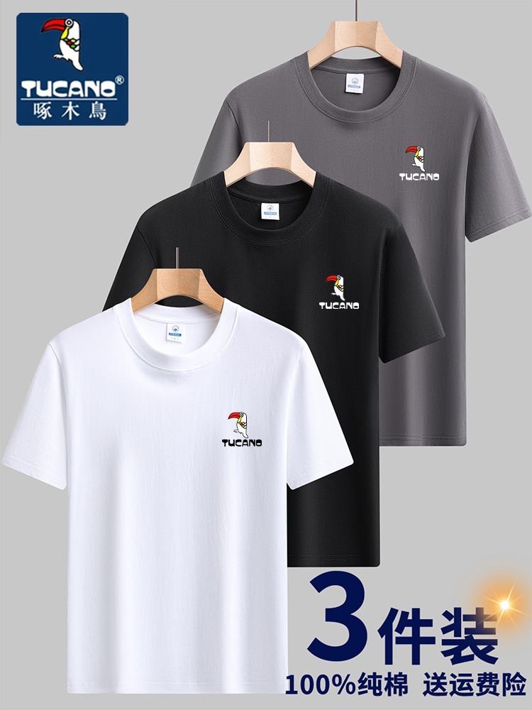 TUCANO啄木鸟纯棉短袖T恤 男夏季薄款圆领百搭宽松潮牌印花上衣男