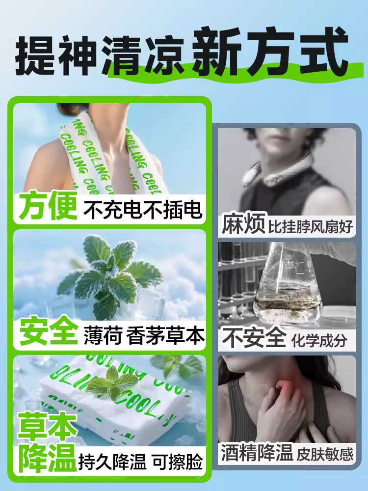降温冰巾湿巾冰感去汗薄荷毛巾运动户外跑步学生防暑清凉神器防晒