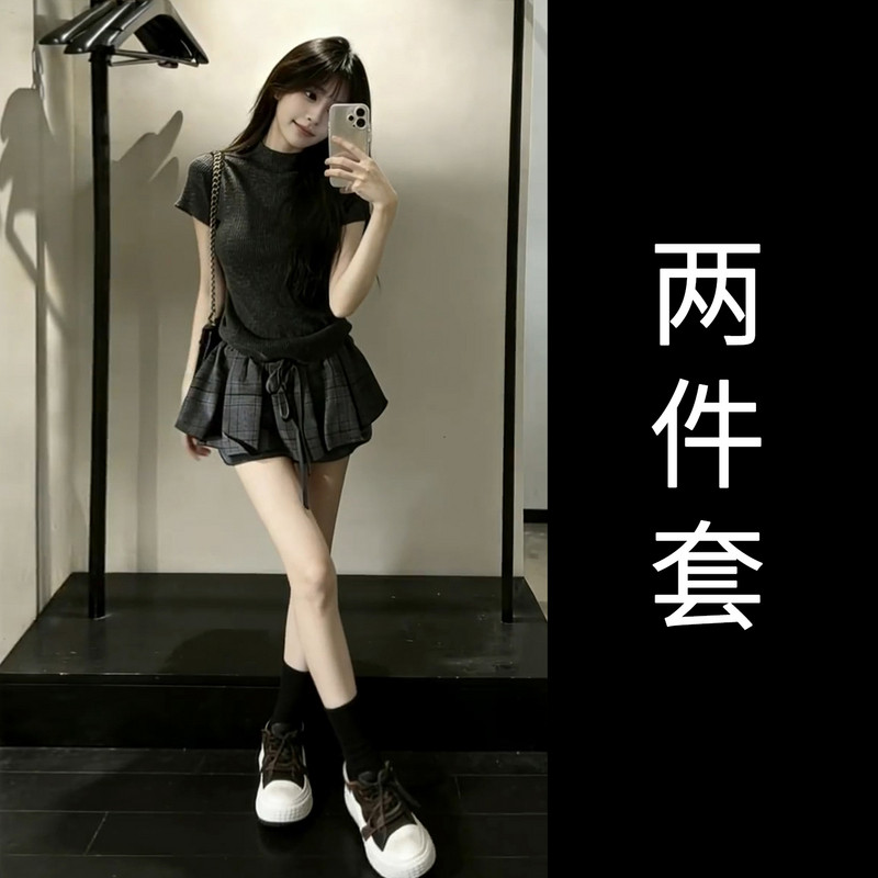 独特漂亮黑色连衣裙子女2026夏新款法式巨好看掐腰小个子短裙套装