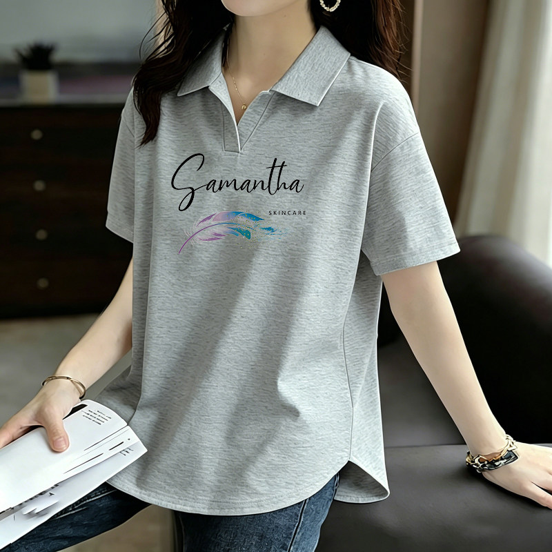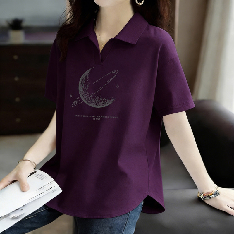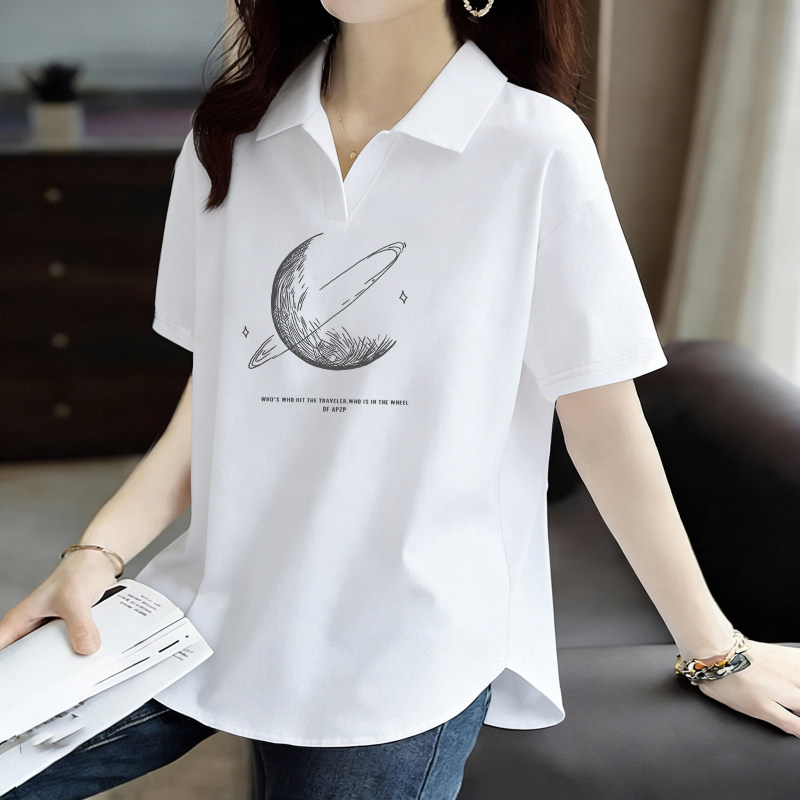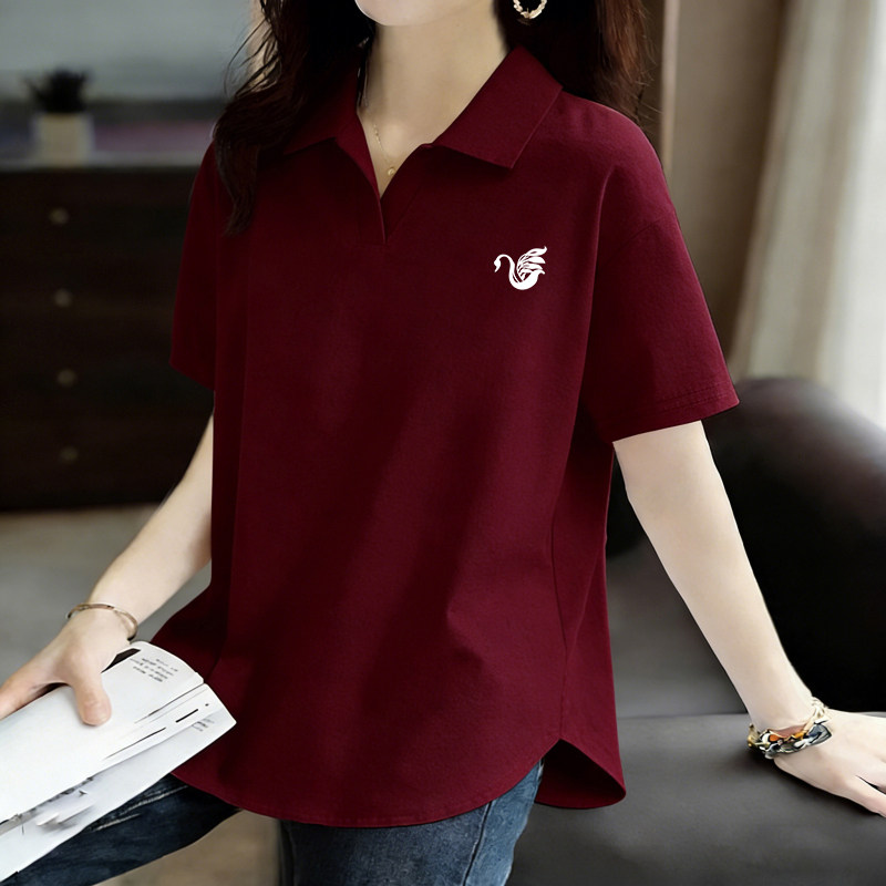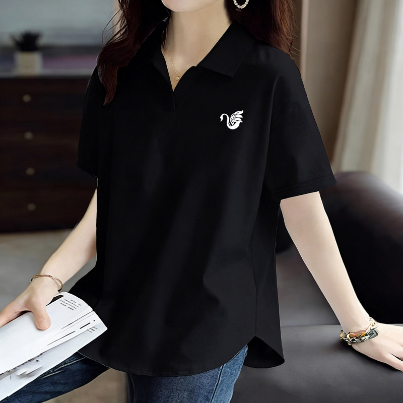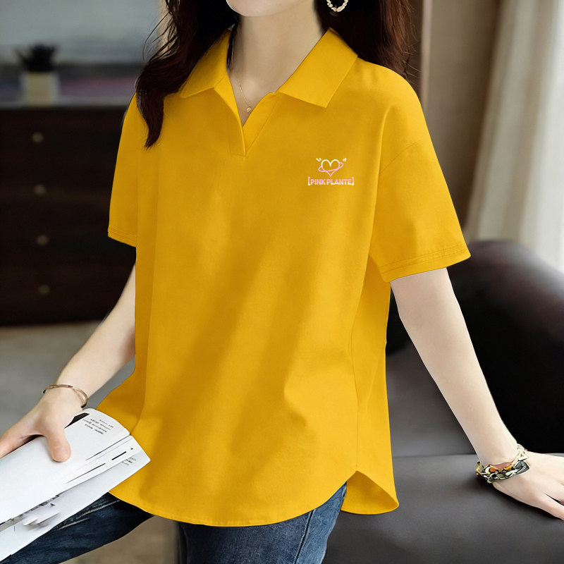POLO衫短袖翻领韩版纯棉T恤女士夏季新款大码女装减龄百搭打底衫