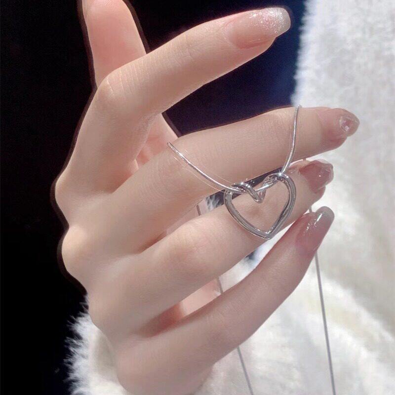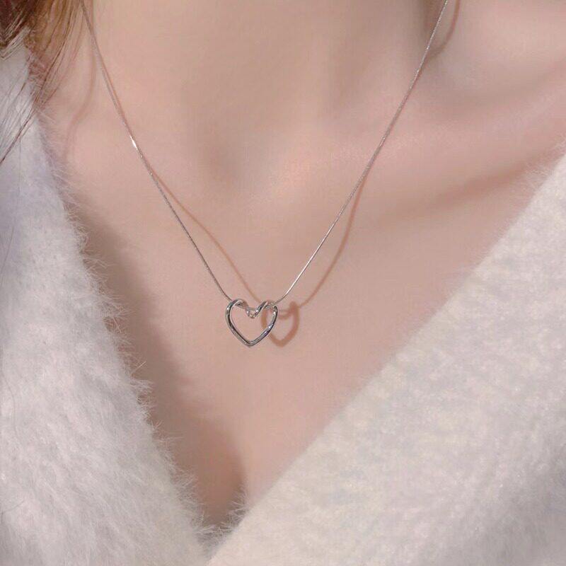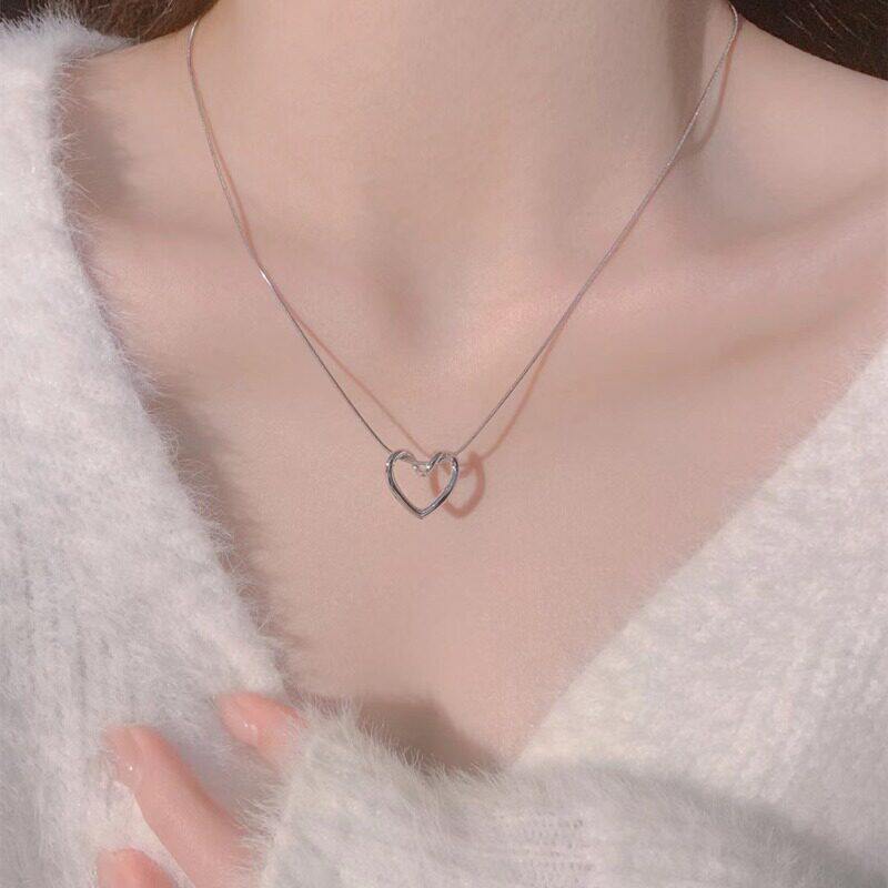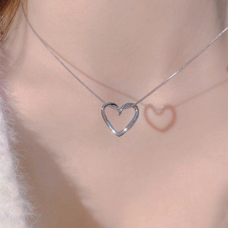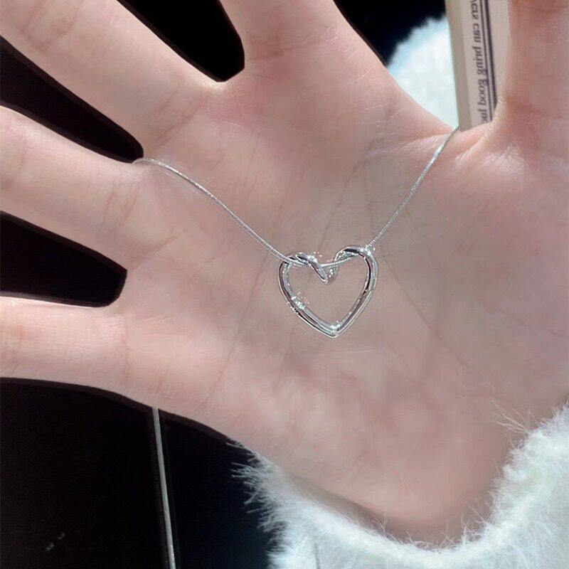 轻奢小众镂空转折爱心项链ins冷淡风简约设计吊坠百搭锁骨链配饰