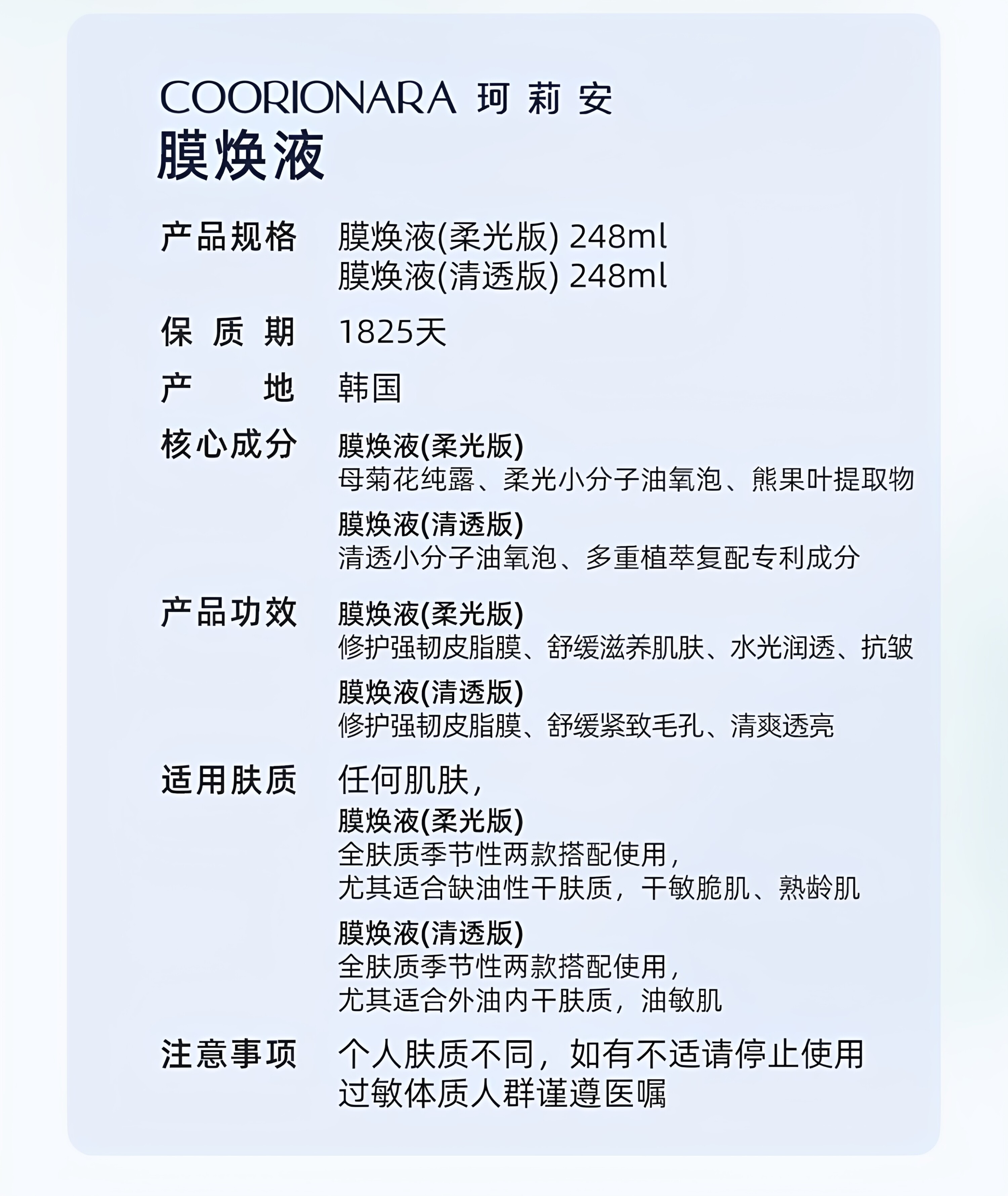 韩国正品珂莉安膜焕液爽肤水收缩毛孔改善暗沉补水紧致修复皮脂