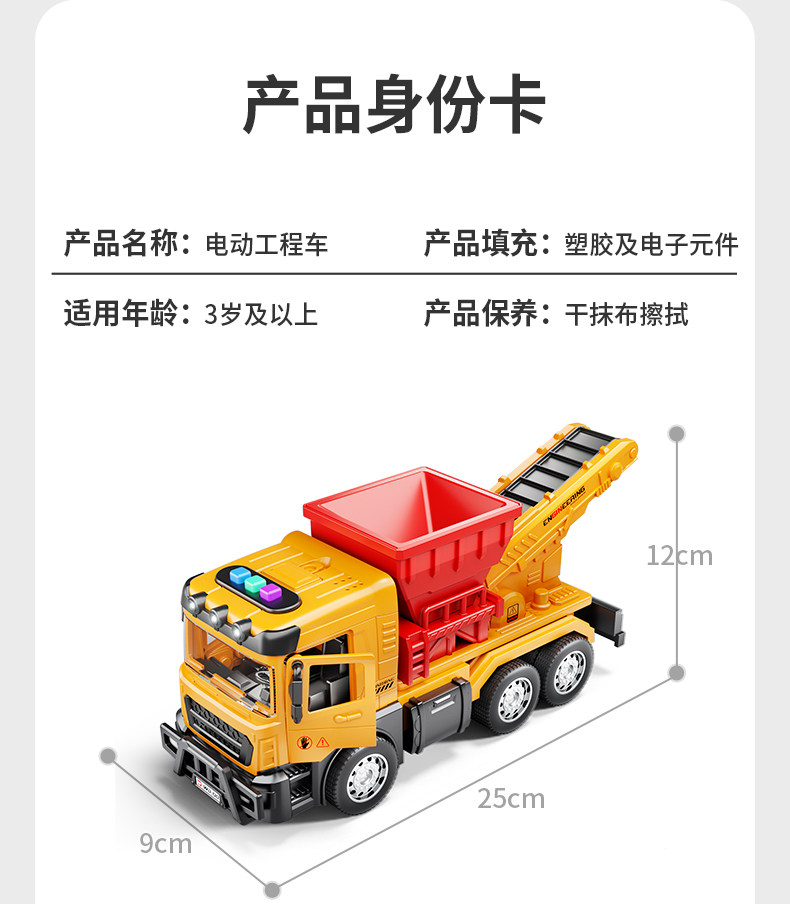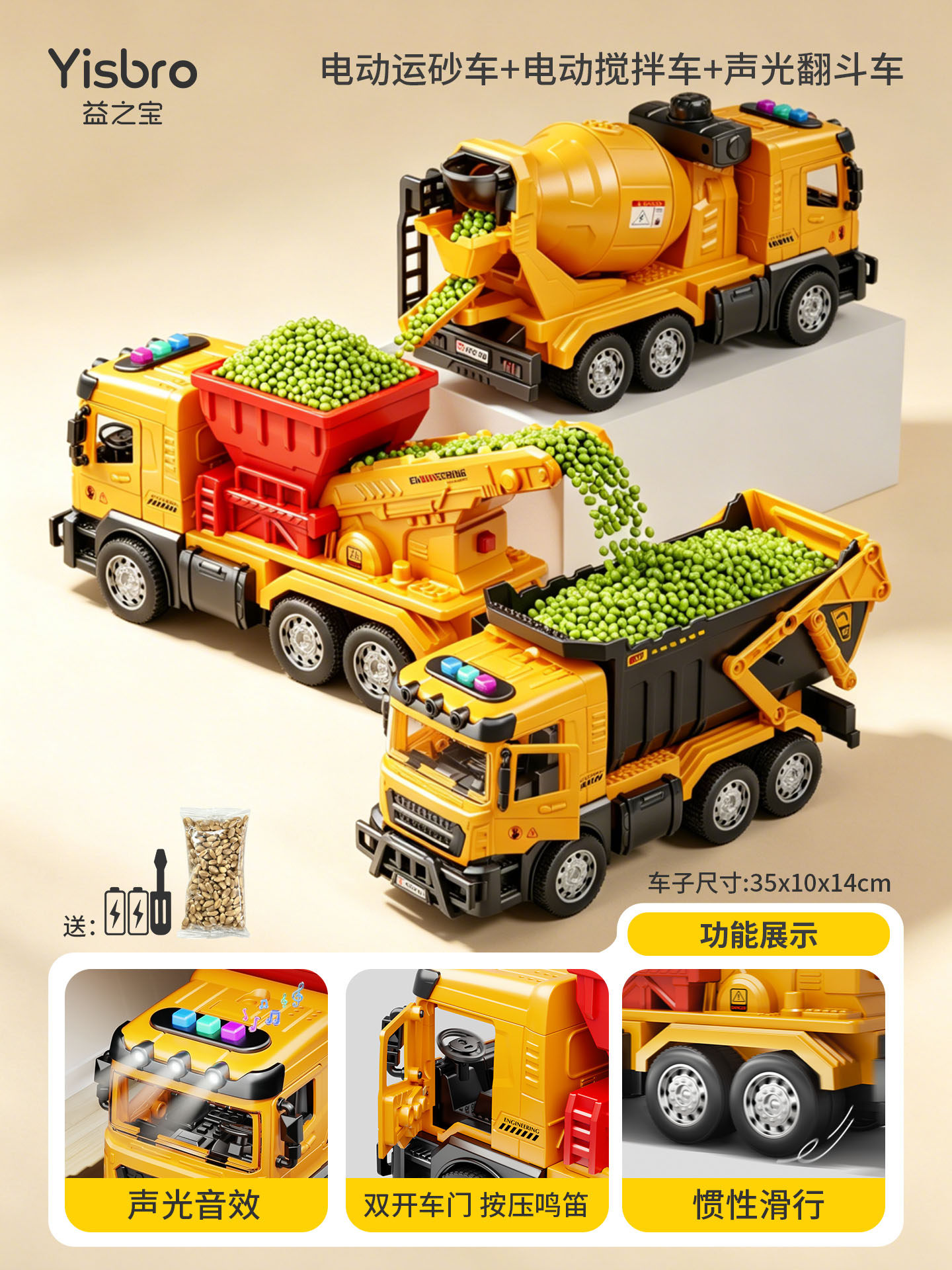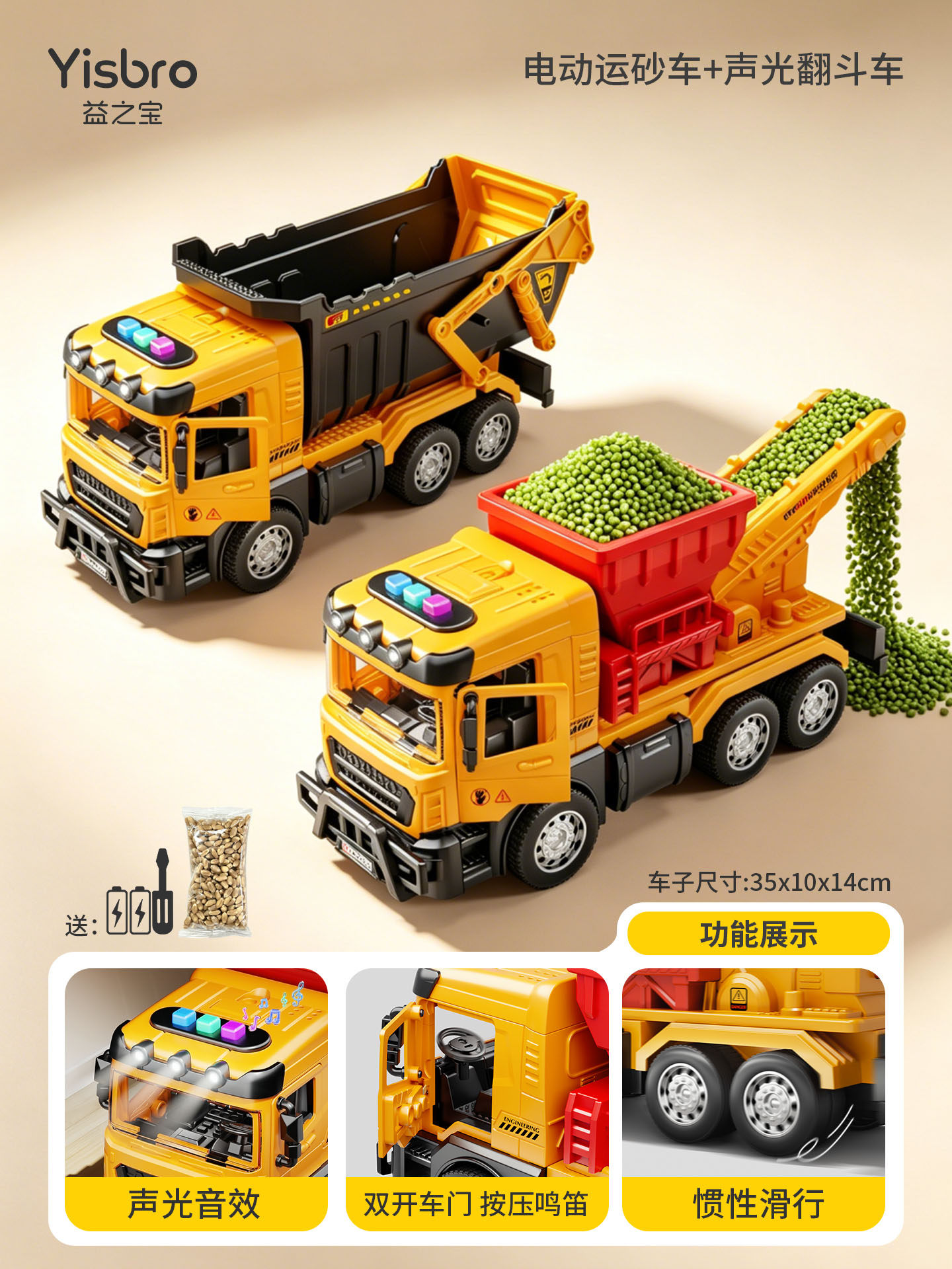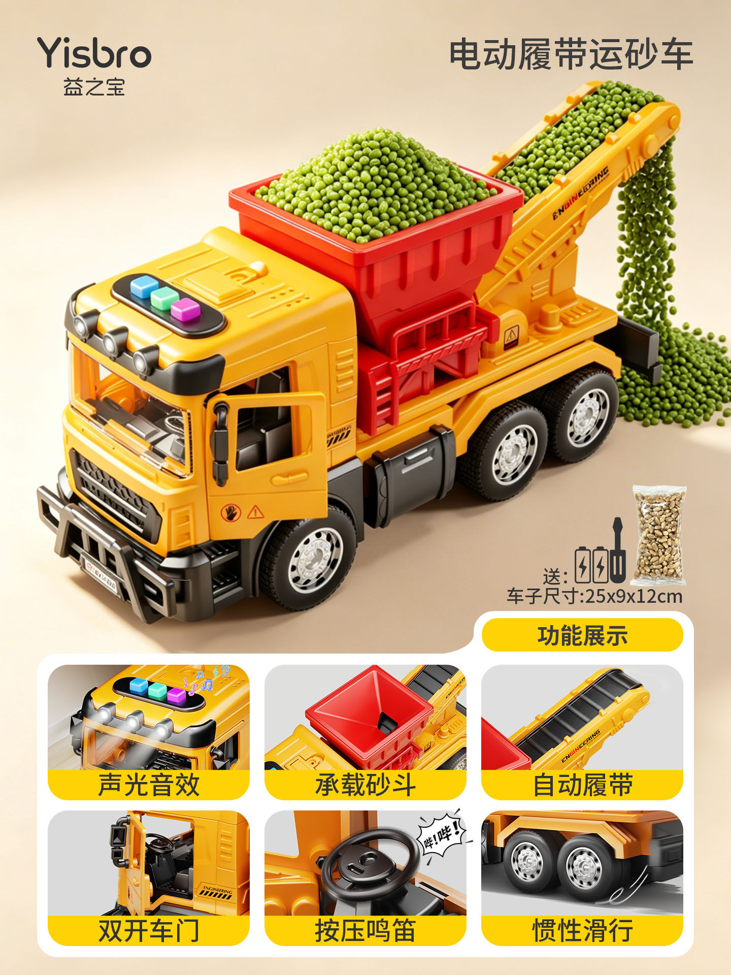 工程车汽车玩具儿童运砂车男孩3到6电动履带传送运输翻斗搅拌套装