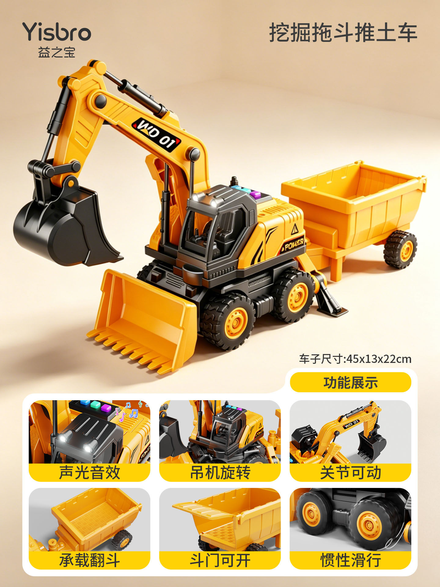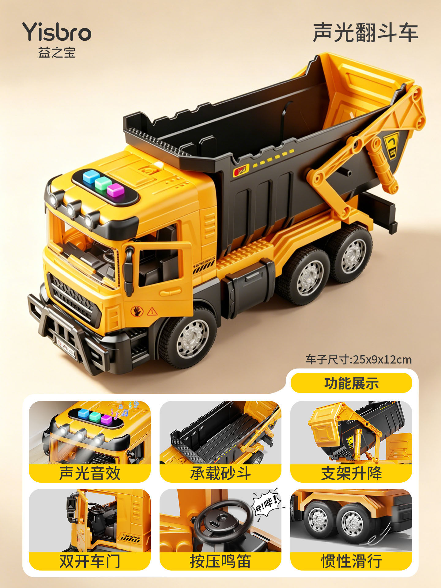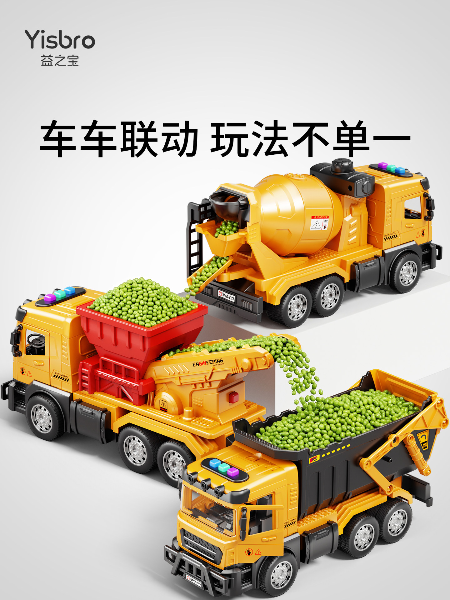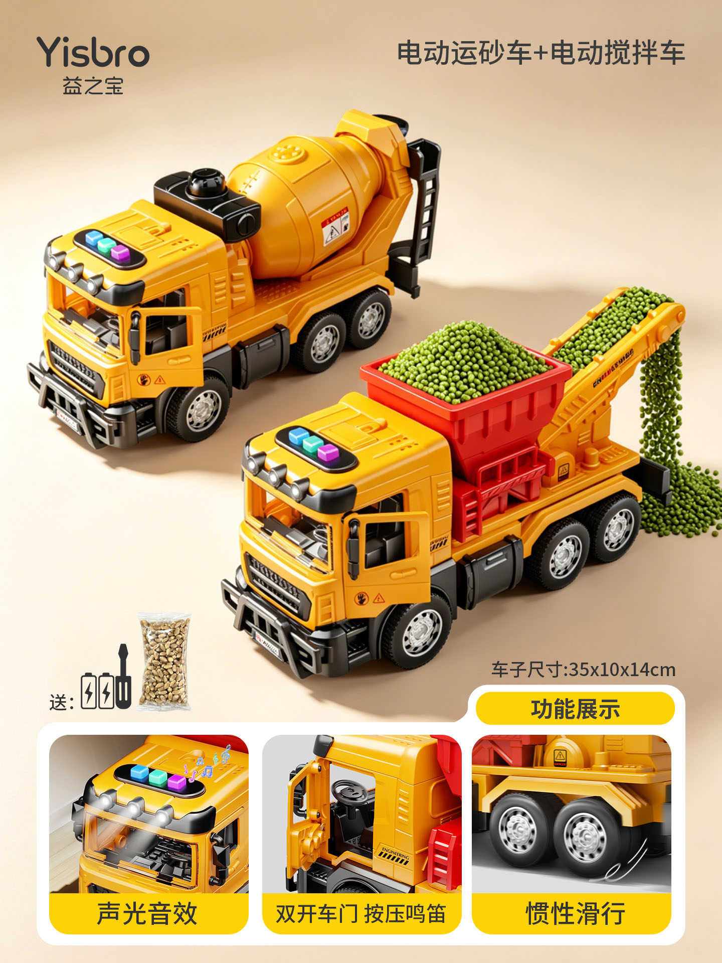 工程车汽车玩具儿童运砂车男孩3到6电动履带传送运输翻斗搅拌套装